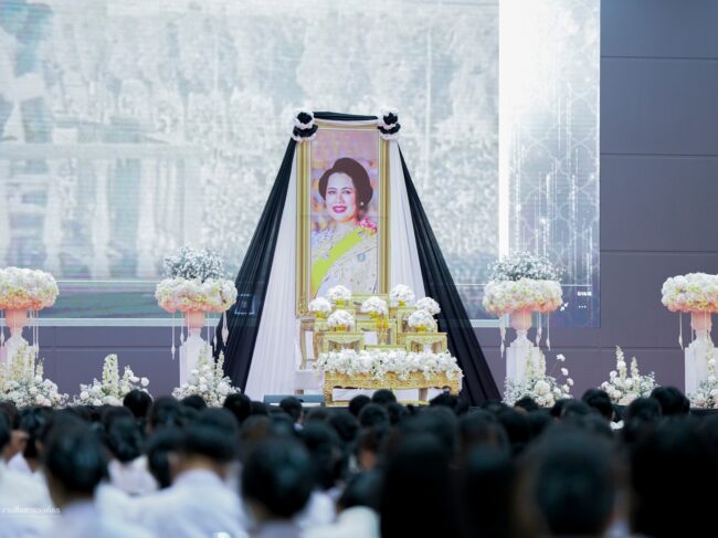 วันที่ 29 ตุลาคม 2568 มหาวิทยาลัยราชภัฏกำแพงเพชร จัดพิธีถวายความอาลัยน้อมรำลึกในพระมหากรุณาธิคุณ สมเด็จพระนางเจ้าสิริกิติ์ พระบรมราชินีนาถ พระบรมราชชนนีพันปีหลวง โดยมี ผู้ช่วยศาสตราจารย์ ดร.ปรียานุช พรหมภาสิต อธิการบดี เป็นประธานในพิธี พร้อมด้วยคณะผู้บริหาร อาจารย์ บุคลากร และนักศึกษา เข้าร่วมพิธีฯ ภายในพิธีประกอบด้วย การฉายวีดีทัศน์สารคดีพิเศษ สมเด็จพระนางเจ้าสิริกิตติ์ พระบรมราชินีนาถ พระบรมราชชนนีพันปีหลวง พิธีจุดธูปเทียน เครื่องทองน้อย ถวายสักการะฯ พิธีลงนามถวายความอาลัย พิธีกล่าวน้อมรำลึกในพระมหากรุณาธิคุณ และถวายความอาลัย สมเด็จพระนางเจ้าสิริกิติ์ พระบรมราชินีนาถ พระบรมราชชนนีพันปีหลวง ผู้เข้าร่วมพิธี ร่วมร้องเพลงสรรเสริญพระบารมี และ พิธียืนสงบนิ่งเพื่อแสดงความอาลัย 93 วินาที ณ ห้องประชุมราชพฤกษ์ ชั้น 3 อาคารทีปังกรรัศมีโชติ มหาวิทยาลัยราชภัฏกำแพงเพชร