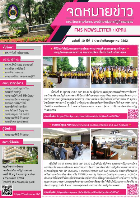 จดหมายข่าว ฉบับที่ 10 ปีที่ 1 เดือนตุลาคม 2562