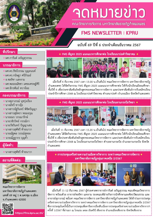 ZoomDetailsจดหมายข่าว ฉบับที่ 69 ปีที่ 6 เดือนธันวาคม 2567จดหมายข่าวBy suphatcharee taynawa31/01/2568