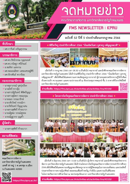 จดหมายข่าว ฉบับที่ 52 ปีที่ 5 เดือนกรกฎาคม 2566