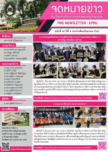 จดหมายข่าว ฉบับที่ 42 ปีที่ 4 เดือนกันยายน 2565