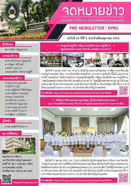 จดหมายข่าว ฉบับที่ 43 ปีที่ 4 เดือนตุลาคม 2565