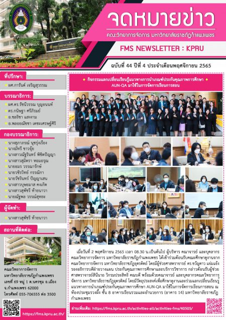 จดหมายข่าว ฉบับที่ 44 ปีที่ 4 เดือนพฤศจิกายน 2565
