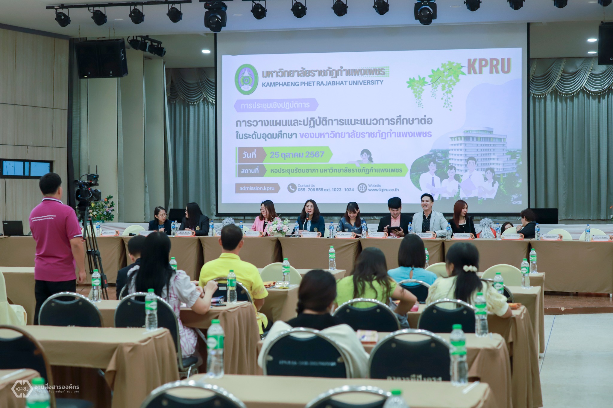 วันที่ 25 ตุลาคม 2567 เวลา 09.00 น. ผู้ช่วยศาสตราจารย์จักรพันธ์ หวาจ้อย ผู้ช่วยคณบดีฝ่ายสื่อสารองค์กร และโครงการพิเศษ คณะวิทยาการจัดการ มหาวิทยาลัยราชภัฏกำแพงเพชร ได้เข้าร่วมโครงการประชุมเชิงปฏิบัติการ เรื่อง วางแผนและปฏิบัติการแนะแนวการศึกษาต่อของมหาวิทยาลัยราชภัฏกำแพงเพชร ประจำปีการศึกษา 2568 เพื่อชี้แจง และทำความเข้าใจโครงการพัฒนาการศึกษาสำหรับโรงเรียนในเขตพื้นที่ของมหาวิทยาลัยราชภัฏกำแพงเพชร (จังหวัดกำแพงเพชร, จังหวัดพิจิตร, จังหวัดสุโขทัย และจังหวัดตาก) ในเรื่องของวิธีการและเกณฑ์การคัดเลือก ระบบการรับนักศึกษาใหม่ ปีการศึกษา 2568 ณ หอประชุมรัตนอาภา มหาวิทยาลัยราชภัฏกำแพงเพชร