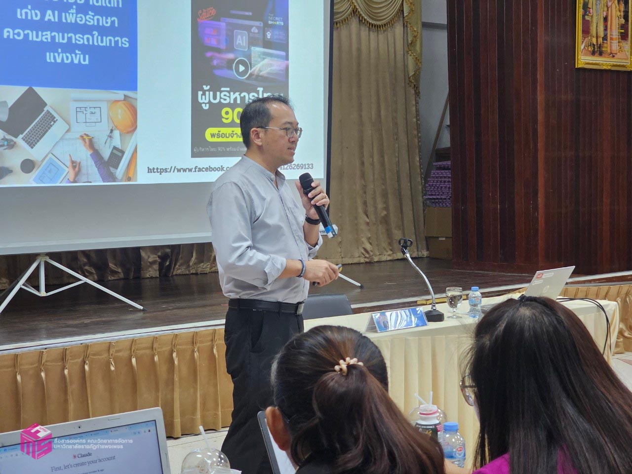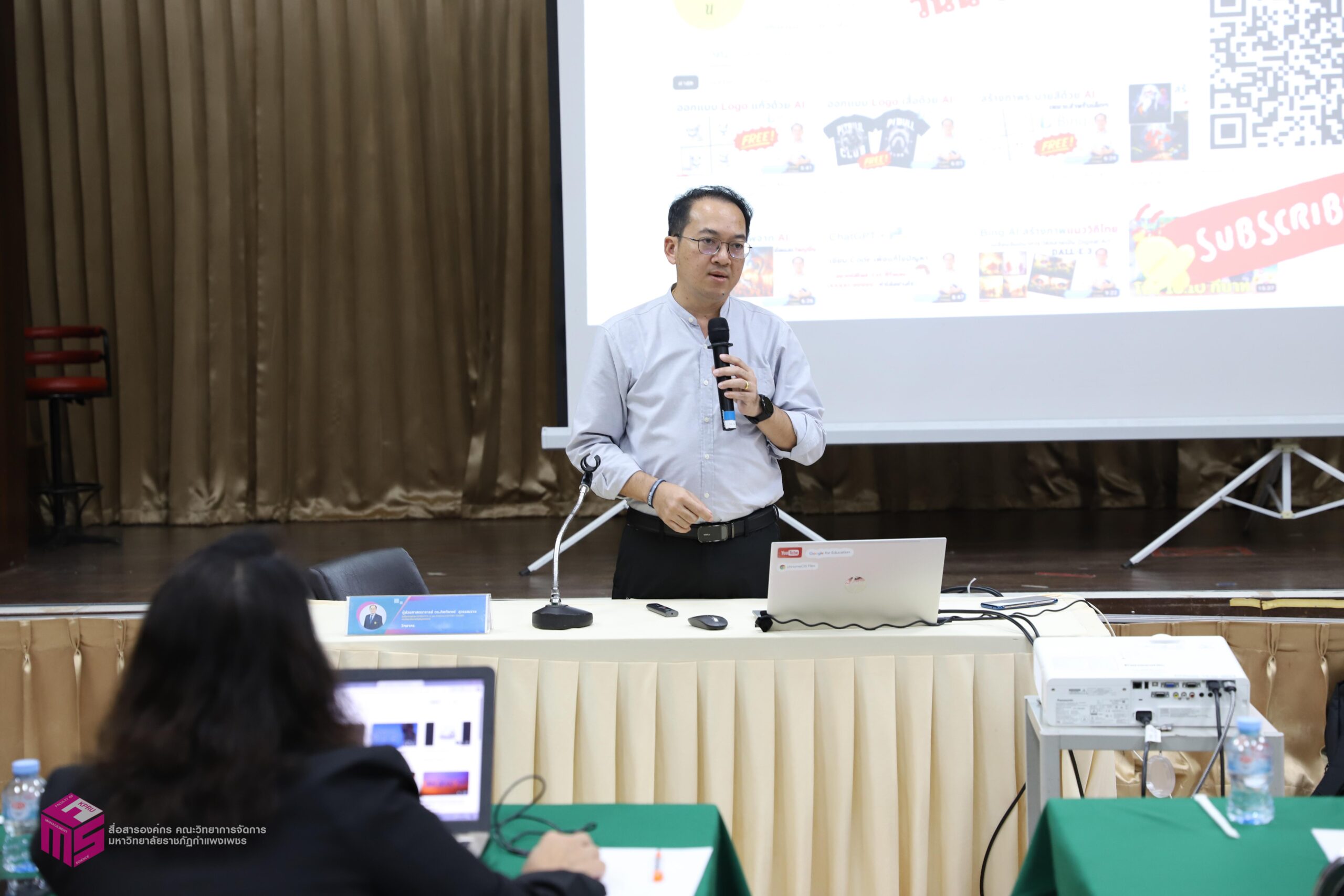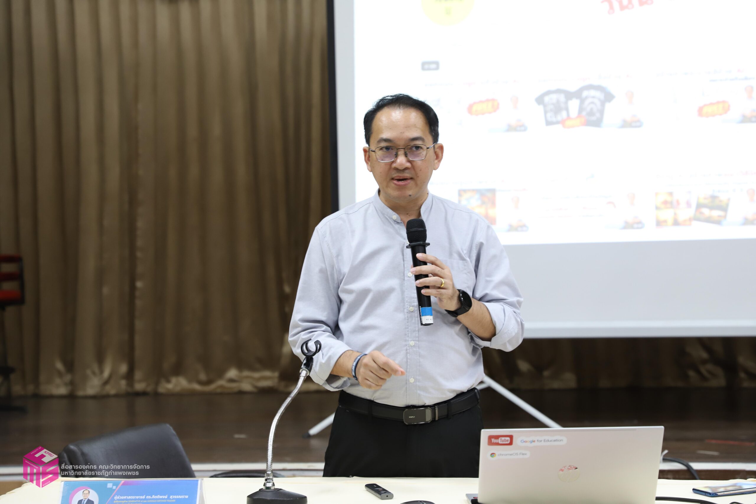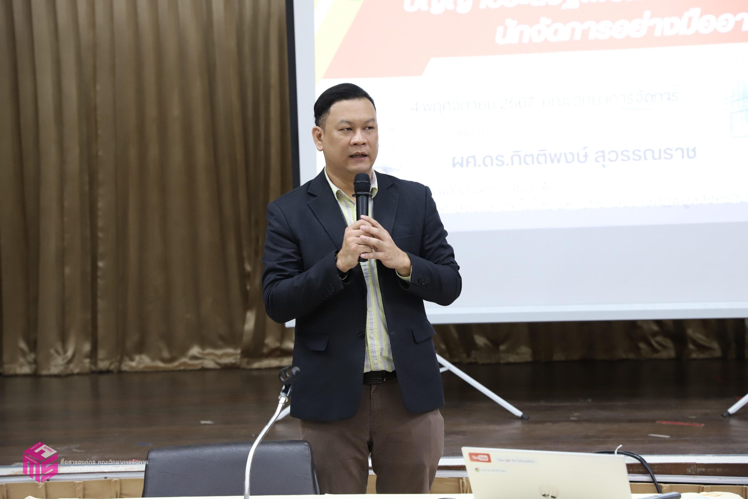 วันที่ 4 พฤศจิกายน 2567 เวลา 08.30 น.เป็นต้นไป หลักสูตรบริหารธุรกิจมหาบัณฑิต สาขาวิชาการจัดการสมัยใหม่ (MBA) คณะวิทยาการจัดการ มหาวิทยาลัยราชภัฏกำแพงเพชร ได้จัดอบรม “ปัญญาประดิษฐ์ AI เพื่อการยกระดับศักยภาพนักจัดการอย่างมืออาชีพ” โดย วิทยากร ผู้ช่วยศาสตราจารย์ ดร.กิตติพงษ์ สุวรรณราช ผู้เชี่ยวชาญด้าน Generative AI และ Google Certified Trainer มหาวิทยาลัยราชภัฏพิบูลสงคราม โดยการบรรยายประกอบด้วย การใช้ AI ในการร่างหนังสือ หรือเอกสารต่างๆ และงานแปล การใช้ AI เพื่อสร้างภาพประกอบสื่อประชาสัมพันธ์ และสื่ออื่นๆ การใช้ AI ในการถอดคลิปเสียงเพื่อสร้างรายงานการประชุม การใช้ AI ในการสรุปความรู้ เขียนตำรา และข้อมูลวิจัย การประยุกต์ใช้ AI ในด้านต่างๆ เพื่อคุณภาพงานที่ดีและรวดเร็วขึ้น และหัวข้ออื่นๆ ณ ห้องประชุม ชั้น 1 คณะวิทยาการจัดการ มหาวิทยาลัยราชภัฏกำแพงเพชร