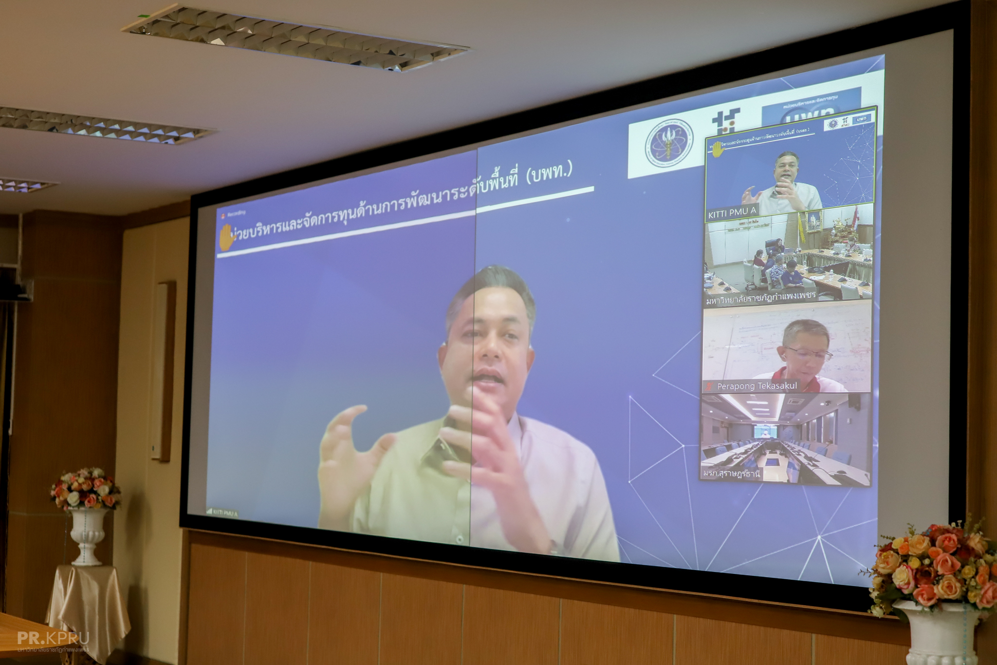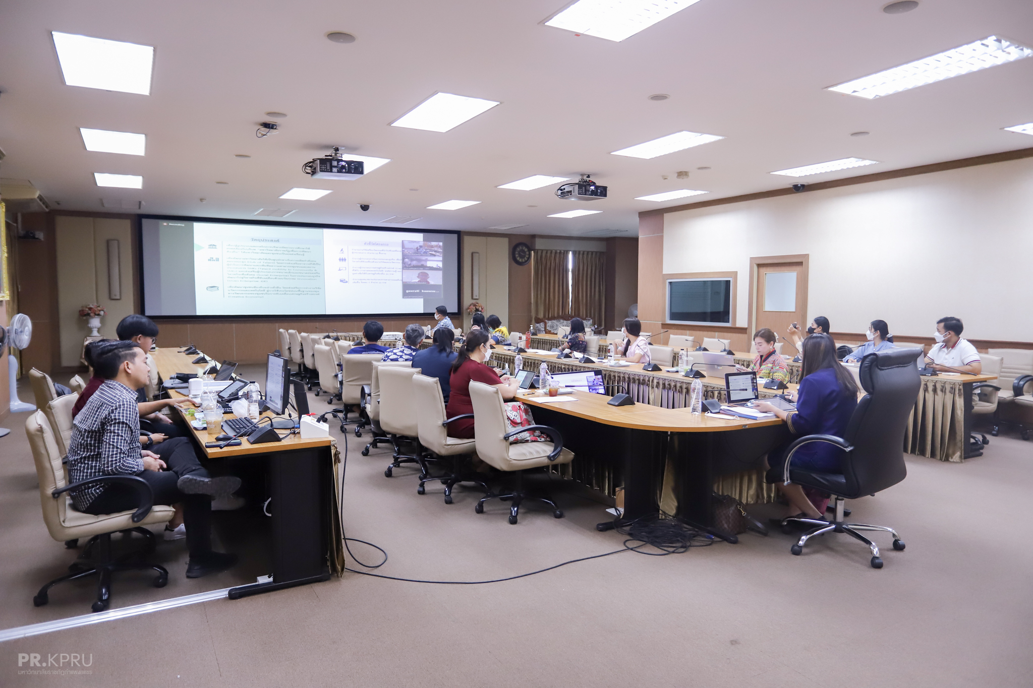 วันที่ 4 พฤศจิกายน 2565 ผู้ช่วยศาสตราจารย์การันต์ เจริญสุวรรณ คณบดีคณะวิทยาการจัดการ มหาวิทยาลัยราชภัฏกำแพงเพชร ได้เข้าร่วมการประชุมนำเสนอข้อเสนอโครงการพลิกโฉมมหาวิทยาลัย (Reinventing University) ประจำปีงบประมาณ พ.ศ. 2566 เรื่อง การขับเคลื่อนเศรษฐกิจสร้างสรรค์เพื่อการพัฒนาเชิงพื้นที่สำหรับสถาบันอุดมศึกษา ผ่านสื่ออิเล็กทรอนิกส์ต่อคณะอนุกรรมการด้านการพลิกโฉมมหาวิทยาลัย สปอว. เพื่อปฏิรูประบบและกลไกการบริหารจัดการการศึกษาให้สอดคล้องกับบริบท “มหาวิทยาลัยราชภัฏเพื่อการพัฒนาท้องถิ่น” ให้มหาวิทยาลัยและชุมชนเป็นแหล่งเรียนรู้ เป็นศูนย์กลางในการผลิตกำลังคนสมรรถนะสูง (Hub of Talent) โดยการส่งเสริมอาจารย์ให้เป็นผู้นำในการพัฒนาและเพิ่มขีดความสามารถชุมชนและสถานประกอบการ SMEs (Talent mobility to Community & SMEs) และส่งเสริมผู้ประกอบการขนาดเล็กและขนาดย่อยหรือวิสาหกิจเพื่อสังคม (Social Enterprise) ในการประกอบธุรกิจพัฒนาไปสู่วิสาหกิจที่ขับเคลื่อนด้วยนวัตกรรม (Innovation Driven Enterprise: IDE) เพื่อพัฒนาชุมชนท้องถิ่นอย่างยั่งยืน โดยส่งเสริมการนำงานวิจัย นวัตกรรมและเทคโนโลยี สู่การใช้ประโยชน์บนพื้นฐานของทุนทางวัฒนธรรมของชุมชนในการขับเคลื่อนเศรษฐกิจสร้างสรรค์ (Creative Economy) ณ ห้องประชุม ชั้น 8 มหาวิทยาลัยราชภัฏกำแพงเพชร
