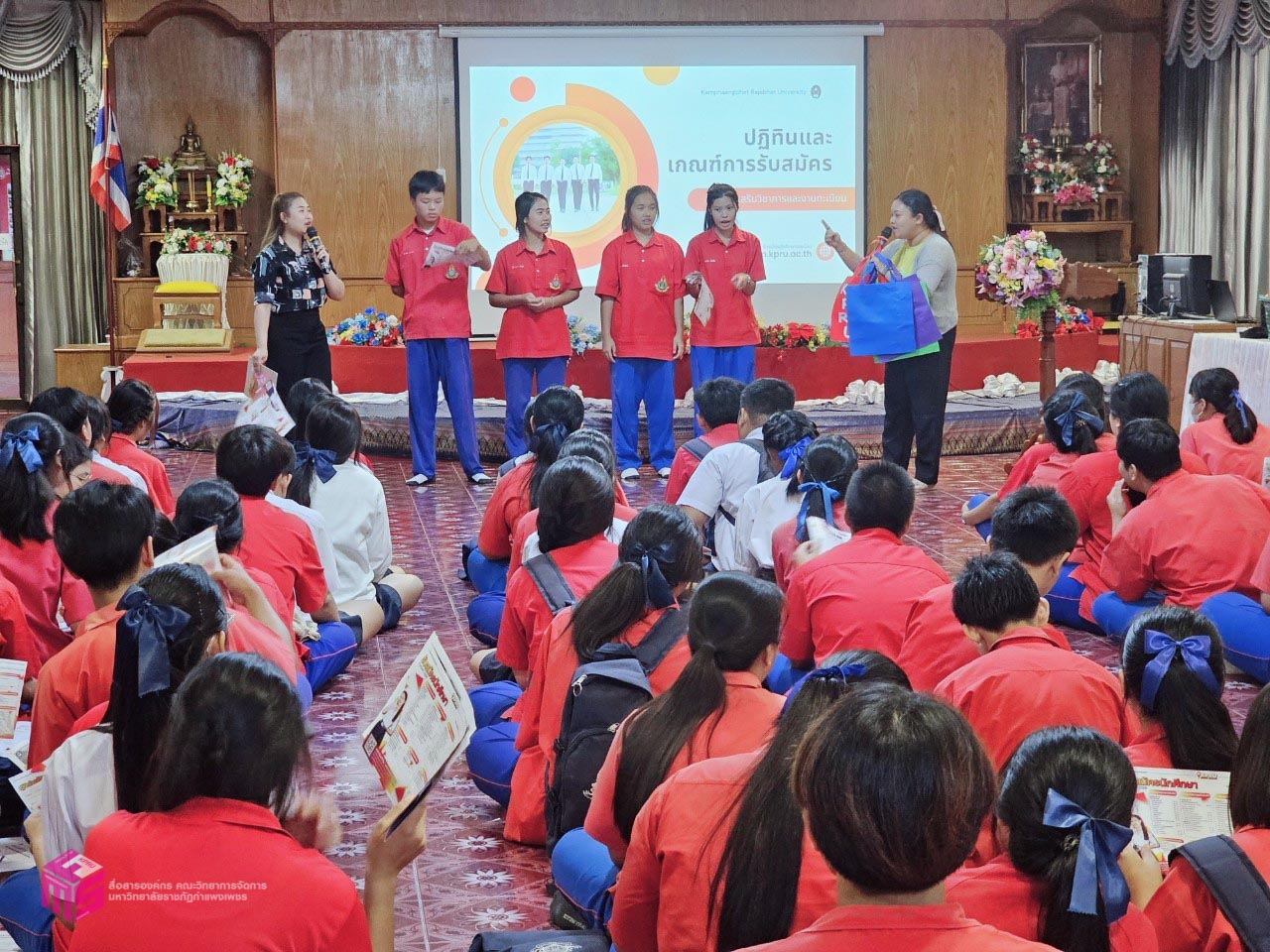 วันที่ 6 พฤศจิกายน 2567 เวลา 14.00 น.เป็นต้นไป ตัวแทนคณะวิทยาการจัดการ มหาวิทยาลัยราชภัฏกำแพงเพชร ได้เข้าร่วมกิจกรรมแนะแนวการศึกษา KPRU TO SCHOOL 2025 เพื่อประชาสัมพันธ์หลักสูตรของคณะวิทยาการจัดการ และประชาสัมพันธ์การรับสมัครเรียน ประจำปีการศึกษา 2568 ณ โรงเรียนเฉลิมพระเกียรติสมเด็จพระศรีนครินทร์ กำแพงเพชร ตำบลเทพนคร อำเภอเมือง จังหวัดกำแพงเพชร