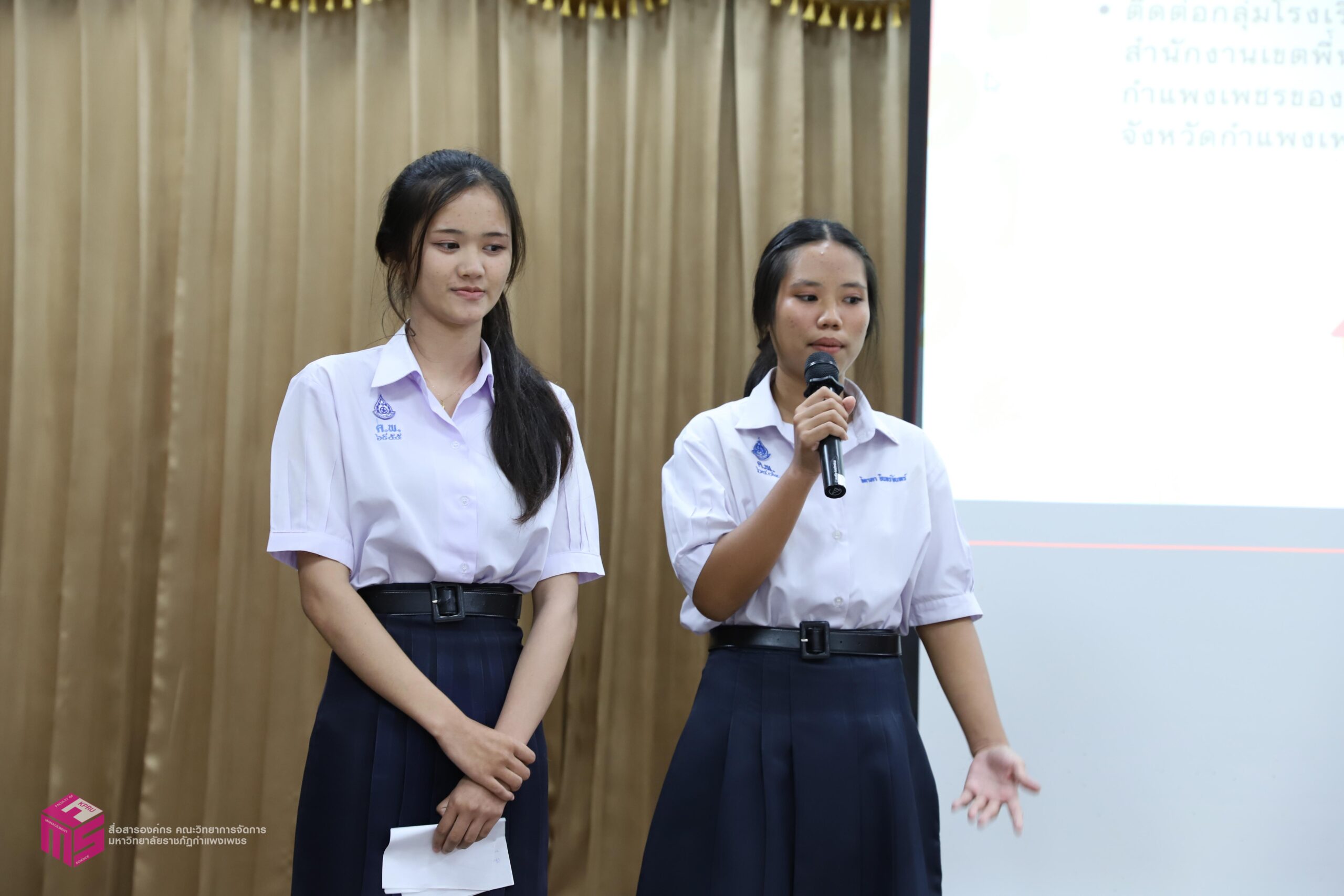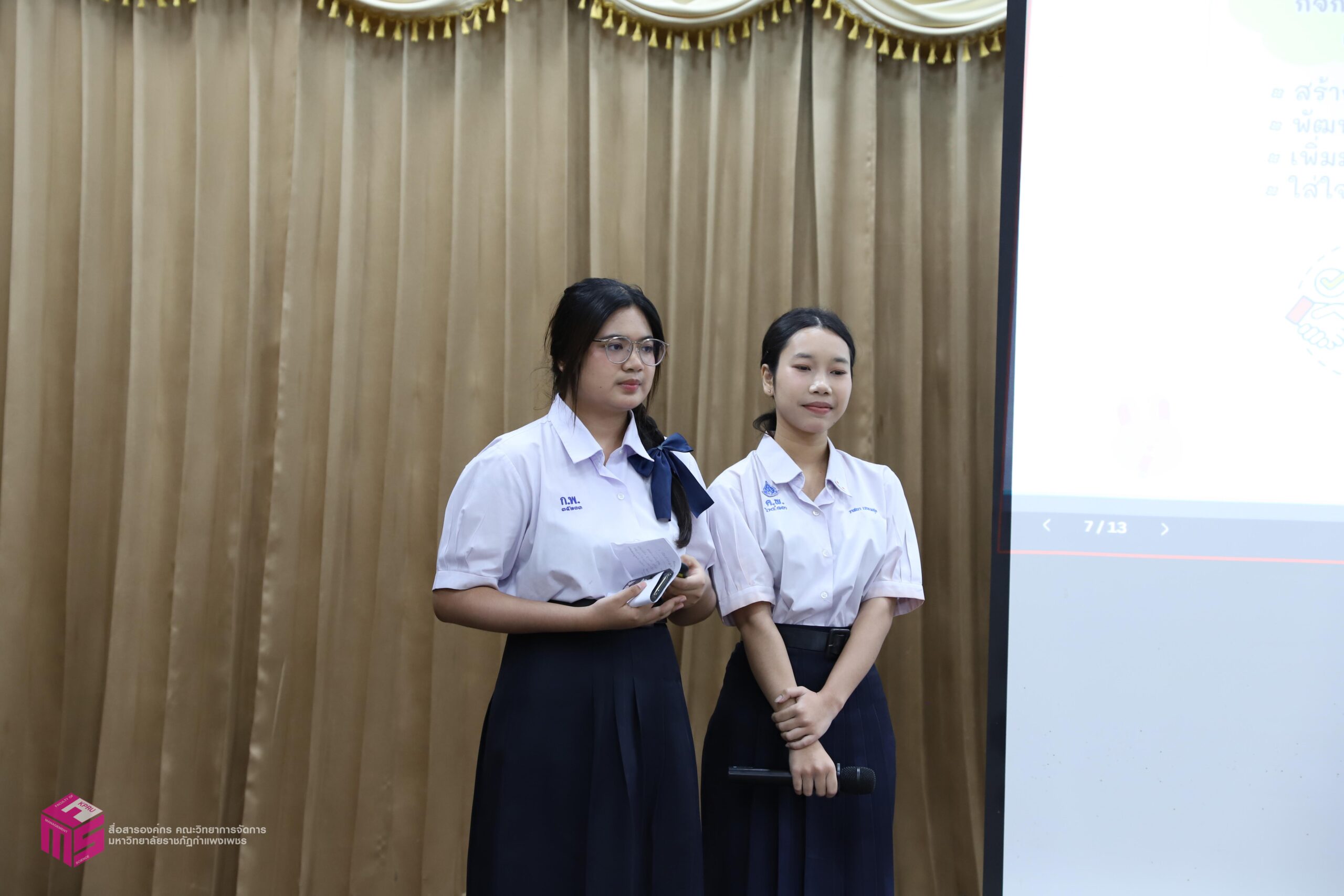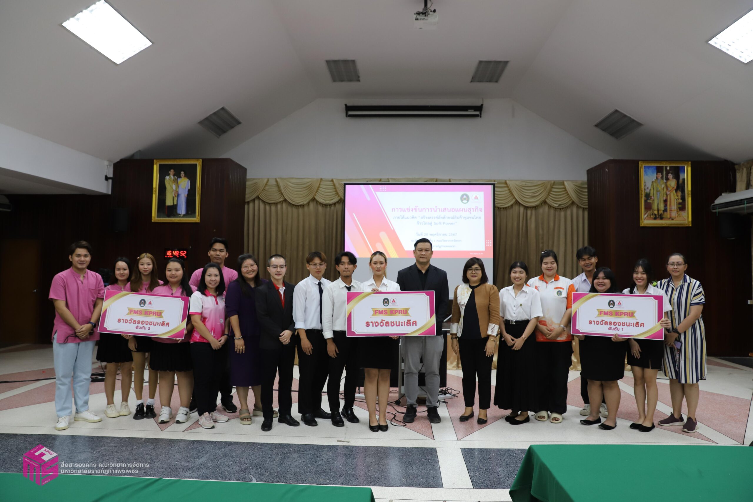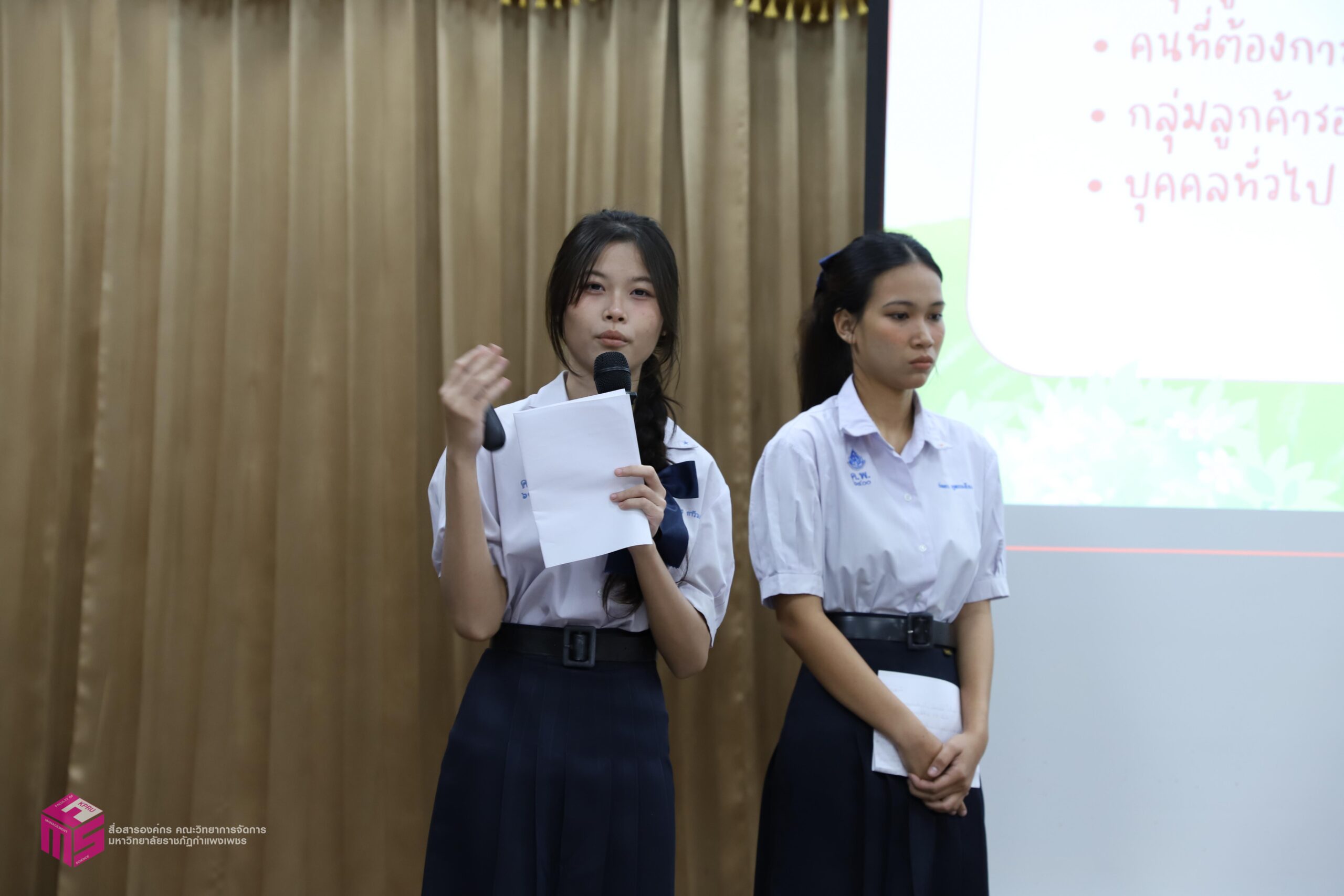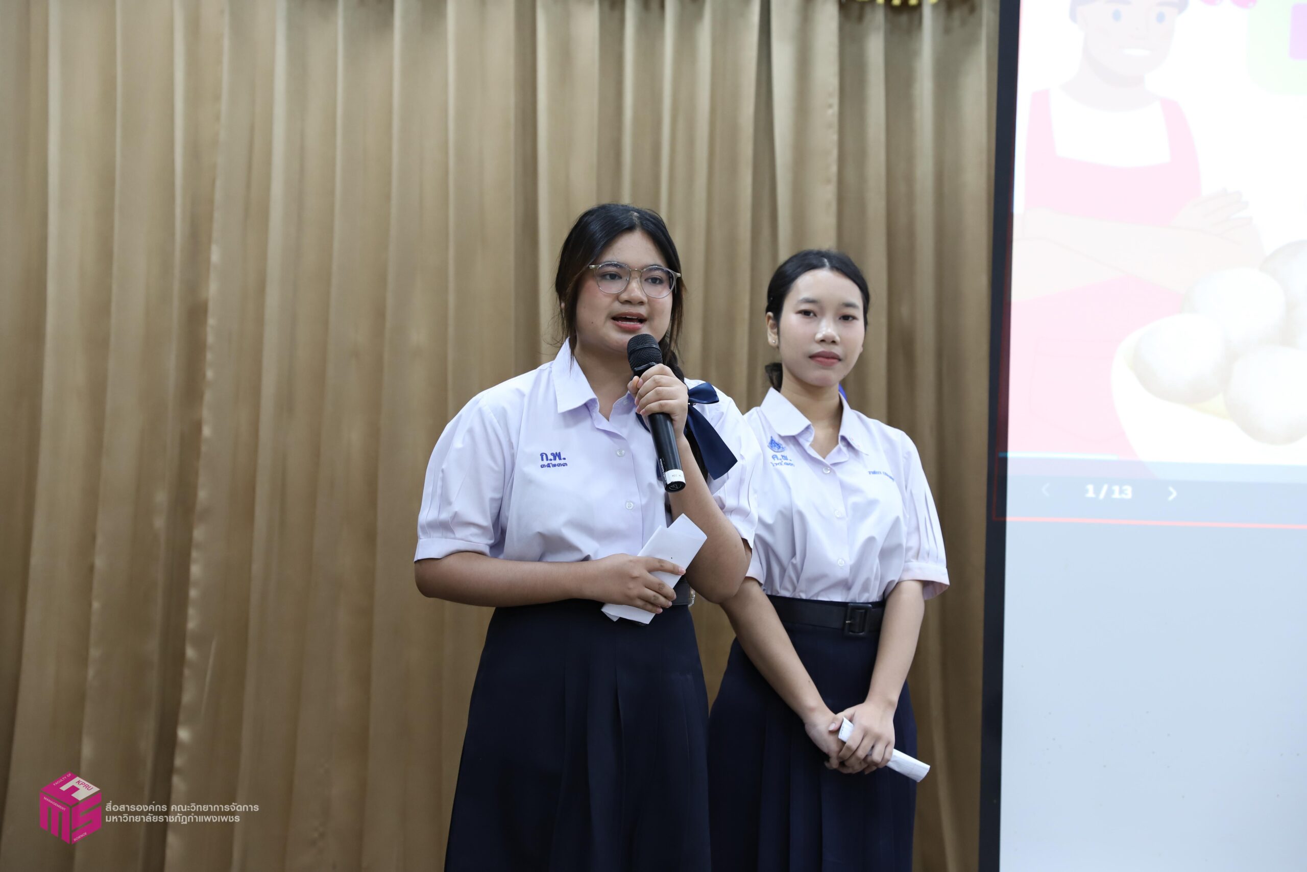 วันที่ 20 พฤศจิกายน 2567 เวลา 08.30 น. เป็นต้นไป คณะวิทยาการจัดการ มหาวิทยาลัยราชภัฏกำแพงเพชร ได้จัดกิจกรรมการแข่งขันนำเสนอแผนธุรกิจ ภายใต้แนวคิด “สร้างสรรค์อัตลักษณ์สินค้าชุมชนไทยก้าวไกลสู่ Soft Power” ให้กับนักเรียนมัธยมศึกษา ชั้นปีที่ 6 และนักศึกษาทุกชั้นปี ณ ห้องประชุม ชั้น 1 คณะวิทยาการจัดการ มหาวิทยาลัยราชภัฏกำแพงเพชร