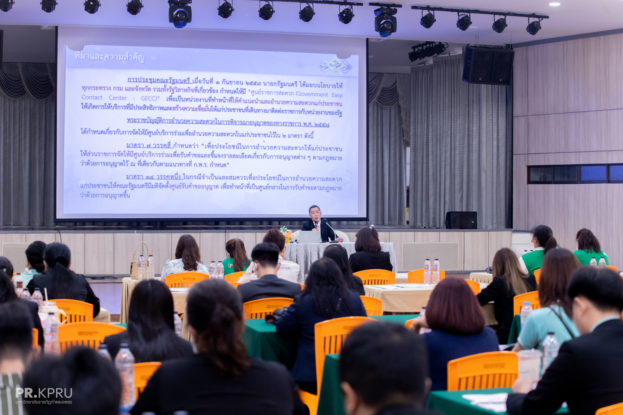 วันที่ 15 มีนาคม 2566 เวลา 08.30 น.เป็นต้นไป บุคลากรคณะวิทยาการจัดการ มหาวิทยาลัยราชภัฏกำแพงเพชร ได้เข้าร่วมโครงการพัฒนาสมรรถนะบุคลากรสายสนับสนุน เรื่อง การพัฒนาทักษะงานบริการหน่วยงาน มหาวิทยาลัยที่มีประสิทธิภาพสู่มาตรฐานการให้บริการประชาชน (ศูนย์ราชการสะดวก GECC) ซึ่งได้รับเกียรติจากวิทยากรผู้เชี่ยวชาญ คุณโชคชัย หาญนิมิตกุล ผู้อำนวยการส่วนร่วมของประชาชน ศูนย์บริการประชาชน สำนักปลัดสำนักนายกรัฐมนตรี มาบรรยายในครั้งนี้ เพื่อให้บุคลากรสายสนับสนุนมีความรู้ ความเข้าใจในสมรรถนะด้านการให้บริการอย่างเต็มศักยภาพ เพื่อพัฒนา ปรับปรุงมาตรฐานการให้บริการนักศึกษาและประชาชน และเพื่อให้บุคลากรมีจิตบริการ ส่งผลต่อการให้บริการของทุกหน่วยงานมีความสะดวกมีประสิทธิภาพ และสร้างความเชื่อมั่นให้แก่นักศึกษาและประชาชนที่มาติดต่อราชการ (GECC) ณ หอประชุมรัตนอาภา มหาวิทยาลัยราชภัฏกำแพงเพชร