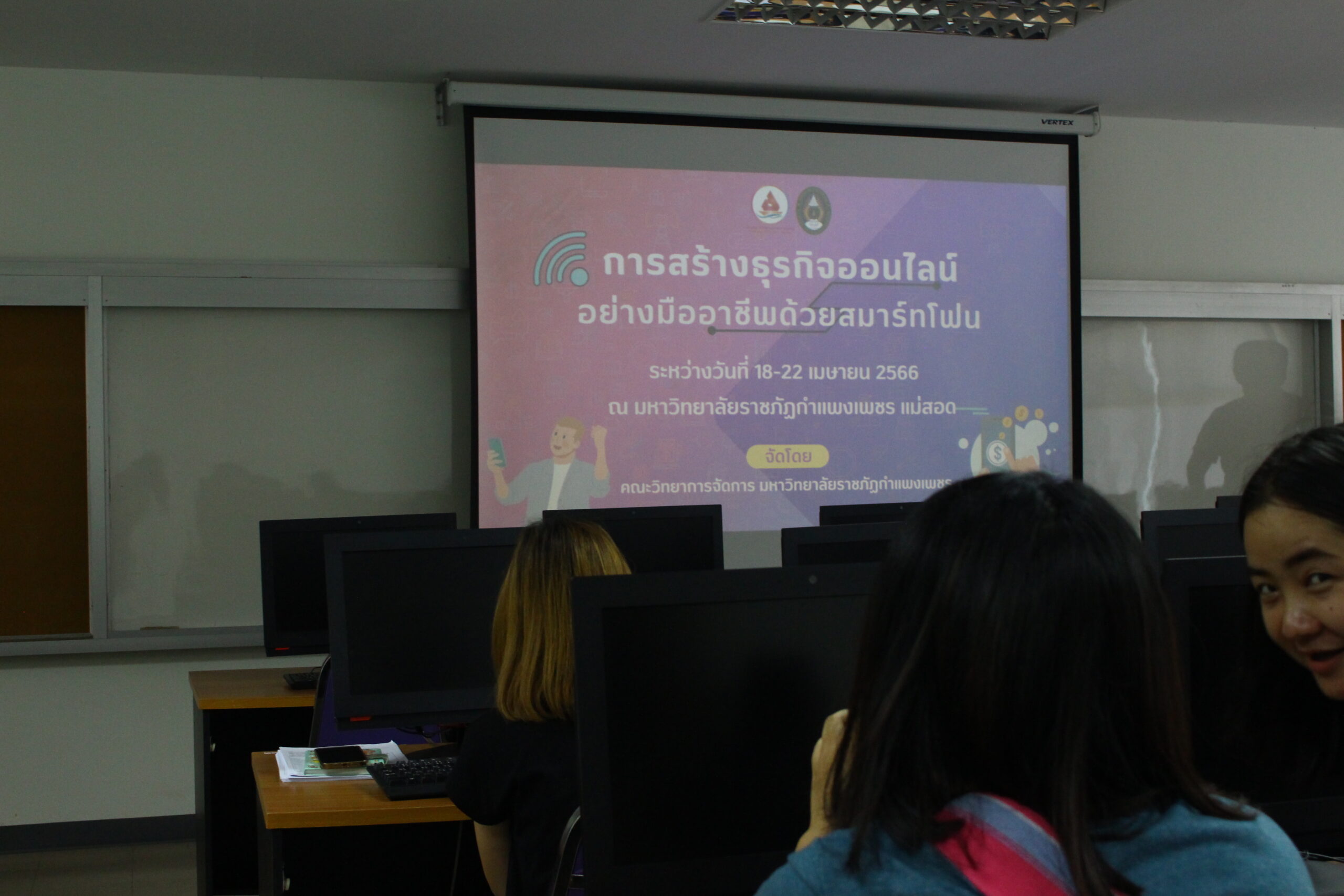 วันที่ 18 – 22 เมษายน 2566 คณะวิทยาการจัดการ มหาวิทยาลัยราชภัฏกำแพงเพชร ได้ดำเนินการจัดอบรมหลักสูตรระยะสั้น ในหัวข้อ “การสร้างธุรกิจออนไลน์อย่างมืออาชีพด้วยสมาร์ทโฟน” ณ ห้องปฏิบัติการคอมพิวเตอร์ 2 ชั้น สามอาคารเฉลิมพระเกียรติ มหาวิทยาลัยราชภัฏกำแพงเพชร แม่สอด