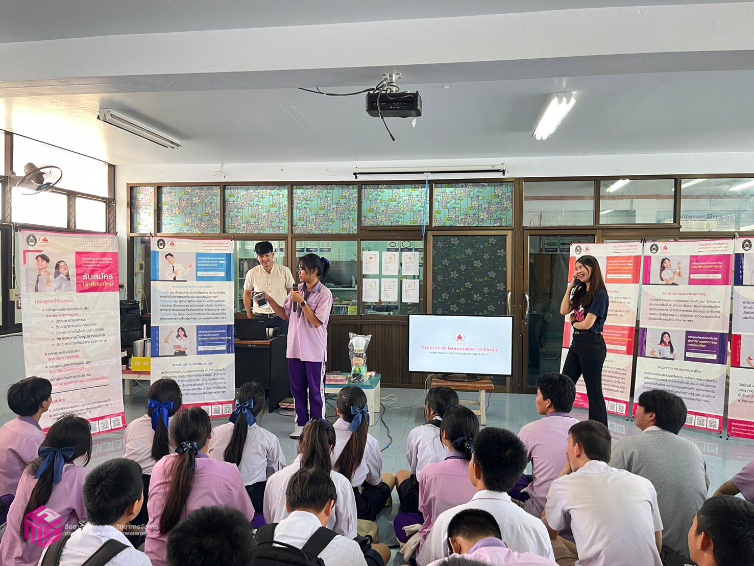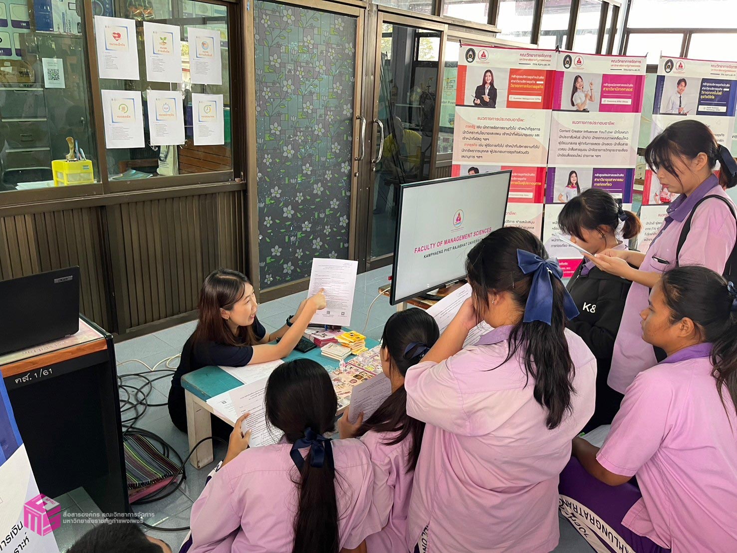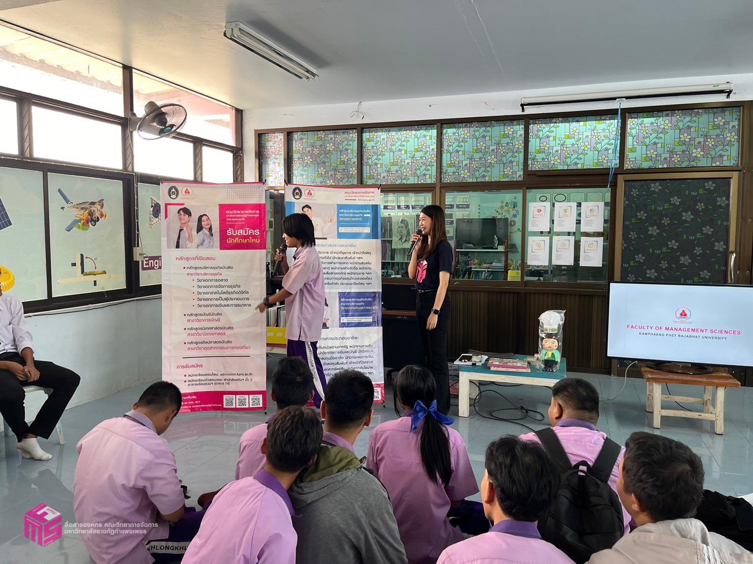 วันที่ 25 พฤศจิกายน 2567 เวลา 08.30 น.เป็นต้นไป คณะวิทยาการจัดการ มหาวิทยาลัยราชภัฏกำแพงเพชร ได้จัดกิจกรรม FMS สัญจร 2025 แนะแนวการศึกษาต่อ ให้กับนักเรียนมัธยมศึกษา ชั้นปีที่ 6 เพื่อประชาสัมพันธ์หลักสูตรของคณะวิทยาการจัดการ และประชาสัมพันธ์การรับสมัครเรียน ประจำปีการศึกษา 2568 ณ โรงเรียนคลองขลุงราษฎร์รังสรรค์ ตำบลคลองขลุง อำเภอคลองขลุง จังหวัดกำแพงเพชร