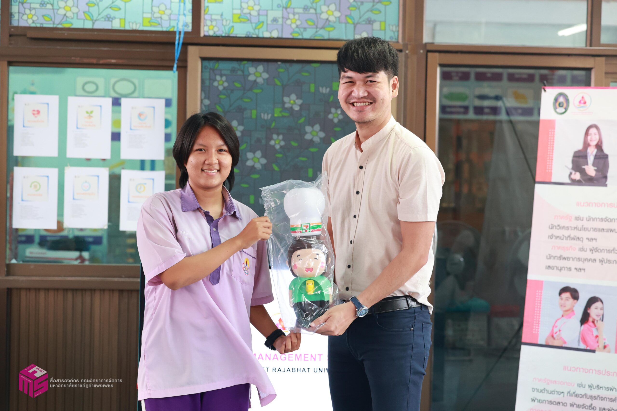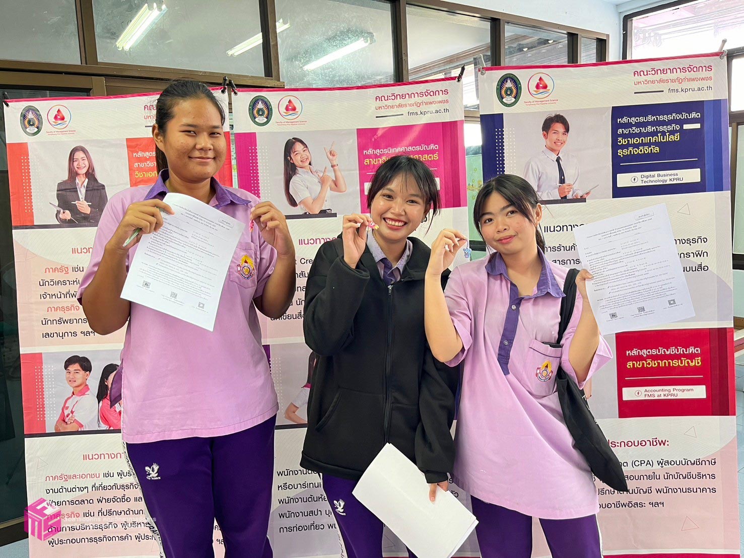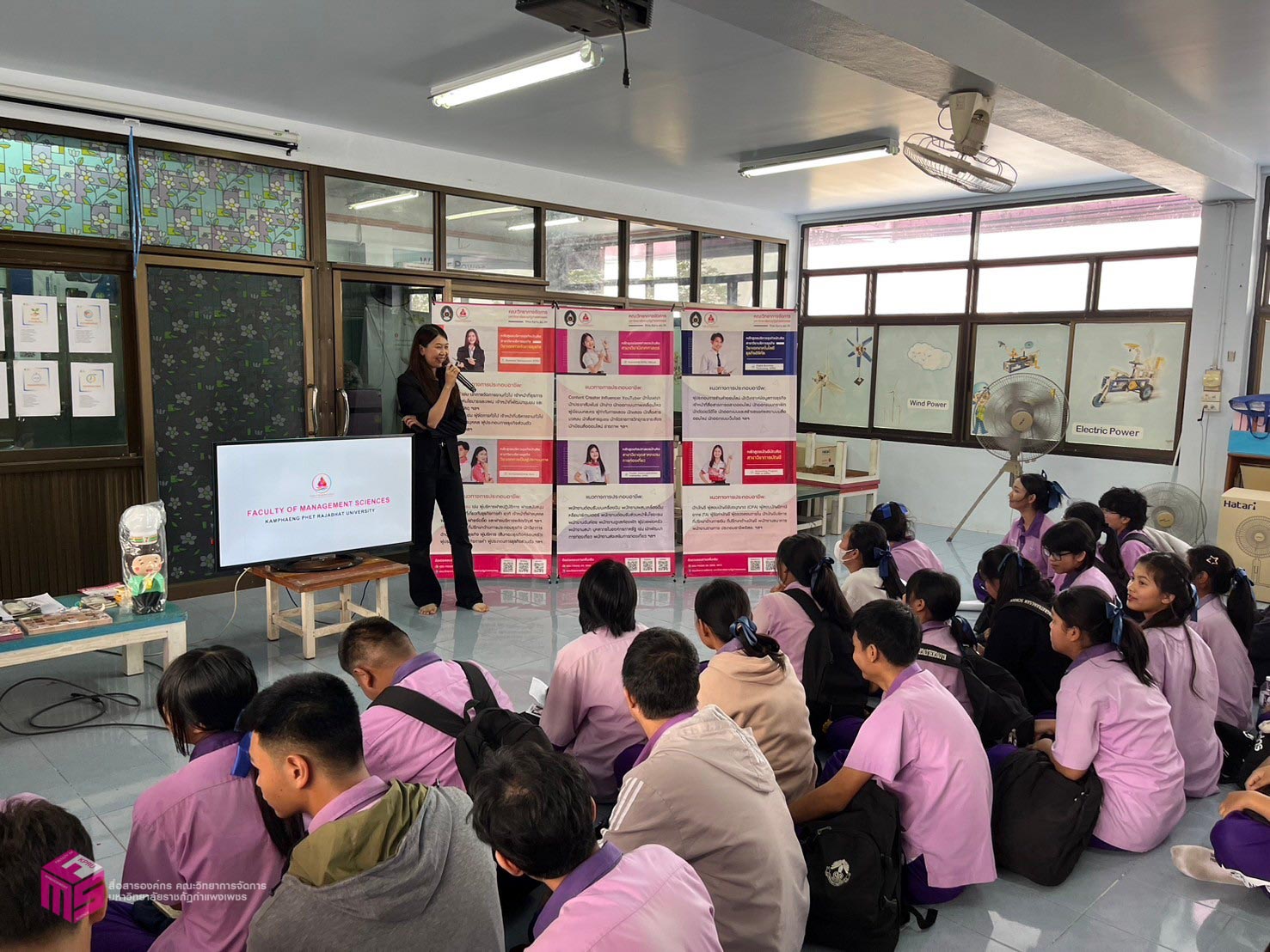วันที่ 25 พฤศจิกายน 2567 เวลา 08.30 น.เป็นต้นไป คณะวิทยาการจัดการ มหาวิทยาลัยราชภัฏกำแพงเพชร ได้จัดกิจกรรม FMS สัญจร 2025 แนะแนวการศึกษาต่อ ให้กับนักเรียนมัธยมศึกษา ชั้นปีที่ 6 เพื่อประชาสัมพันธ์หลักสูตรของคณะวิทยาการจัดการ และประชาสัมพันธ์การรับสมัครเรียน ประจำปีการศึกษา 2568 ณ โรงเรียนคลองขลุงราษฎร์รังสรรค์ ตำบลคลองขลุง อำเภอคลองขลุง จังหวัดกำแพงเพชร