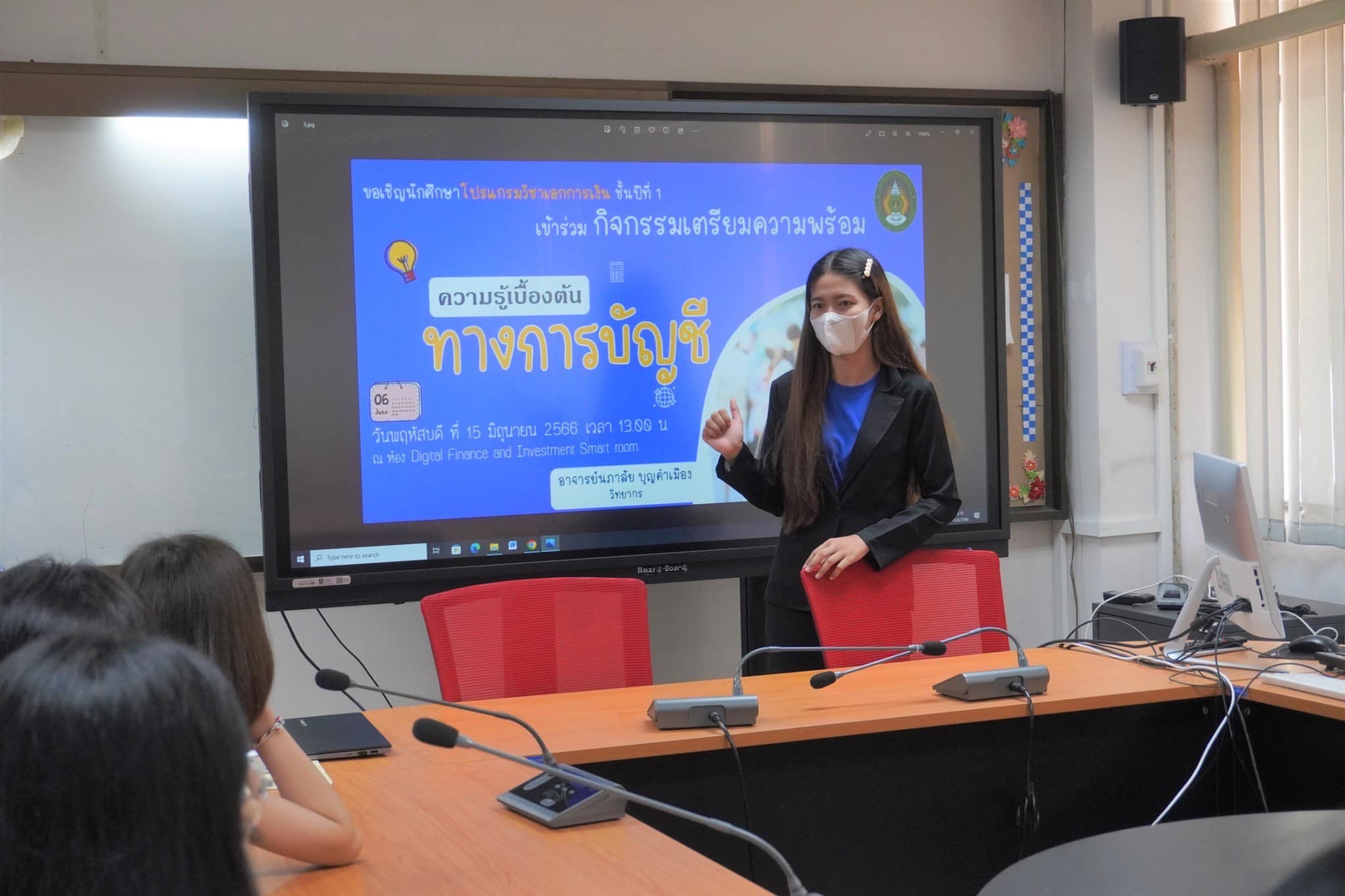 วันที่ 15 มิถุนายน 2566 เวลา 08.30 น.เป็นต้นไป วิชาเอกการเงิน คณะวิทยาการจัดการ มหาวิทยาลัยราชภัฏกำแพงเพชร ได้จัดกิจกรรมปฐมนิเทศนักศึกษาใหม่ 2566 และกิจกรรมเตรียมความพร้อมนักศึกษา เพื่อเตรียมความพร้อมก่อนเปิดภาคเรียน ซึ่งภายในกิจกรรมประกอบด้วย กิจกรรมระหว่างเรียน แนะนำอาจารย์ โดยอาจารย์ ดร.คุณัญญา เบญจวรรณ กิจกรรมเตรียมความพร้อม ในหัวข้อ “เทคนิคการเรียนให้ประสบความสำเร็จภายในระยะเวลาที่กำหนด” โดยผู้ช่วยศาสตราจารย์ศิริพร โสมคำภา และผู้ช่วยศาสตราจารย์อนุธิดา เพชรพิมูล กิจกรรมเตรียมความพร้อม ในหัวข้อ “ความรู้เบื้องต้นทางการบัญชี” โดยอาจารย์นภาลัย บุญคำเมือง และกิจกรรมเตรียมความพร้อม ในหัวข้อ “การใช้งานโปรแกรม Microsoft Excel ทางการเงินเบื้องต้น” โดยอาจารย์วิษณเดช นันไชยแก้ว ณ ห้อง Digital Finance and Investment Smart room คณะวิทยาการจัดการ มหาวิทยาลัยราชภัฏกำแพงเพชร