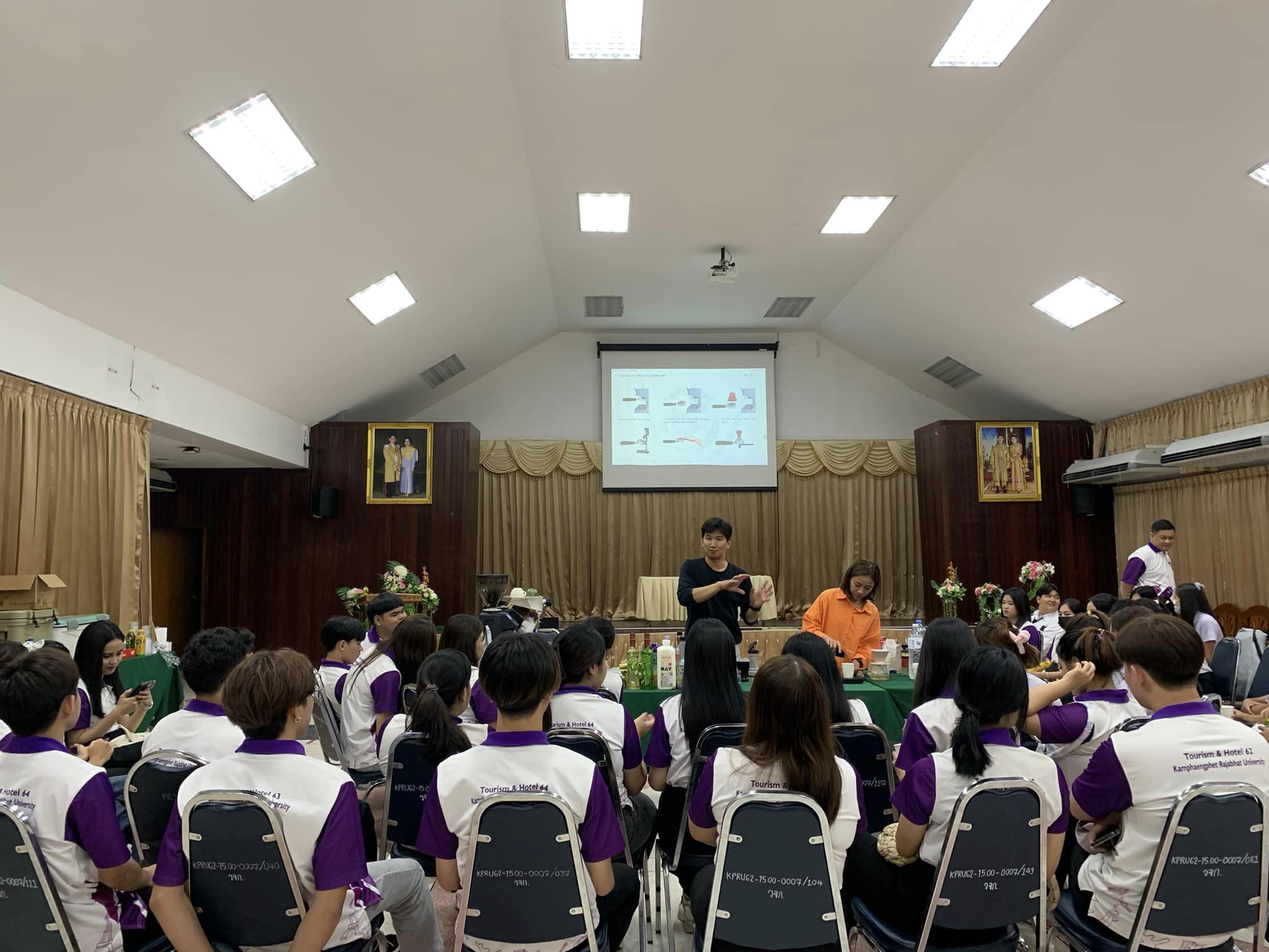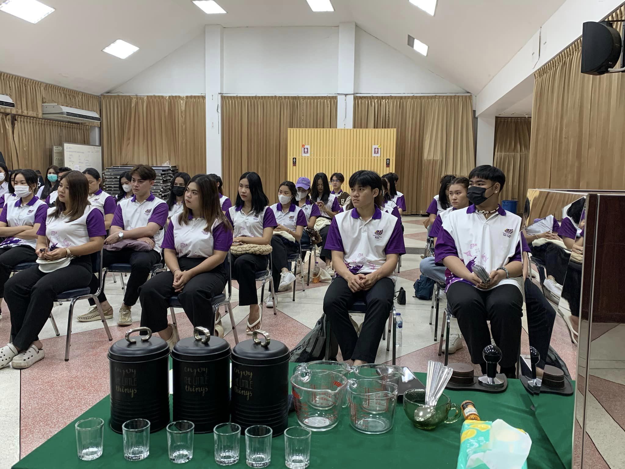 วันที่ 26 มิถุนายน 2566 เวลา 08.30 น.เป็นต้นไป สาขาวิชาอุตสาหกรรมการท่องเที่ยว คณะวิทยาการจัดการ มหาวิทยาลัยราชภัฏกำแพงเพชร ได้จัดกิจกรรมพัฒนาผู้เรียนตามผลการเรียนรู้ที่คาดหวังของหลักสูตรศิลปศาสตรบัณฑิต สาขาวิชาอุตสาหกรรมการท่องเที่ยวให้กับนักศึกษา เพื่อพัฒนาผู้เรียนตามผลการเรียนรู้ที่คาดหวัง โดยได้รับเกียรติจากวิทยากร คุณวงเดือน น้อยนาช ศิษย์เก่าโปรแกรมวิชาการท่องเที่ยวและการโรงแรม และวิทยากรผู้ช่วย มาบรรยายให้ความรู้เกี่ยวกับการผสมเครื่องดื่ม ณ ห้องประชุม ชั้น 1 คณะวิทยาการจัดการ มหาวิทยาลัยราชภัฏกำแพงเพชร