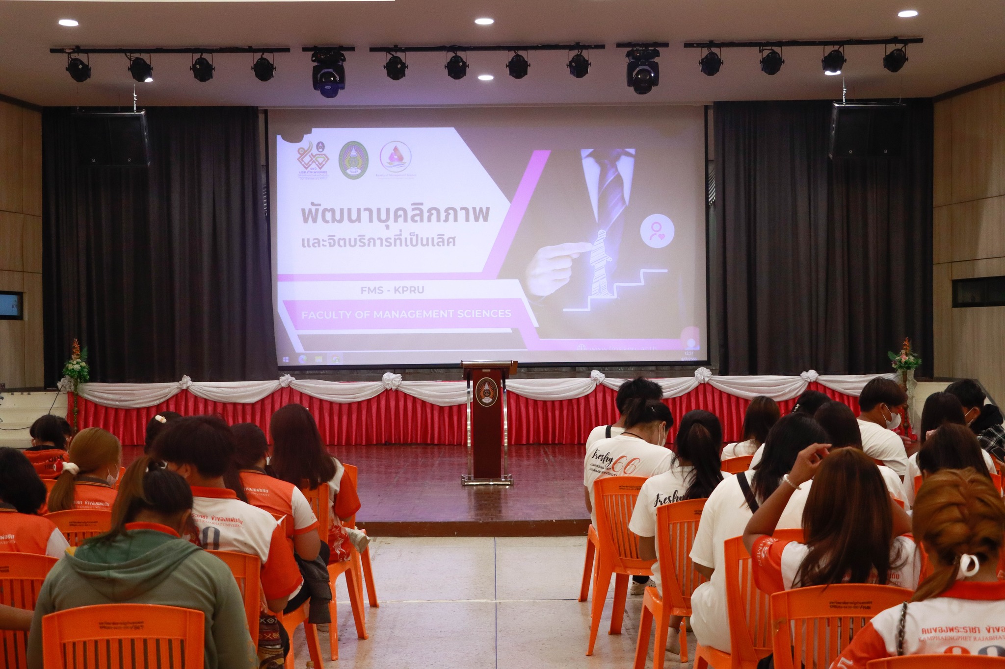 วันที่ 8 กรกฎาคม 2566 เวลา 13.00 น.เป็นต้นไป ฝ่ายกิจการนักศึกษาและศิลปวัฒนธรรม คณะวิทยาการจัดการ มหาวิทยาลัยราชภัฏกำแพงเพชร ได้ดำเนินการจัดอบรม “พัฒนาบุคลิกภาพและจิตบริการที่เป็นเลิศ” ให้กับนักศึกษาชั้นปีที่ 1 – 3 คณะวิทยาการจัดการ เพื่อพัฒนานักศึกษาให้มีความรู้ ความเข้าใจเกี่ยวกับบุคลิกภาพให้ดียิ่งขึ้น ณ หอประชุมรัตนอาภา มหาวิทยาลัยราชภัฏกำแพงเพชร