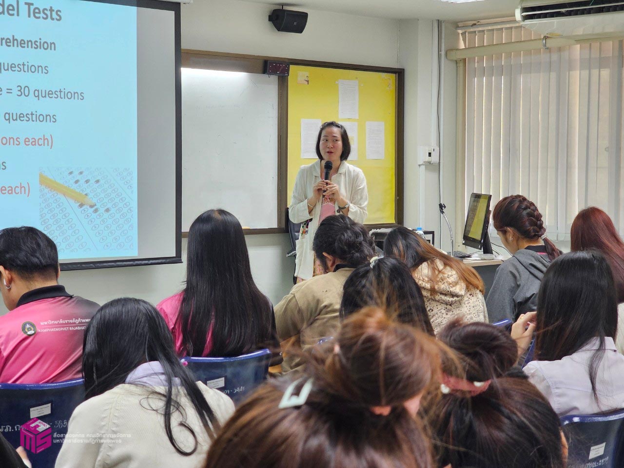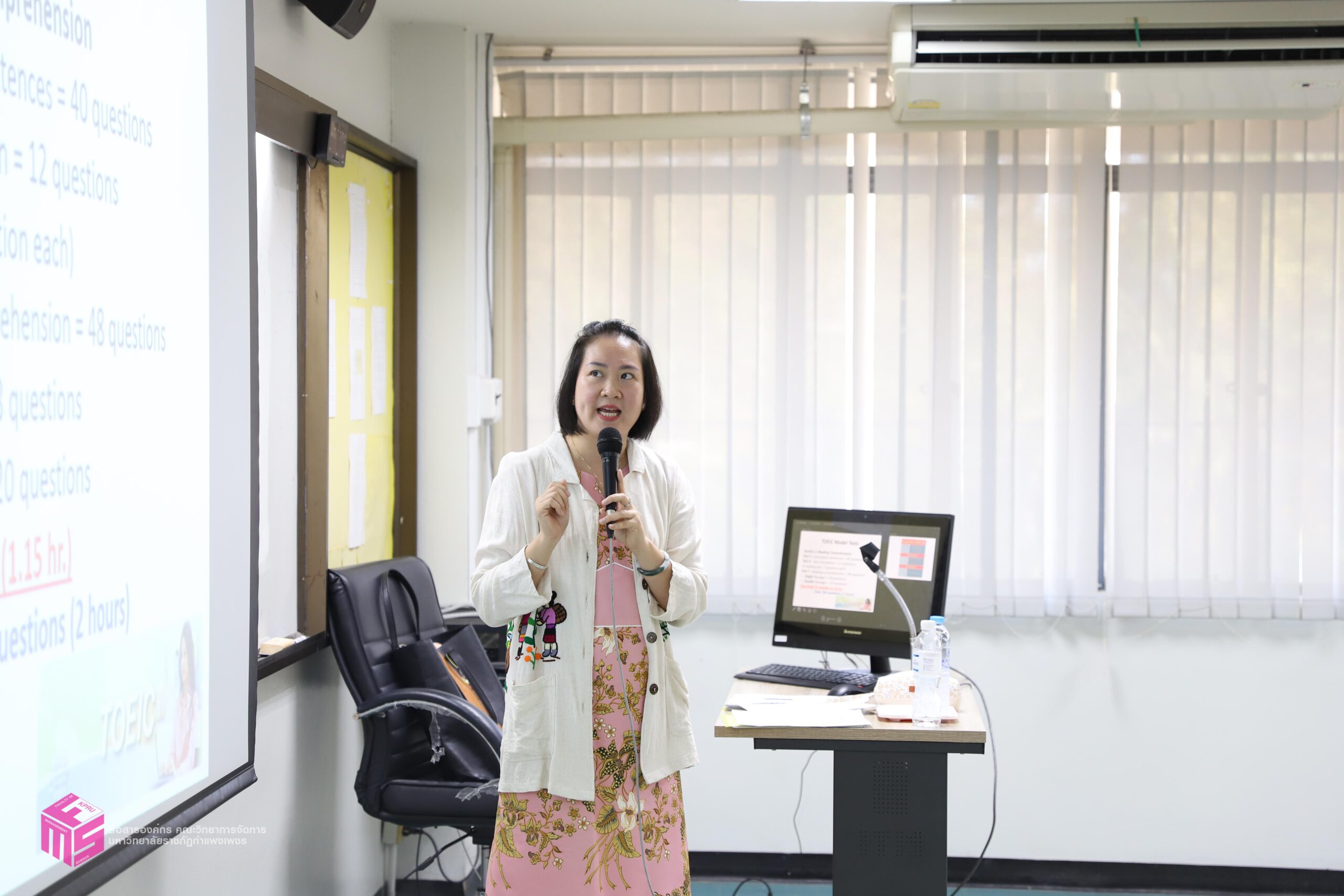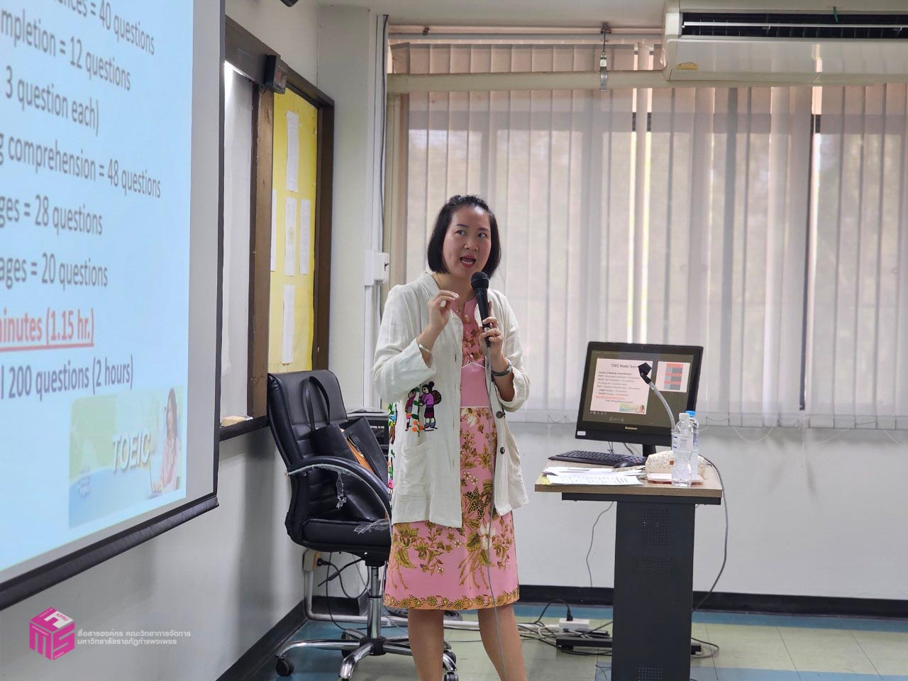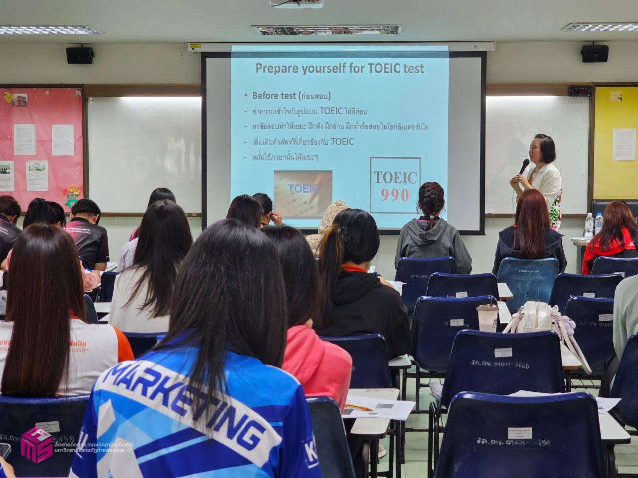 วันที่ 18 มกราคม 2568 เวลา 08.30 น.เป็นต้นไป คณะวิทยาการจัดการ มหาวิทยาลัยราชภัฏกำแพงเพชร ได้จัดอบรมเชิงปฏิบัติการ “การเตรียมความพร้อมการสอบวัดมาตรฐานภาษาอังกฤษโทอิค (TOEIC)” ให้กับนักศึกษาคณะวิทยาการจัดการ โดยได้รับเกียรติจากคุณณปภัช ริ้วกุลขจร เป็นวิทยากรให้ความรู้กับนักศึกษาในครั้งนี้ ณ ห้อง 11301 คณะวิทยาการจัดการ มหาวิทยาลัยราชภัฏกำแพงเพชร ซึ่งกิจกรรมนี้มีวัตถุประสงค์เพื่อเสริมสร้างทักษะความรู้ด้านภาษาอังกฤษให้กับนักศึกษา และเพื่อส่งเสริมให้นักศึกษาสามารถนำความรู้ด้านภาษาอังกฤษไปใช้ประโยชน์ได้จริง