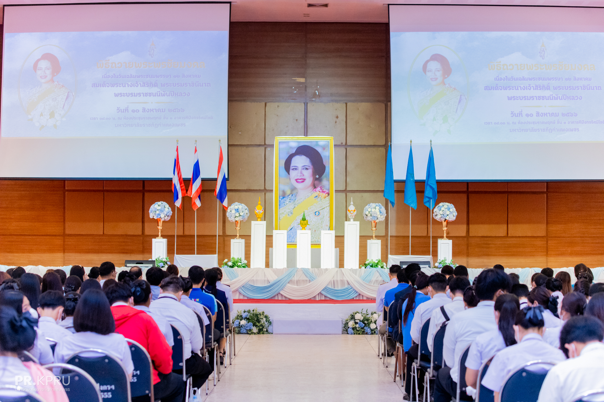 วันที่ 10 สิงหาคม 2566 เวลา 08.30 น.เป็นต้นไป คณาจารย์ บุคลากร และนักศึกษา คณะวิทยาการจัดการ มหาวิทยาลัยราชภัฏกำแพงเพชร ได้เข้าร่วมพิธีถวายพระพรชัยมงคล สมเด็จพระนางเจ้าสิริกิติ์ พระบรมราชินีนาถ พระบรมราชชนนีพันปีหลวง เนื่องในโอกาสมหามคงคลเฉลิมพระชนมพรรษา 12 สิงหาคม 2566 ซึ่งภายในพิธีถวายพระพรชัยมงคลฯ ประกอบด้วย พิธีถวายเครื่องราชสักการะ พิธีถวายพระพรชัยมงคล และพิธีมอบรางวัลโครงการประกวดเขียนเรียงความวันแม่ “แม่คนนี้…ที่ฉันรัก” ประจำปี 2566 ณ ห้องประชุมราชพฤกษ์ ชั้น 3 อาคารทีปังกรรัศมีโชติ มหาวิทยาลัยราชภัฏกำแพงเพชร