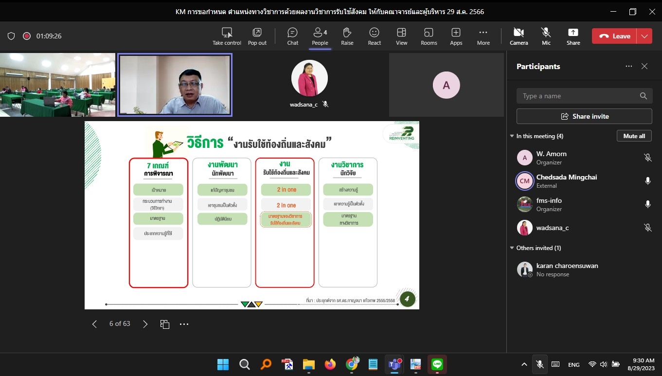 วันที่ 29 สิงหาคม 2566 เวลา 08.30 น.เป็นต้นไป คณะวิทยาการจัดการ มหาวิทยาลัยราชภัฏกำแพงเพชร ได้ดำเนินการจัดอบรม ในหัวข้อ “การขอกำหนดตำแหน่งทางวิชาการด้วยผลงานวิชาการรับใช้สังคม (ออนไลน์)” ให้กับคณาจารย์คณะวิทยาการจัดการ และบุคลากรที่สนใจ โดยได้รับเกียรติจากรองศาสตราจารย์ ดร.เจษฎา มิ่งฉาย รองอธิการบดีมหาวิทยาลัยราชภัฏอุตรดิตถ์ เป็นวิทยากรให้ความรู้ในครั้งนี้ ณ ห้องประชุม ชั้น 1 คณะวิทยาการจัดการ มหาวิทยาลัยราชภัฏกำแพงเพชร