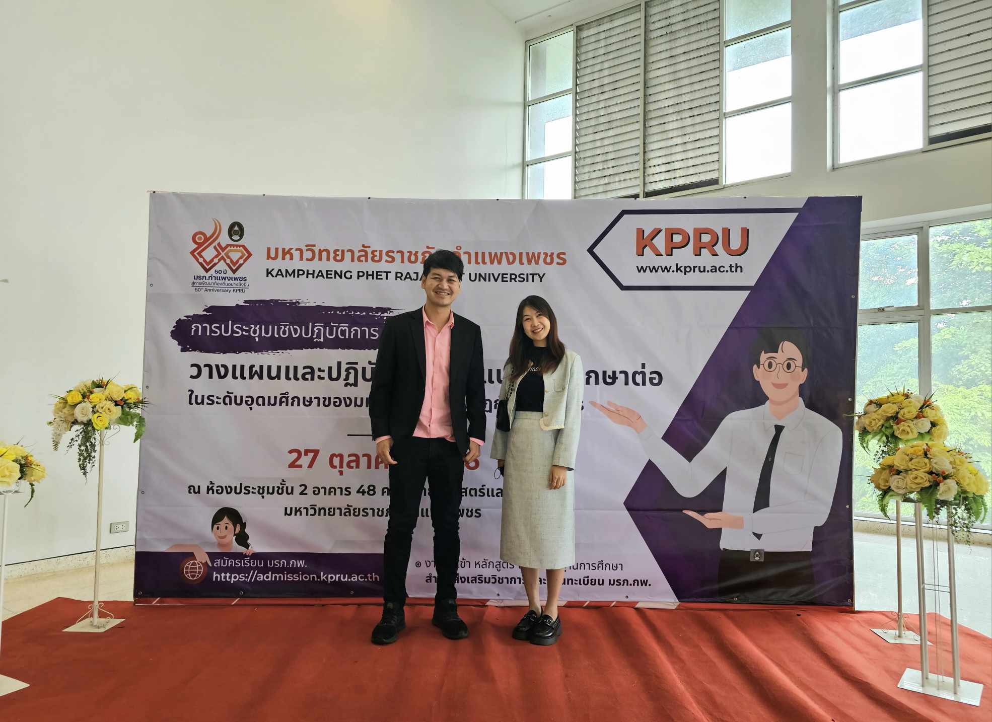 วันที่ 27 ตุลาคม 2566 เวลา 08.30 น.เป็นต้นไป ผู้ช่วยศาสตราจารย์จักรพันธ์ หวาจ้อย ผู้ช่วยคณบดีฝ่ายสื่อสารองค์กรและโครงการพิเศษ คณะวิทยาการจัดการ มหาวิทยาลัยราชภัฏกำแพงเพชร ได้เข้าร่วมประชุมเชิงปฏิบัติการ เรื่องการวางแผนและปฏิบัติการแนะแนวการศึกษาต่อในระดับอุดมศึกษาของมหาวิทยาลัยราชภัฏกำแพงเพชร ประจำปีการศึกษา 2567 เพื่อชี้แจงและทำความเข้าใจเกี่ยวกับหลักเกณฑ์ วิธีการรับสมัครสอบคัดเลือก และแนะนำหลักสูตรที่เปิดรับในปีการศึกษา 2567 ให้กับสถานศึกษาในจังหวัดกำแพงเพชร จังหวัดพิจิตร จังหวัดตาก และจังหวัดสุโขทัย ได้รับทราบข้อมูลและสามารถประชาสัมพันธ์หลักสูตรให้กับนักเรียนต่อไปได้ ณ ห้องประชุมชั้น 2 อาคารคณะวิทยาศาสตร์และเทคโนโลยี มหาวิทยาลัยราชภัฏกำแพงเพชร