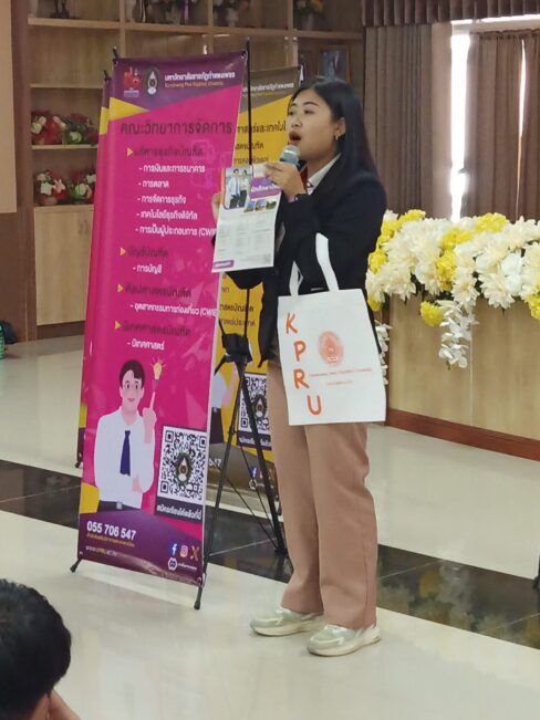วันที่ 30 พฤศจิกายน 2566 เวลา 14.30 น.เป็นต้นไป คณะวิทยาการจัดการ มหาวิทยาลัยราชภัฏกำแพงเพชร ได้เข้าร่วมกิจกรรมแนะแนวการศึกษา KPRU TO SCHOOL 2024 เพื่อประชาสัมพันธ์หลักสูตรของคณะวิทยาการจัดการ และประชาสัมพันธ์การรับสมัครเรียน ประจำปีการศึกษา 2567 ณ โรงเรียนคลองลานวิทยา ตำบลคลองน้ำไหล อำเภอคลองลาน จังหวัดกำแพงเพชร