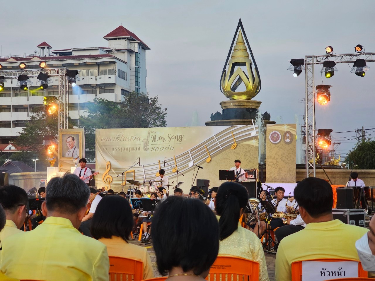 วันที่ 5 ธันวาคม 2566 เวลา 17.00 น.เป็นต้นไป ผู้บริหาร และบุคลากรคณะวิทยาการจัดการ มหาวิทยาลัยราชภัฏกำแพงเพชร ได้เข้าร่วมรับชมการแสดงดนตรีเทิดพระเกียรติ “ดนตรีในสวน : 𝗛.𝗠. 𝗦𝗼𝗻𝗴 อว.บรรเลงเพลงของพ่อ” และจุดเทียนน้อมรำลึกในพระมหากรุณาธิคุณ เพื่อน้อมรำลึกในพระมหากรุณาธิคุณและเทิดพระเกียรติ เนื่องในวันคล้ายวันพระบรมราชสมภพ พระบาทสมเด็จพระบรมชนกาธิเบศร มหาภูมิพลอดุลยเดชมหาราช บรมนาถบพิตร ณ ลานน้ำพุ สิริจิตอุทยาน จังหวัดกำแพงเพชร