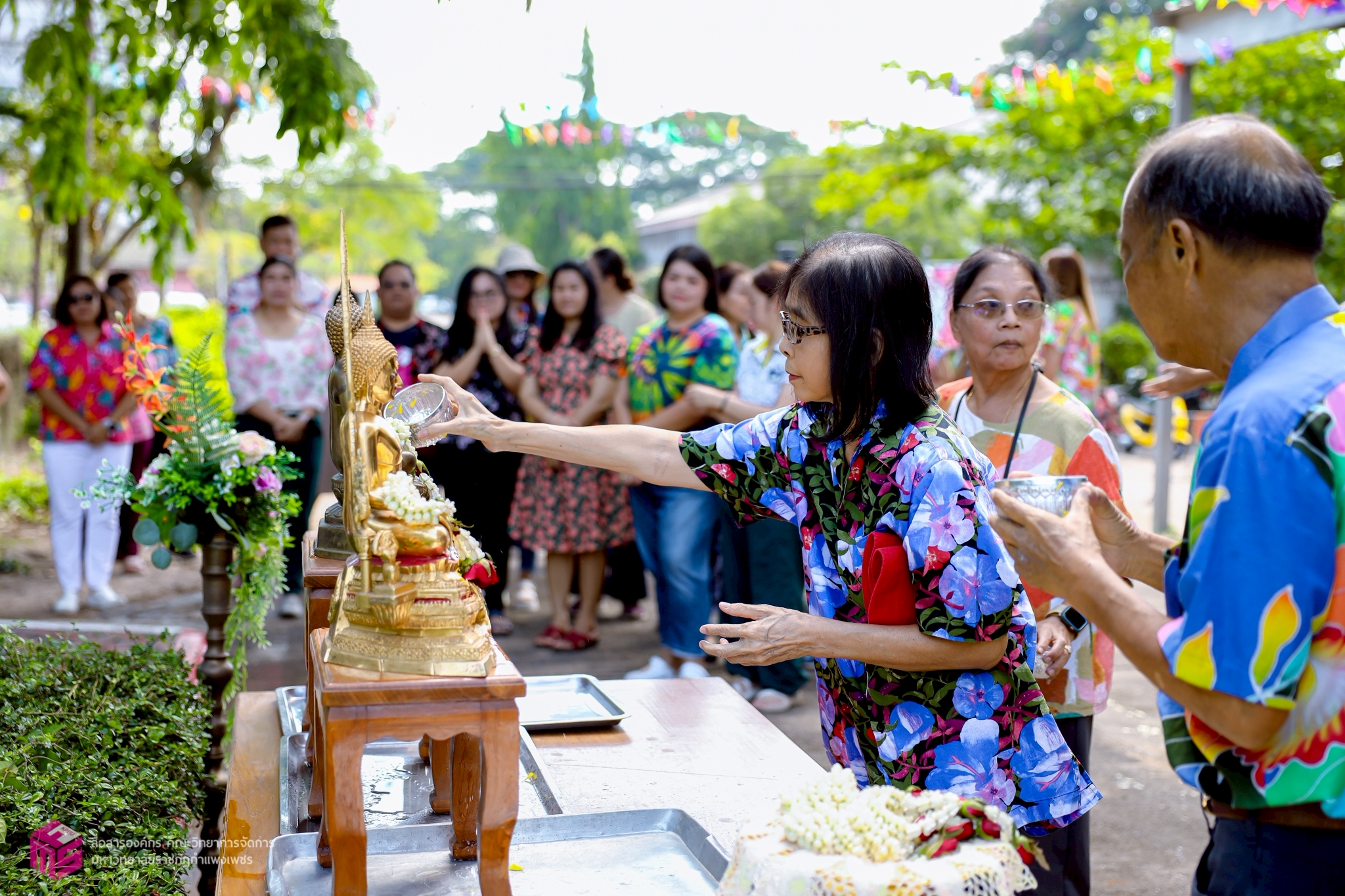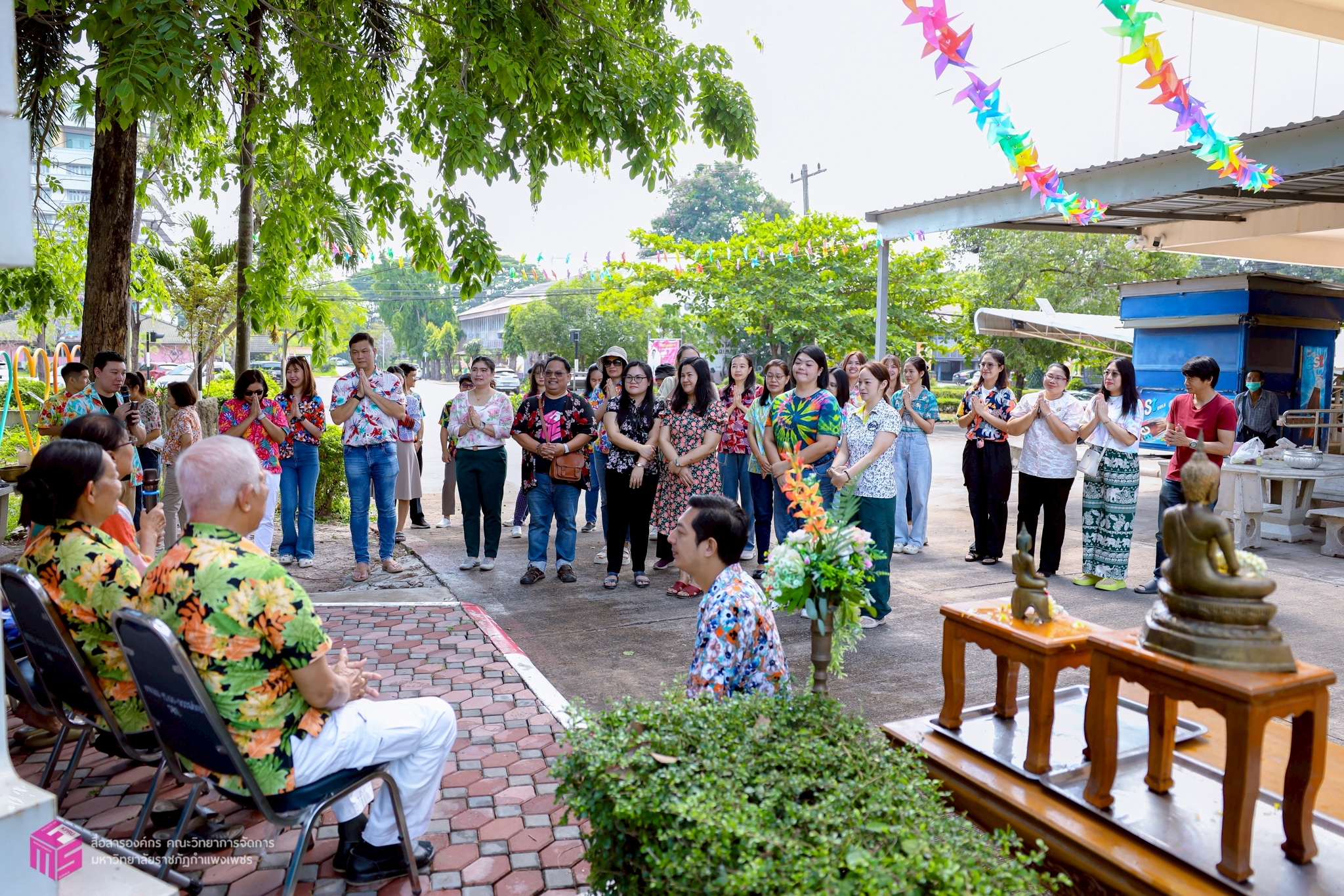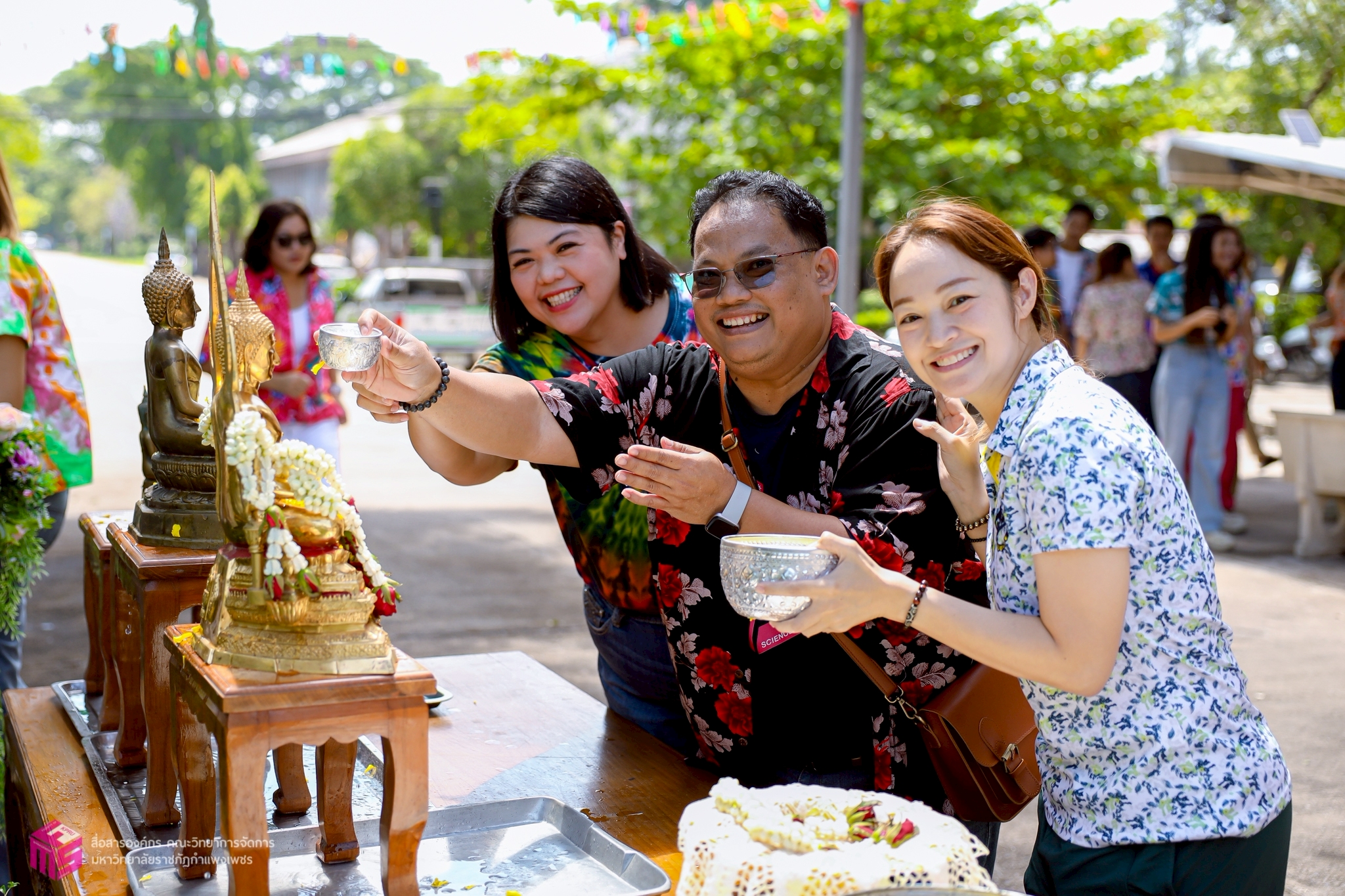 วันที่ 21 เมษายน 2568 เวลา 10.00 น.เป็นต้นไป คณะวิทยาการจัดการ มหาวิทยาลัยราชภัฏกำแพงเพชร ได้เข้าร่วมกิจกรรมรดน้ำดำหัวผู้เกษียณอายุราชการของคณะวิทยาการจัดการ ประจำปี 2568 เพื่อสืบสานประเพณีไทย เนื่องในวันสงกรานต์ หรือวันขึ้นปีใหม่ของไทย อีกทั้งยังเป็นการขอพรเพื่อความเป็นสิริมงคลแก่ตนเอง ณ บริเวณหน้าอาคารคณะวิทยาการจัดการ มหาวิทยาลัยราชภัฏกำแพงเพชร