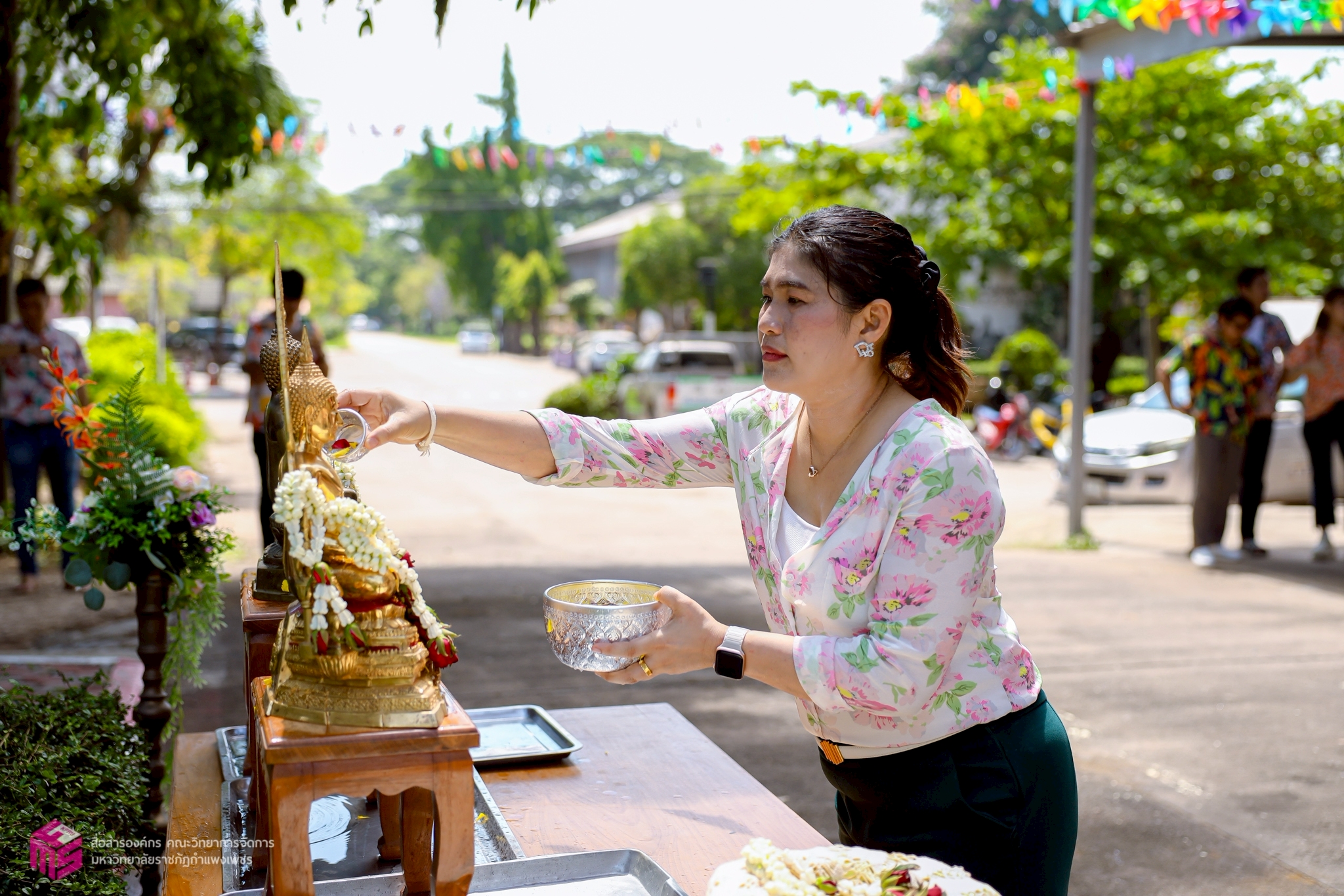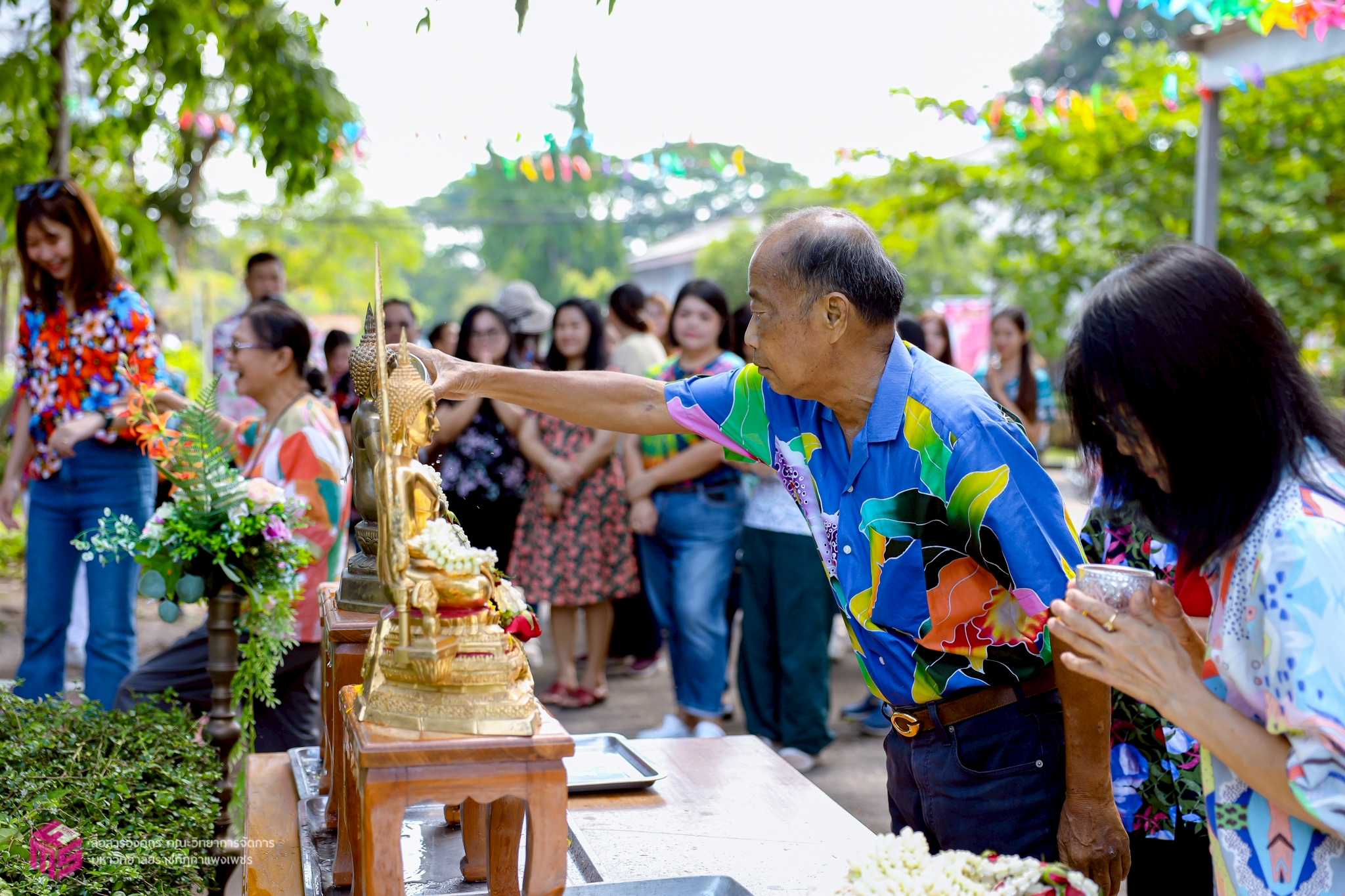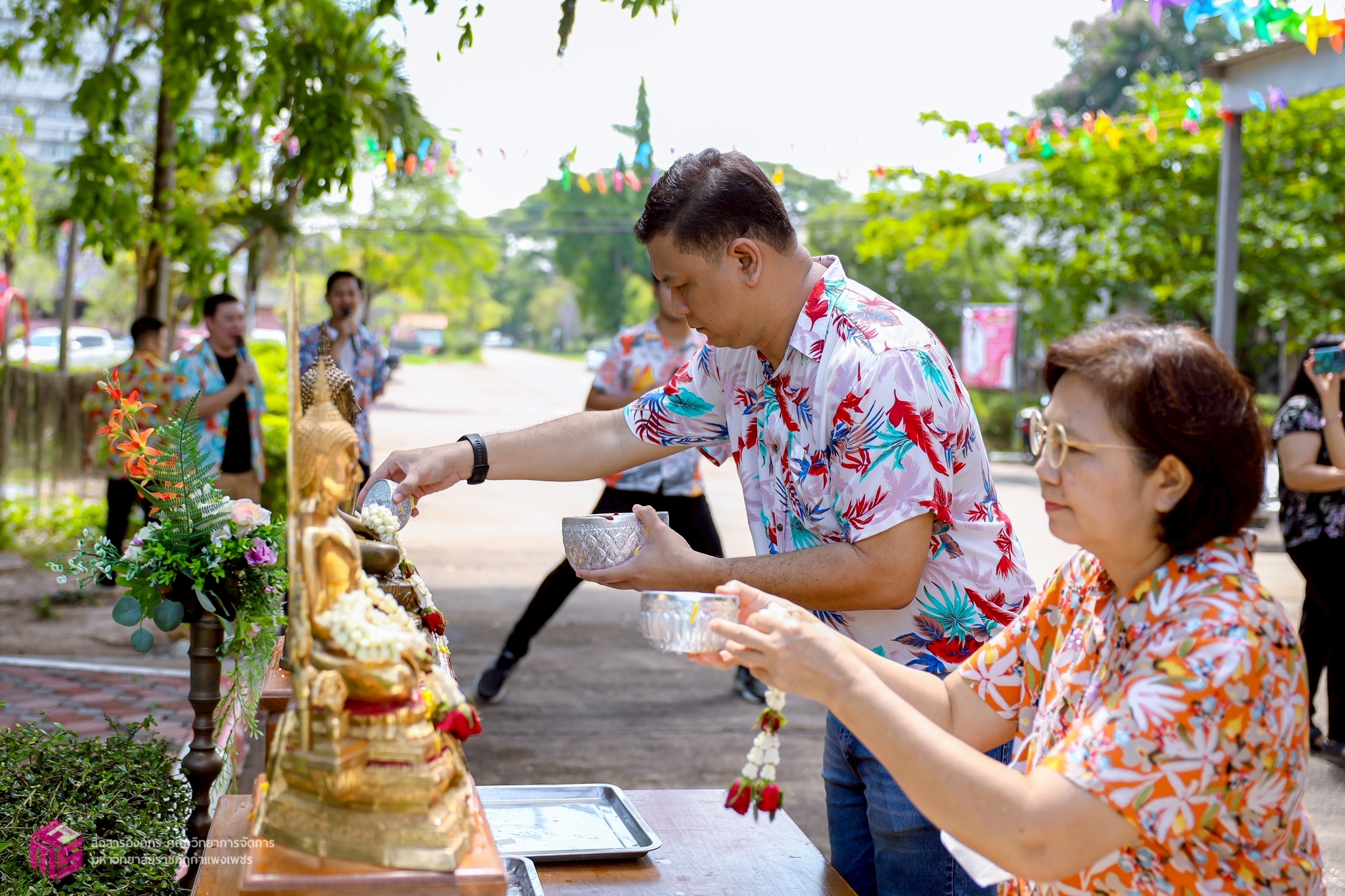 วันที่ 21 เมษายน 2568 เวลา 10.00 น.เป็นต้นไป คณะวิทยาการจัดการ มหาวิทยาลัยราชภัฏกำแพงเพชร ได้เข้าร่วมกิจกรรมรดน้ำดำหัวผู้เกษียณอายุราชการของคณะวิทยาการจัดการ ประจำปี 2568 เพื่อสืบสานประเพณีไทย เนื่องในวันสงกรานต์ หรือวันขึ้นปีใหม่ของไทย อีกทั้งยังเป็นการขอพรเพื่อความเป็นสิริมงคลแก่ตนเอง ณ บริเวณหน้าอาคารคณะวิทยาการจัดการ มหาวิทยาลัยราชภัฏกำแพงเพชร