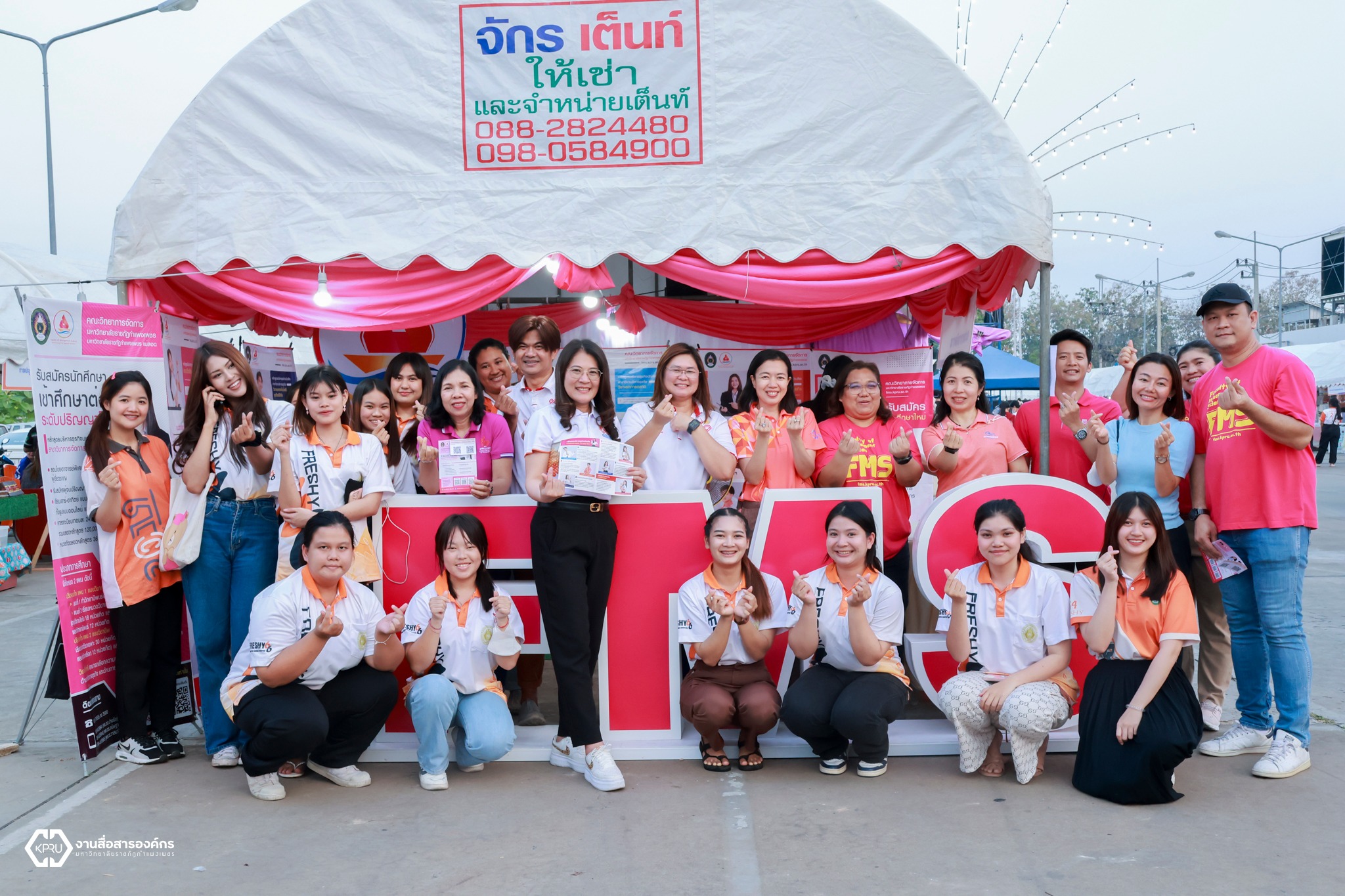 วันที่ 12-13 มกราคม 2567 เวลา 15.00 น.เป็นต้นไป คณะวิทยาการจัดการ มหาวิทยาลัยราชภัฏกำแพงเพชร ได้ดำเนินการจัดงาน FMS FAIR 2024 ชวนชิม & ชิลช็อป ภายใต้งาน KPRU-พลิกโฉมมหาวิทยาลัย สู่การพัฒนาท้องถิ่นอย่างยั่งยืน ซึ่งภายในงานประกอบด้วย การแสดง การประกวด บูธรับสมัครเรียน นิทรรศการแสดงผลงาน และจำหน่ายสินค้าจากงานวิจัย นวัตกรรม และบริการวิชาการ และอาหารมากมาย ณ ห้างสรรพสินค้า BIG C กำแพงเพชร