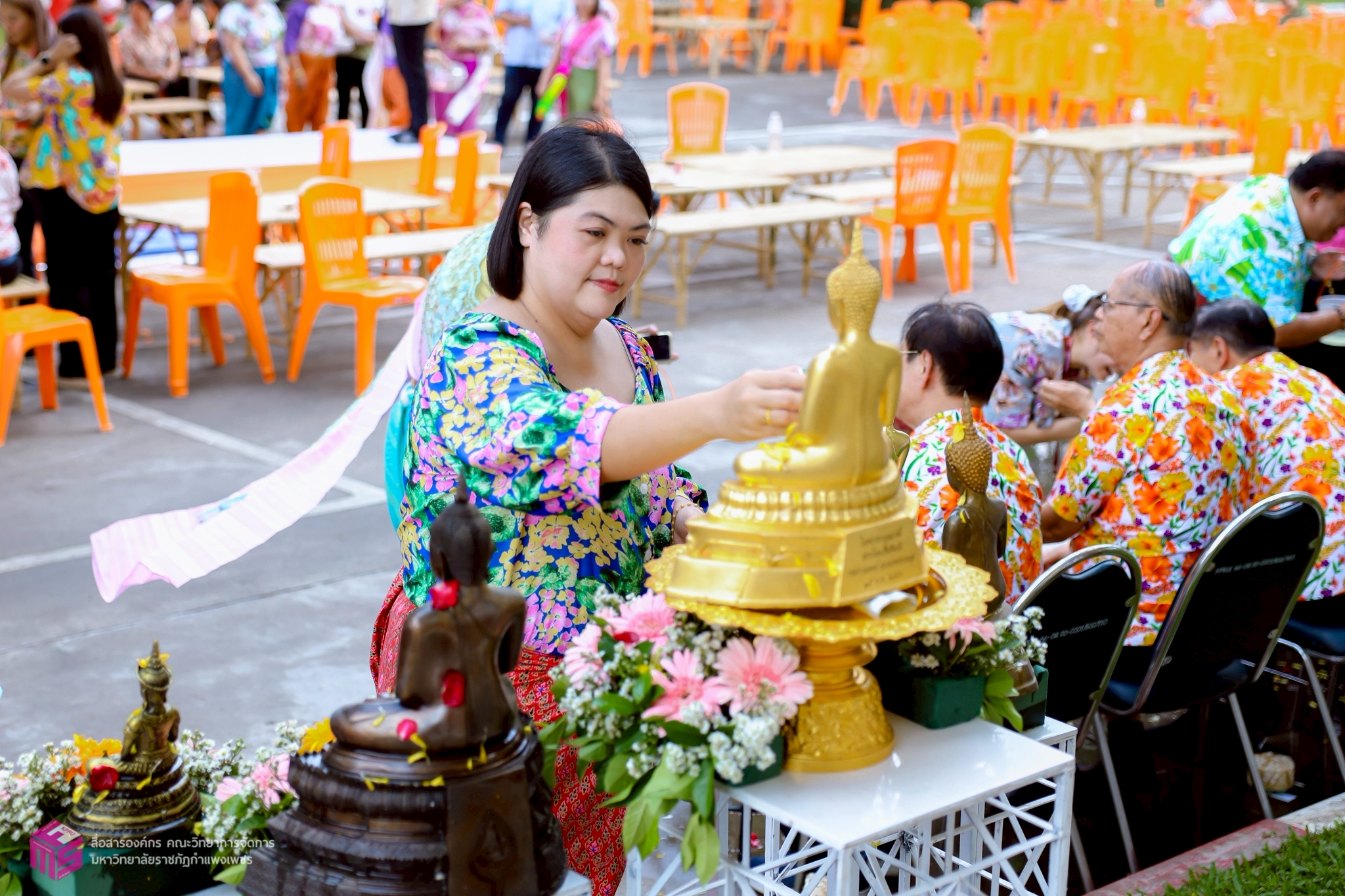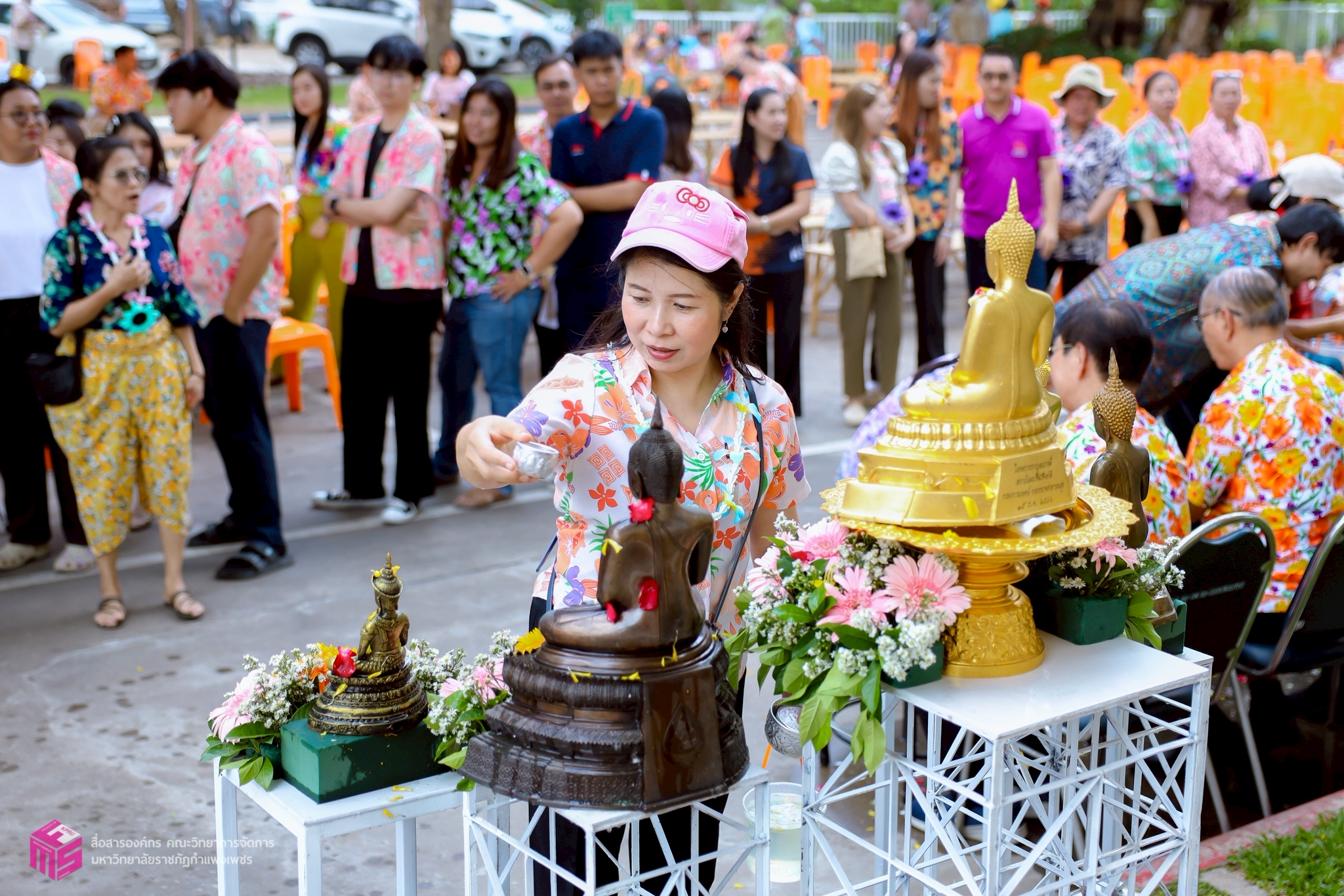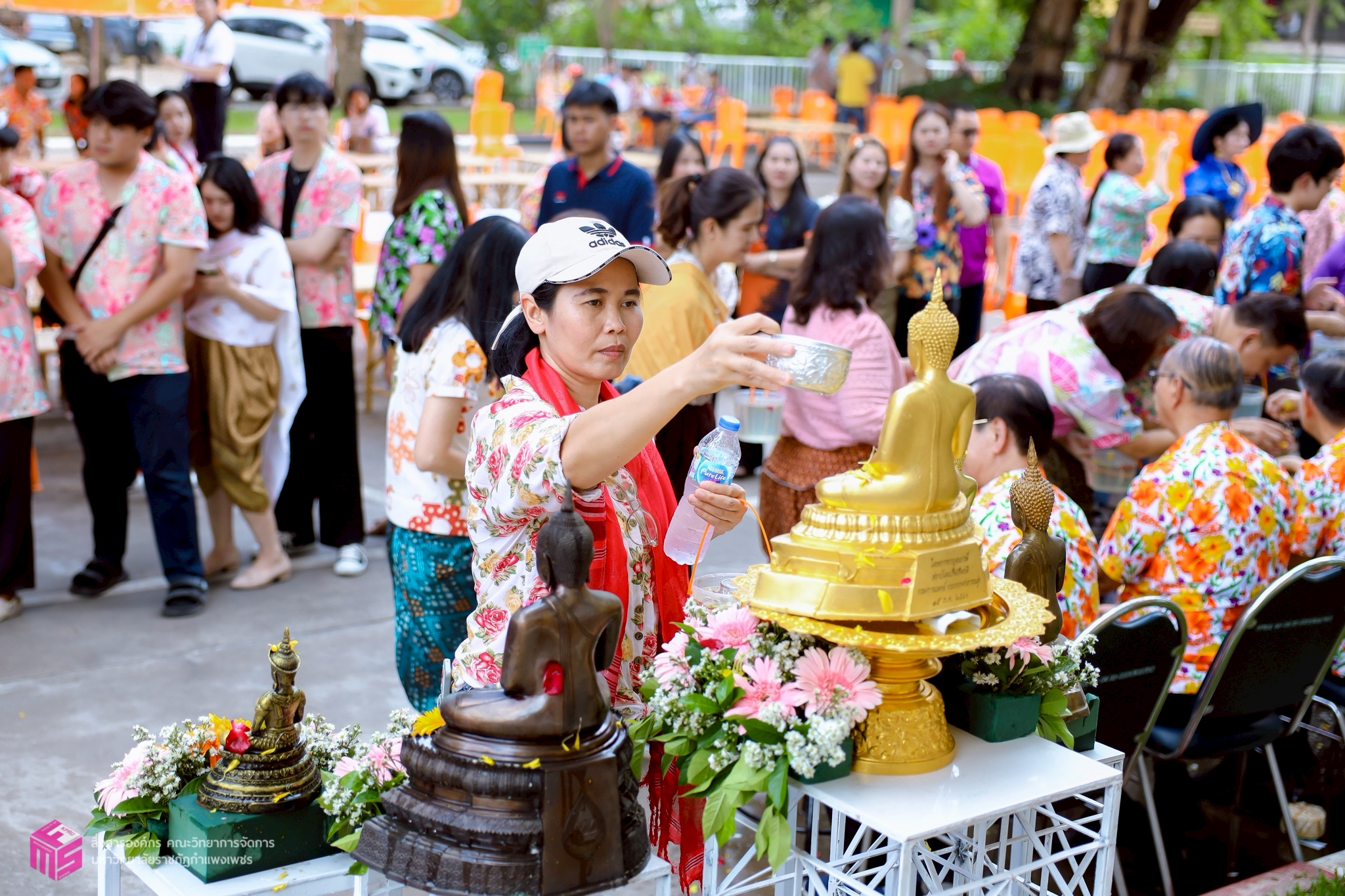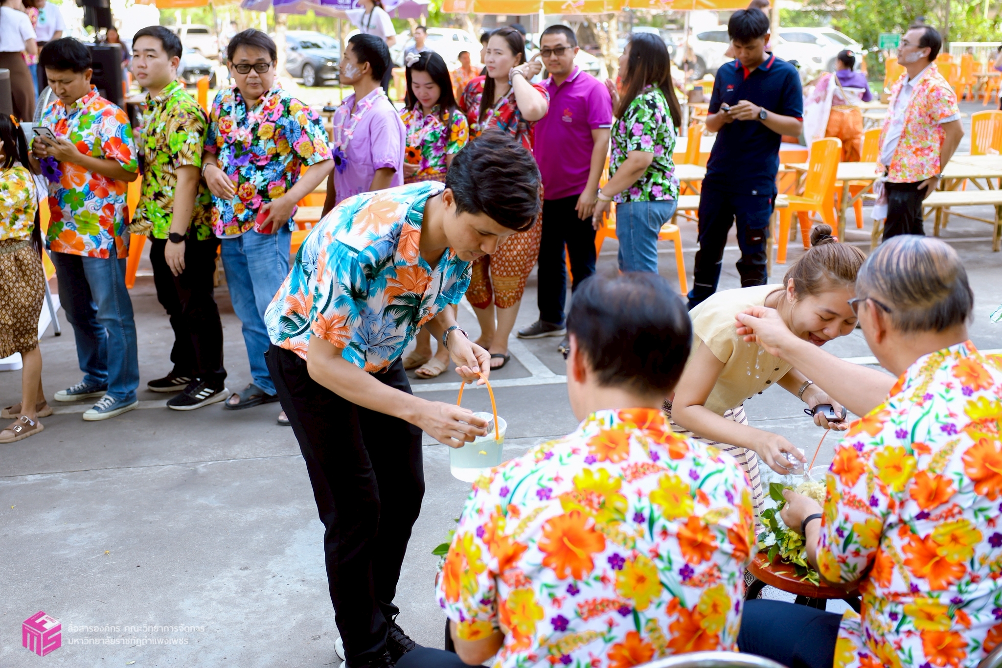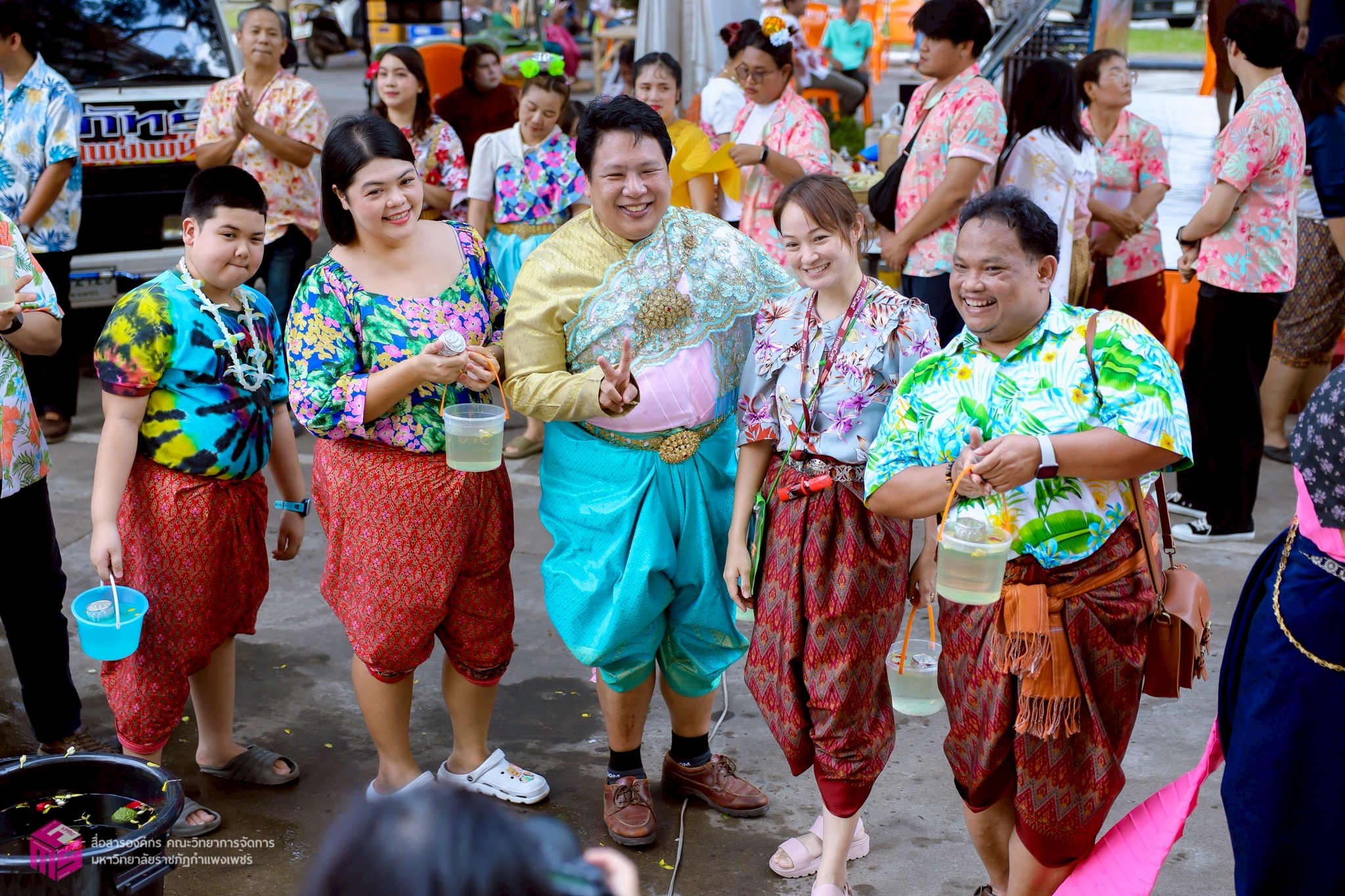 วันที่ 30 เมษายน 2568 เวลา 09.00 น.เป็นต้นไป ผู้บริหาร คณาจารย์ และบุคลากรคณะวิทยาการจัดการ มหาวิทยาลัยราชภัฏกำแพงเพชร ได้เข้าร่วมกิจกรรมสงกรานต์ “KPRU สวมผ้าไทย ห่มสไบ ใส่โจงสงกรานต์ สืบสานประเพณี” เพื่อสืบสานประเพณีไทย เนื่องในวันสงกรานต์ หรือวันขึ้นปีใหม่ของไทย อีกทั้งยังเป็นการขอพรเพื่อความเป็นสิริมงคลแก่ตนเอง ณ อาคารเรียนรวมและอำนวยการ (อาคาร 14) มหาวิทยาลัยราชภัฏกำแพงเพชร