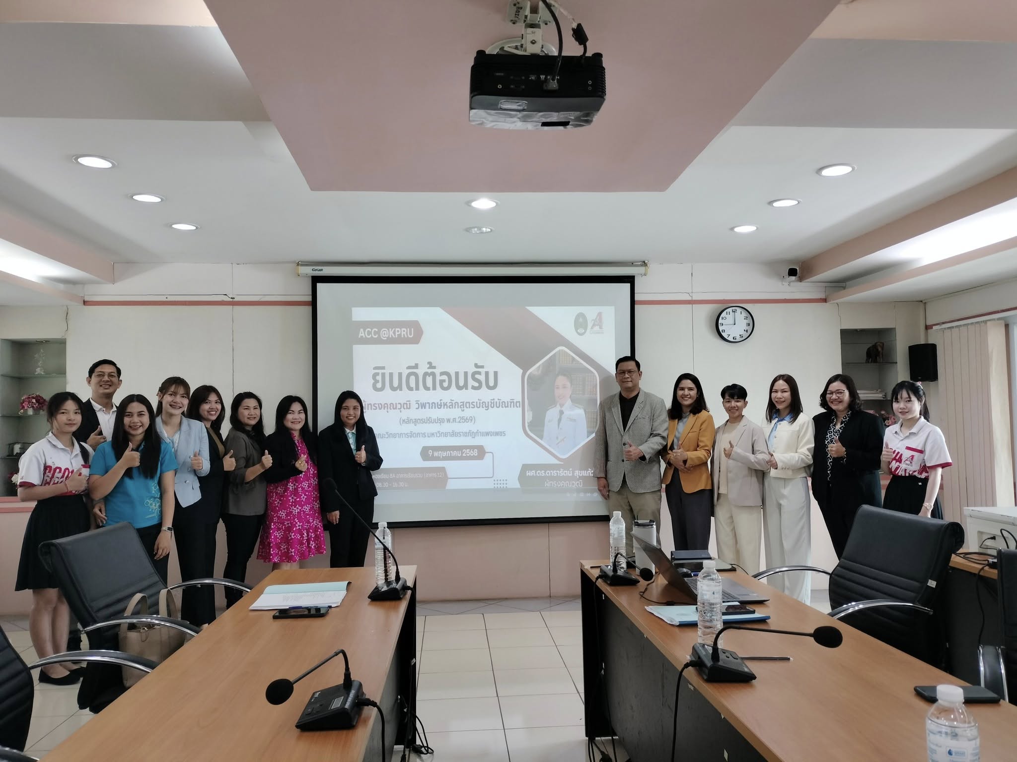 วันที่ 9 พฤษภาคม 2568 เวลา 08.30 น.เป็นต้นไป หลักสูตรบัญชีบัณฑิต สาขาวิชาการบัญชี คณะวิทยาการจัดการ มหาวิทยาลัยราชภัฏกำแพงเพชร ได้จัดกิจกรรมการอภิปรายเป็นคณะเพื่อวิพากษ์หลักสูตรบัญชีบัณฑิต สาขาวิชาการบัญชี ซึ่งได้รับเกียรติจากผู้ช่วยศาสตราจารย์ ดร.ดารารัตน์ สุขแก้ว เป็นผู้ทรงคุณวุฒิในการวิพากษ์หลักสูตรในครั้งนี้ เพื่อให้หลักสูตรมีความทันสมัยตอบสนองต่อการพัฒนาท้องถิ่นและสอดคล้องกับแนวทางการพัฒนาประเทศ และสถานการณ์ การเปลี่ยนแปลงในปัจจุบัน ณ ห้องเรียนบัณฑิตศึกษา 8A ชั้น 8 อาคารเรียนรวม อาคาร 12 มหาวิทยาลัยราชภัฏกำแพงเพชร