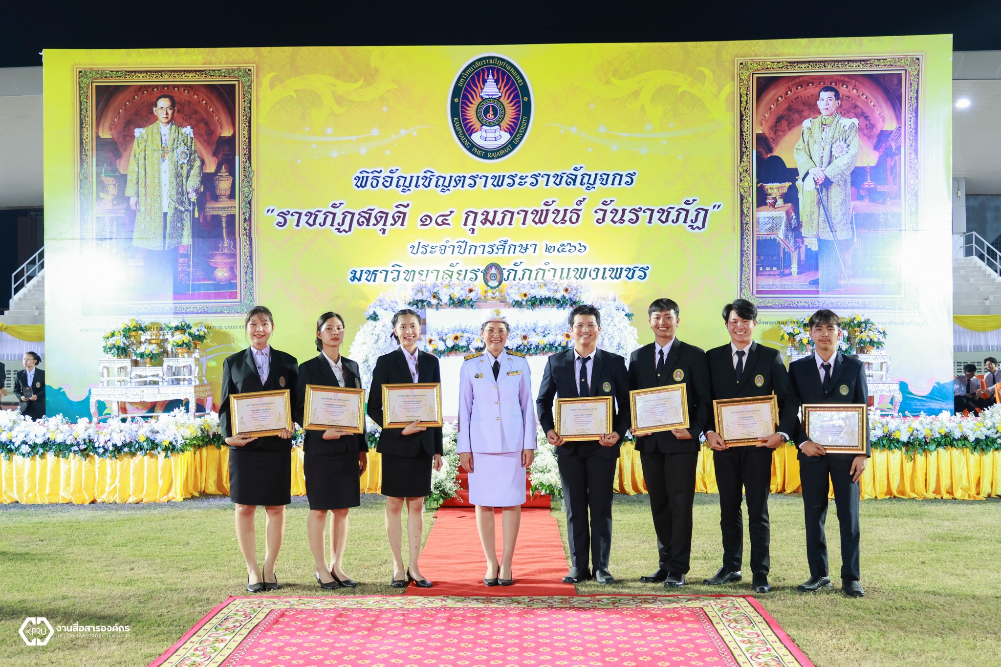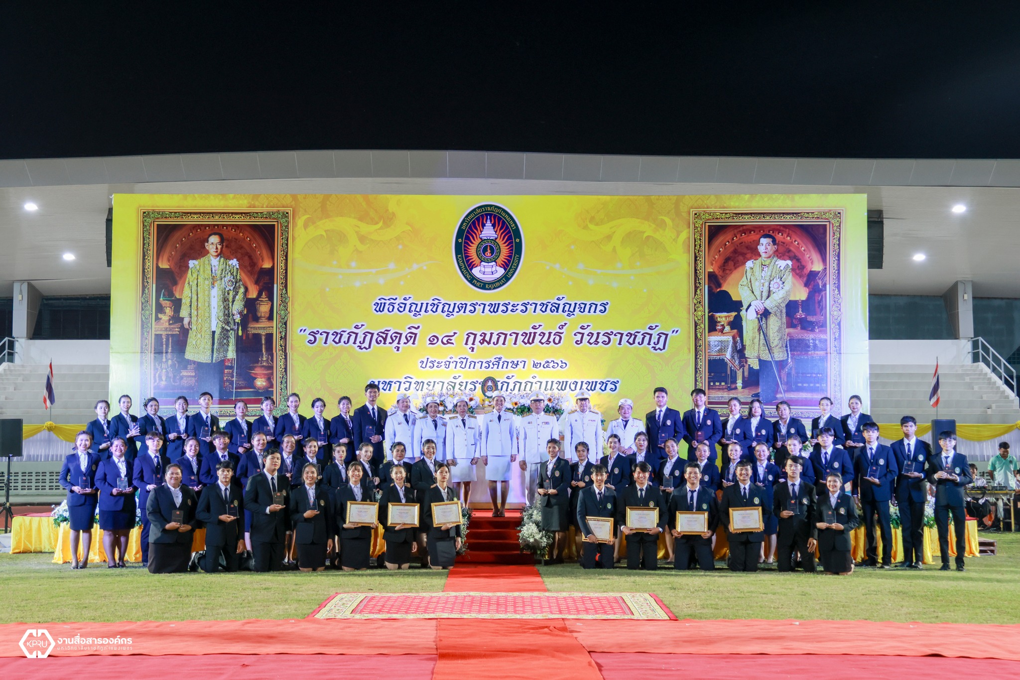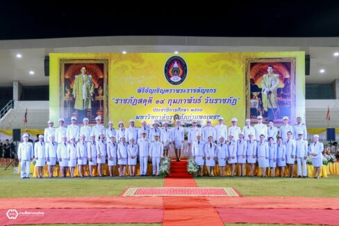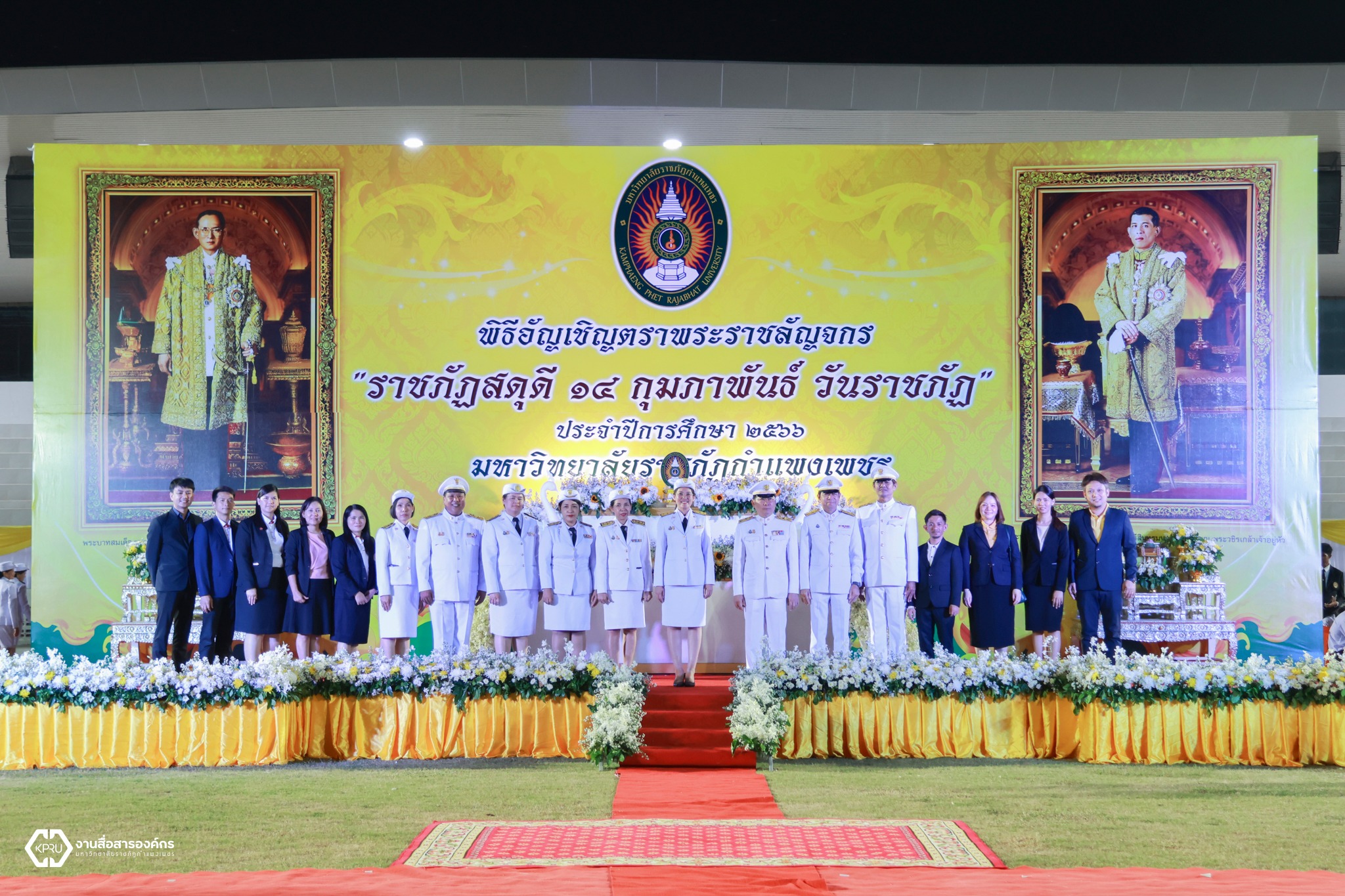 วันที่ 14 กุมภาพันธ์ 2567 ผู้บริหาร คณาจารย์ บุคลากร และนักศึกษา คณะวิทยาการจัดการ มหาวิทยาลัยราชภัฏกำแพงเพชร ได้เข้าร่วมพิธีอัญเชิญตราพระราชลัญจกร พิธีรำลึกวันราชภัฏ ประจำปี 2567 ซึ่งในพิธีประกอบด้วย พิธีถวายบังคมเบื้องหน้าพระบรมฉายาลักษณ์พระบาทสมเด็จพระบรมชนกาธิเบศร มหาภูมิพลอดุลยเดชมหาราช บรมนาถบพิตร และพระบาทสมเด็จพระปรเมนทรรามาธิบดีศรีสินทรมหาวชิราลงกรณ พระวชิรเกล้าเจ้าอยู่หัว และพิธีมอบรางวัลเชิดชูเกียรติผู้นำนักศึกษา ประจำปีการศึกษา 2566 ณ สนามกีฬามหาวิทยาลัยราชภัฏกำแพงเพชร