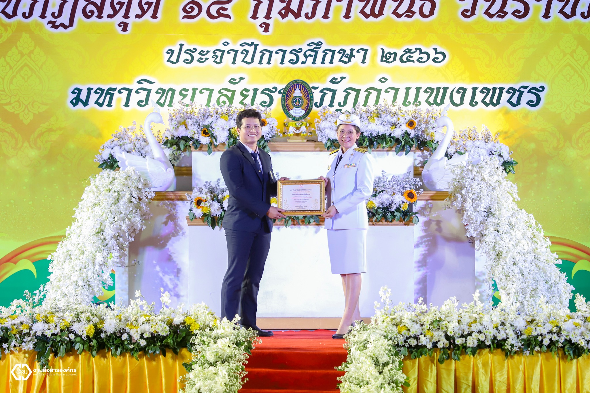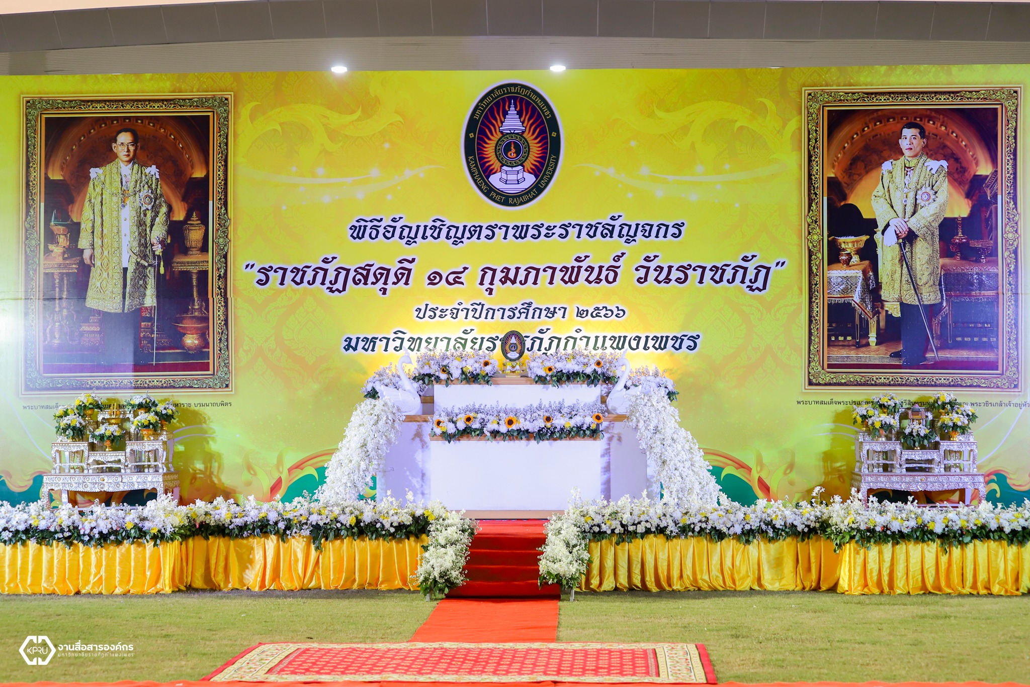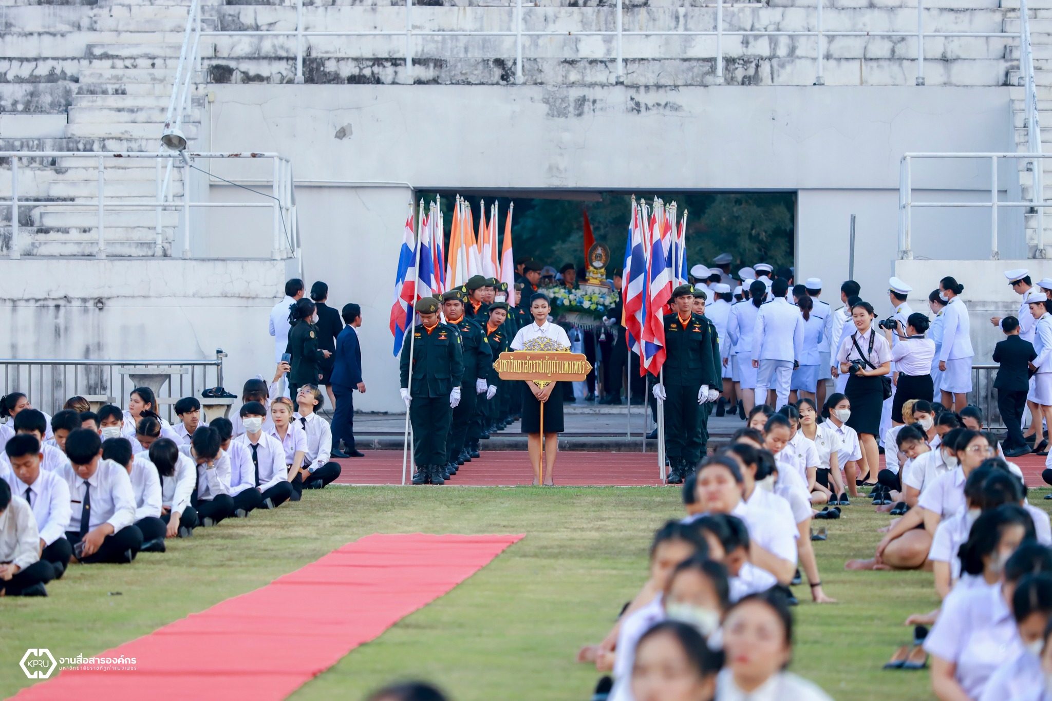 วันที่ 14 กุมภาพันธ์ 2567 ผู้บริหาร คณาจารย์ บุคลากร และนักศึกษา คณะวิทยาการจัดการ มหาวิทยาลัยราชภัฏกำแพงเพชร ได้เข้าร่วมพิธีอัญเชิญตราพระราชลัญจกร พิธีรำลึกวันราชภัฏ ประจำปี 2567 ซึ่งในพิธีประกอบด้วย พิธีถวายบังคมเบื้องหน้าพระบรมฉายาลักษณ์พระบาทสมเด็จพระบรมชนกาธิเบศร มหาภูมิพลอดุลยเดชมหาราช บรมนาถบพิตร และพระบาทสมเด็จพระปรเมนทรรามาธิบดีศรีสินทรมหาวชิราลงกรณ พระวชิรเกล้าเจ้าอยู่หัว และพิธีมอบรางวัลเชิดชูเกียรติผู้นำนักศึกษา ประจำปีการศึกษา 2566 ณ สนามกีฬามหาวิทยาลัยราชภัฏกำแพงเพชร