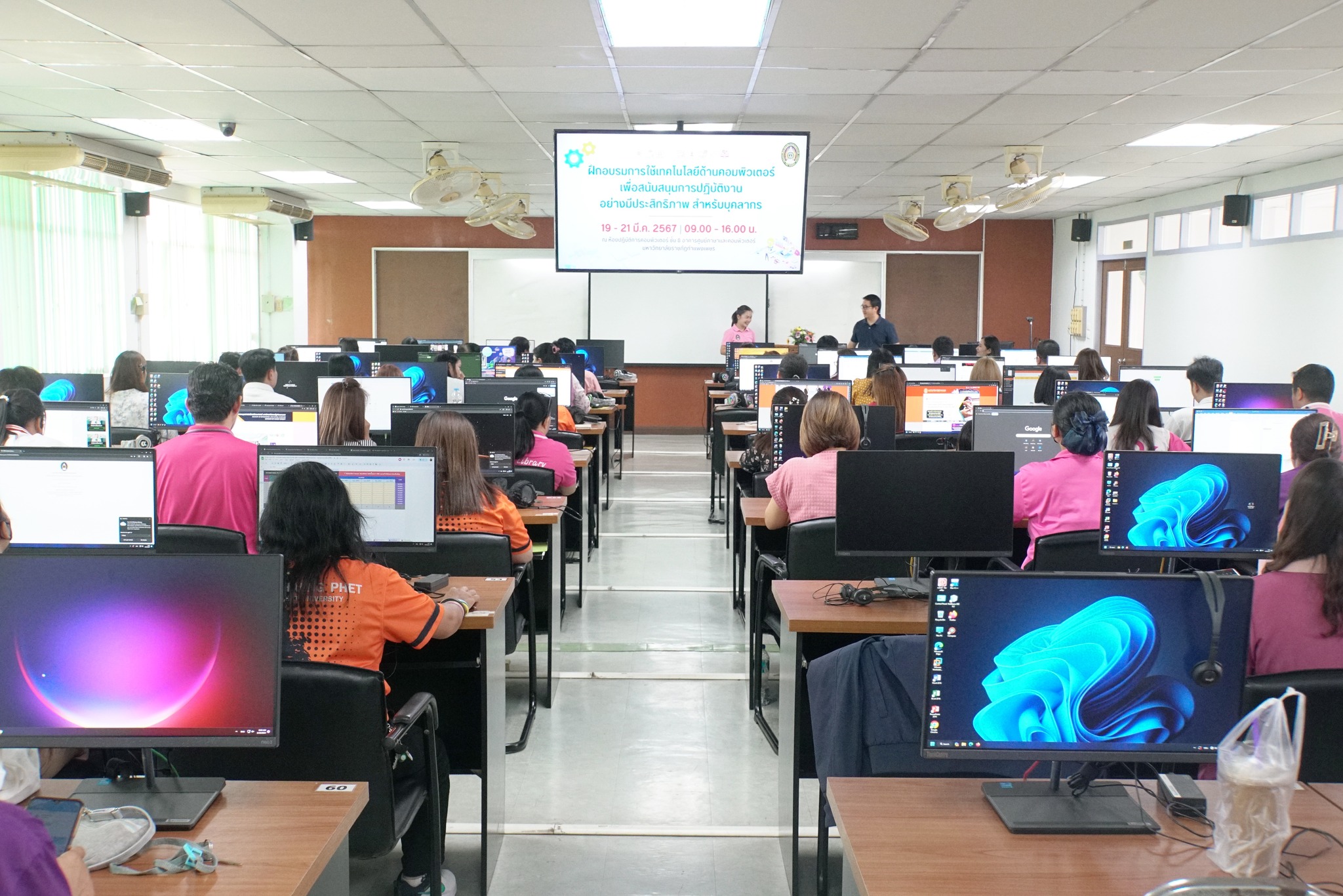 วันทที่ 19-21 มีนาคม 2567 เวลา 09.00 น.เป็นต้นไป บุคลากรคณะวิทยาการจัดการ มหาวิทยาลัยราชภัฏกำแพงเพชร ได้เข้าร่วมอบรมการใช้เทคโนโลยีด้านคอมพิวเตอร์เพื่อสนับสนุนการปฏิบัติงานอย่างมีคุณภาพ สำหรับบุคลากร ภายใต้โครงการพัฒนาสมรรถนะบุคลากรเพื่อการพลิกโฉมมหาวิทยาลัยสายสนับสนุน (Reskill Upskill Newskill) โดยมีนายวันเฉลิม พูนใจสม นักวิชาการคอมพิวเตอร์ ชำนาญการ เป็นวิทยากร ณ ห้องปฏิบัติการคอมพิวเตอร์ ชั้น 8 อาคารศูนย์ภาษา มหาวิทยาลัยราชภัฏกำแพงเพชร