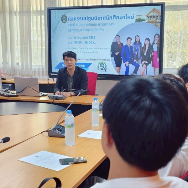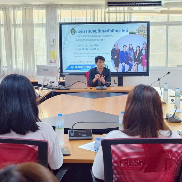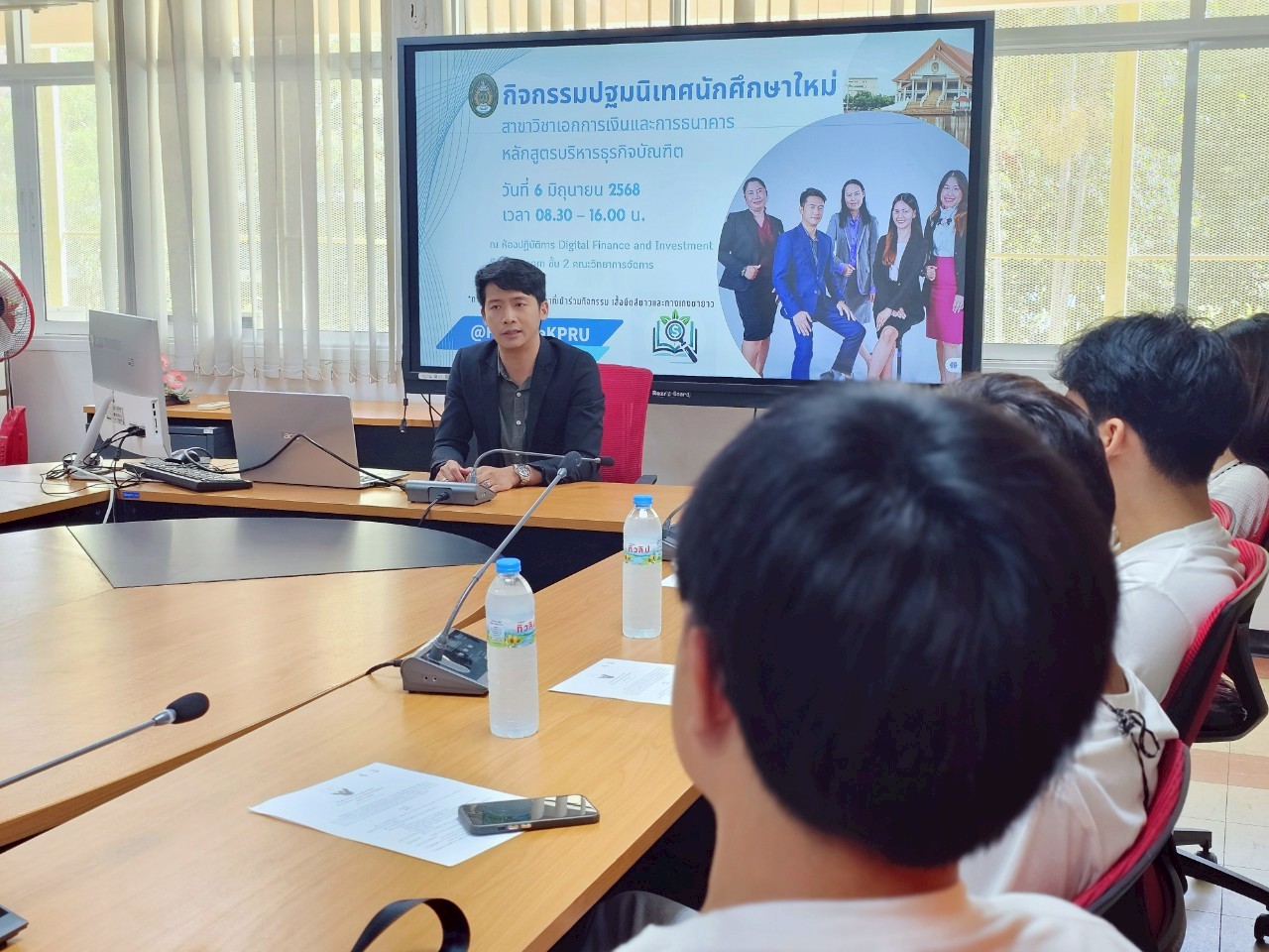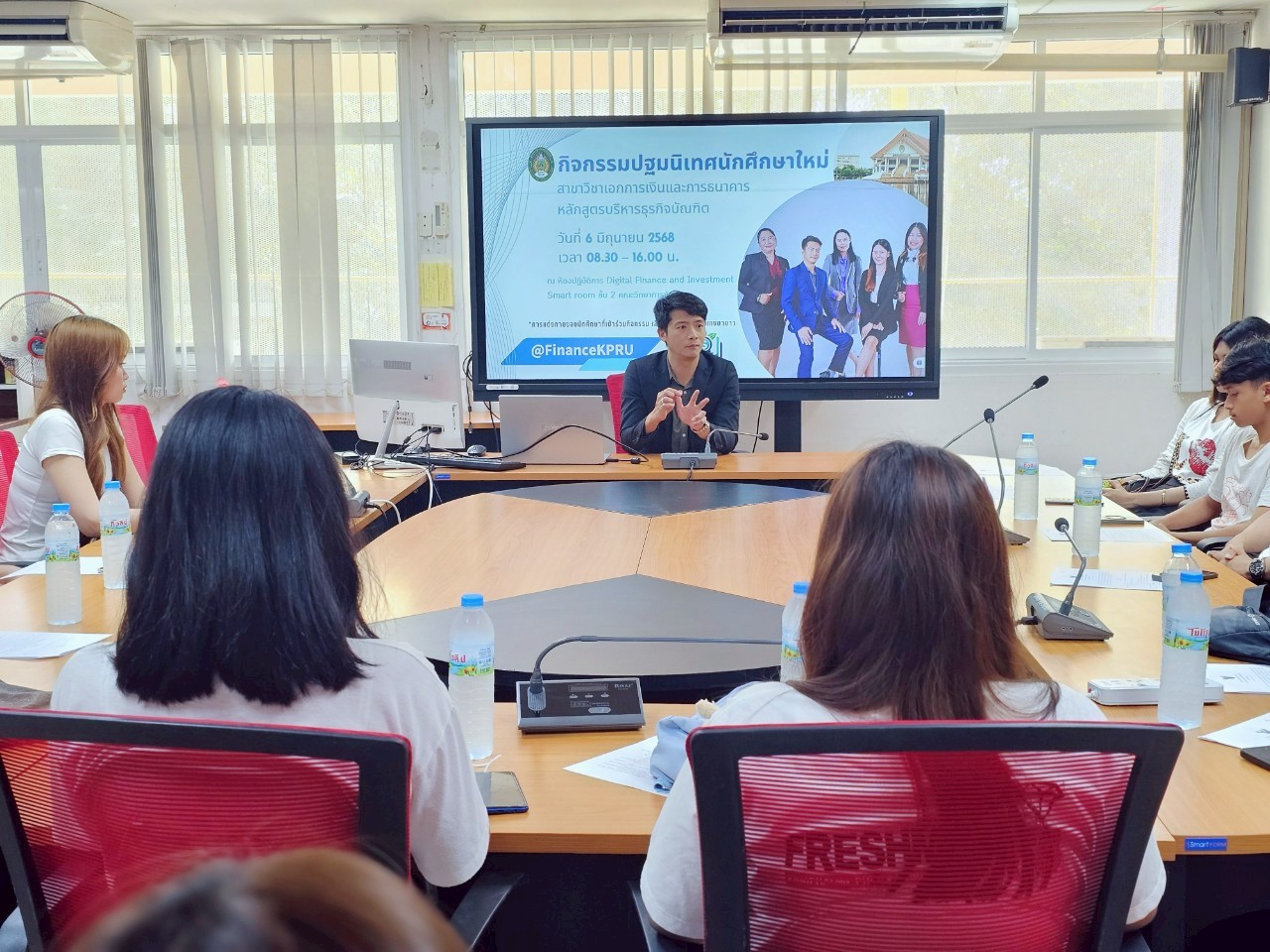 วันที่ 6 มิถุนายน 2568 เวลา 08.30 น.เป็นต้นไป วิชาเอกการเงินและการธนาคาร คณะวิทยาการจัดการ มหาวิทยาลัยราชภัฏกำแพงเพชร ได้จัดกิจกรรมปฐมนิเทศนักศึกษาใหม่ ปีการศึกษา 2568 ให้กับนักศึกษา ชั้นปีที่ 1 วิชาเอกการเงินและการธนาคาร เพื่อเตรียมความพร้อม และต้อนรับนักศึกษาใหม่ ณ ห้องปฏิบัติการ Digital Finance and Investment Smart room ชั้น 2 คณะวิทยาการจัดการ มหาวิทยาลัยราชภัฏกำแพงเพชร