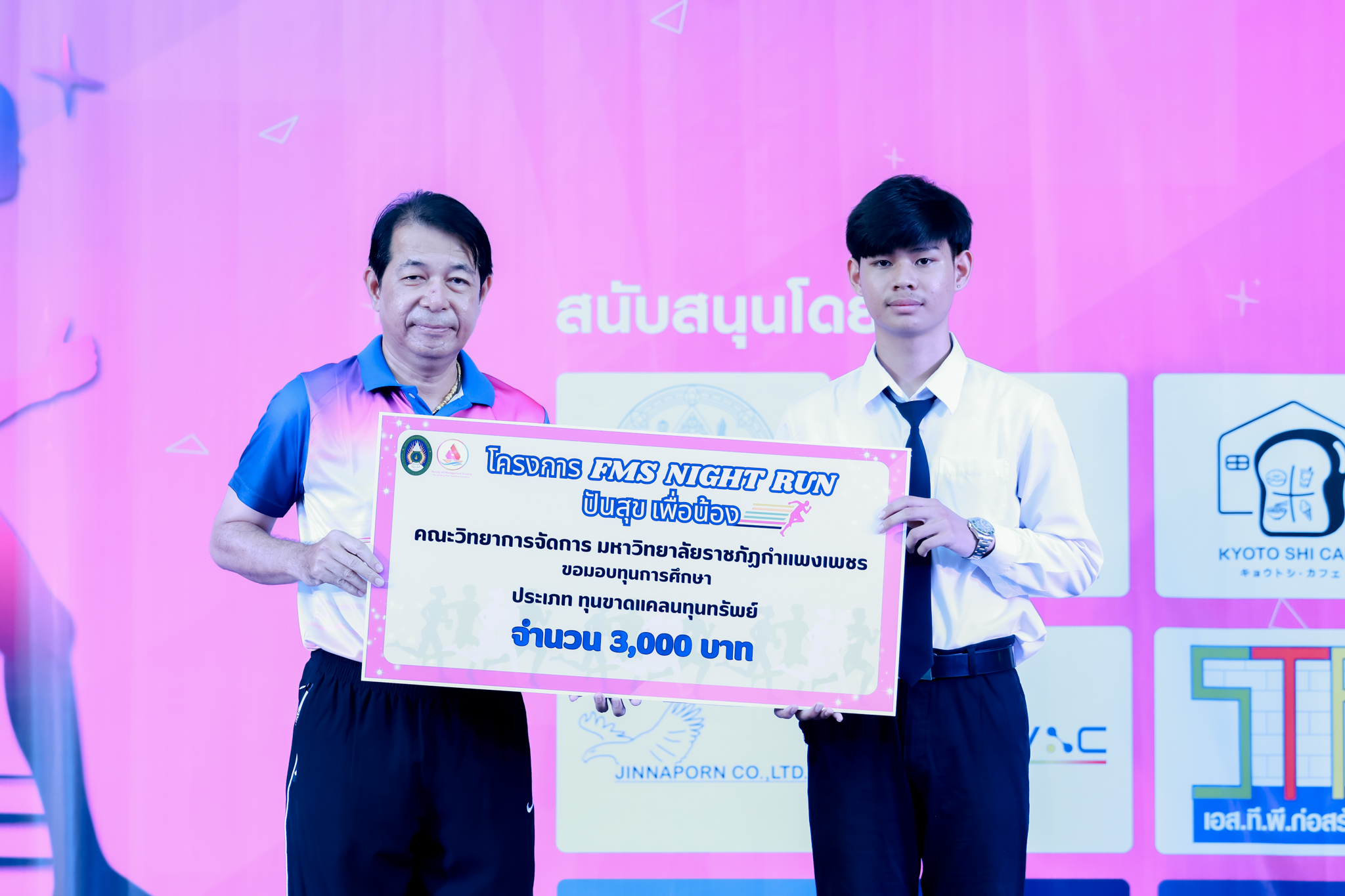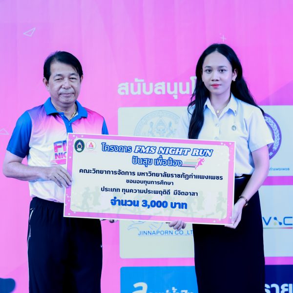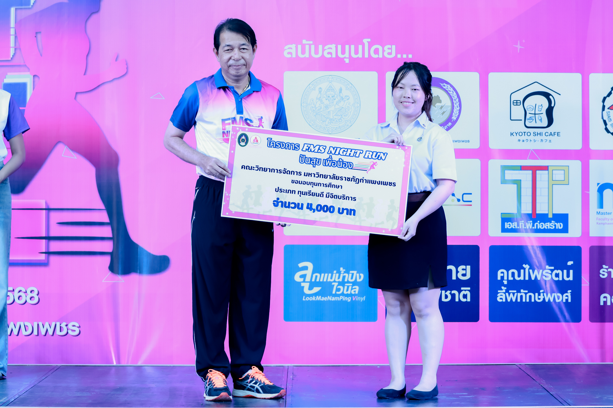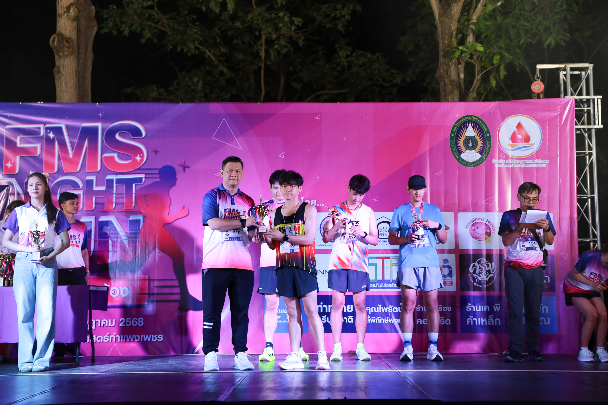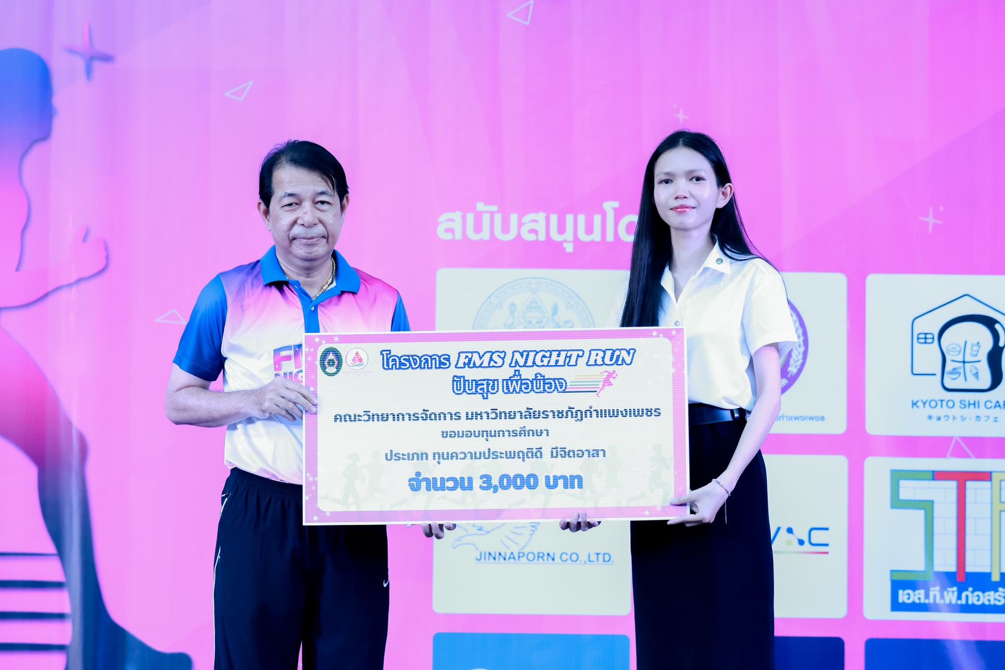 วันที่ 12 กรกฎาคม 2568 คณะวิทยาการจัดการ มหาวิทยาลัยราชภัฏกำแพงเพชร ได้จัดกิจกรรม “𝗙𝗠𝗦 𝗡𝗶𝗴𝗵𝘁 𝗥𝘂𝗻 ปันสุข เพื่อน้อง” โดยเป็นจัดการแข่งขันวิ่ง Fun Run ระยะทาง 5 กิโลเมตร ซึ่งกิจกรรมในครั้งนี้มีวัตถุประสงค์เพื่อให้นักศึกษา อาจารย์ บุคลากร ศิษย์เก่า และประชาชนทั่วไป ออกกำลังกายและมีสุขภาพแข็งแรงมากยิ่งขึ้น และเพื่อสนับสนุนและสร้างโอกาสทางการศึกษาหลังจากหักค่าใช้จ่ายโดยจัดสรรเป็นทุนการศึกษาของนักศึกษาคณะวิทยาการจัดการที่เรียนดี มีความประพฤติดีแต่ขาดทุนทรัพย์ ณ อุทยานประวัติศาสตร์กำแพงเพชร จังหวัดกำแพงเพชร