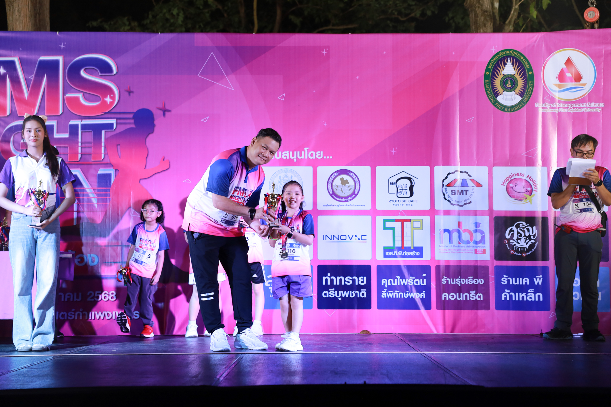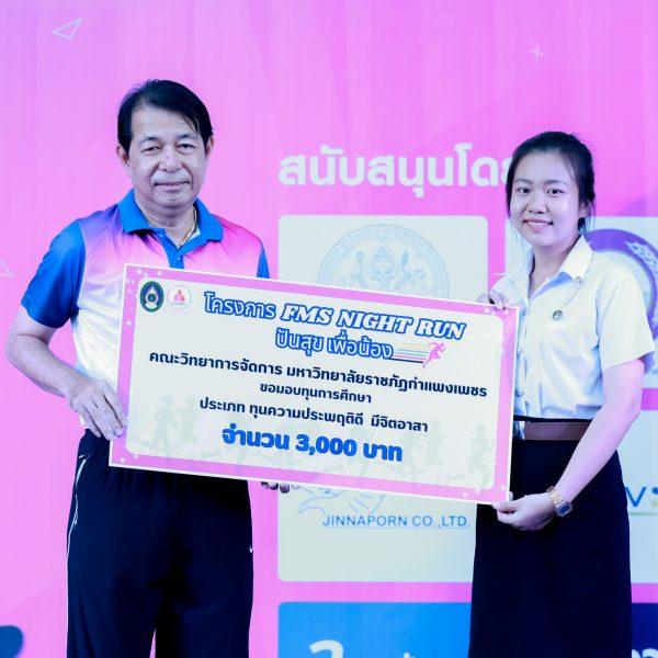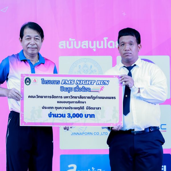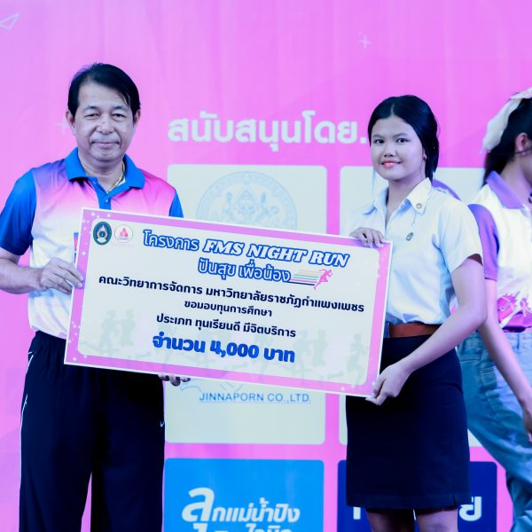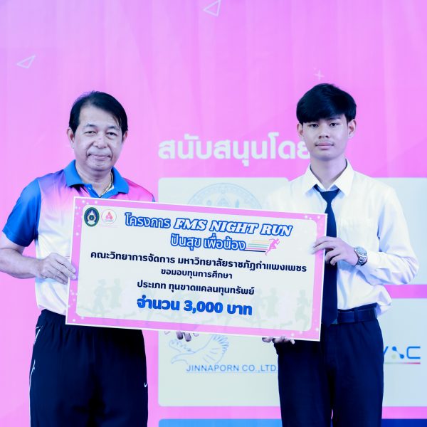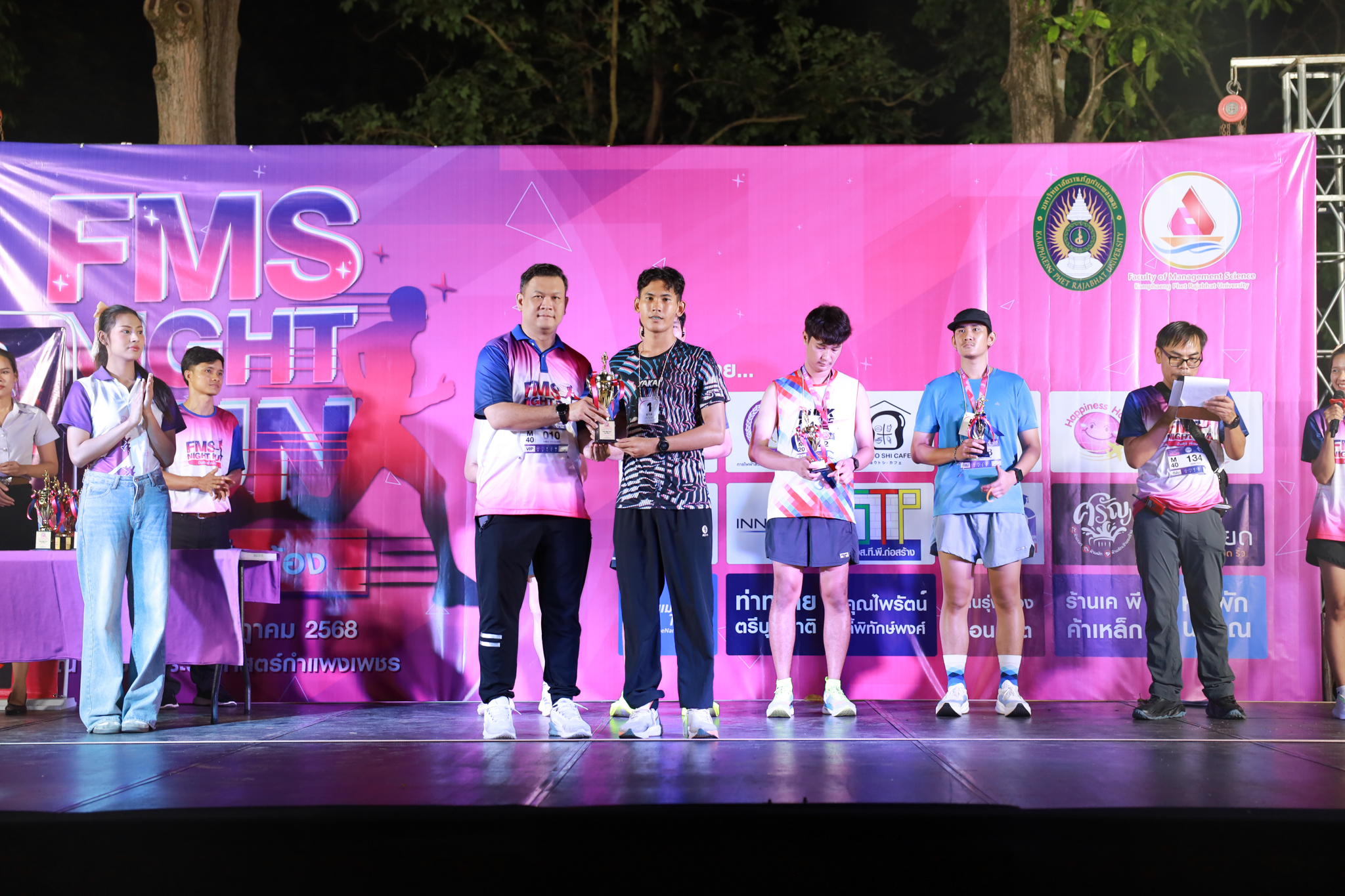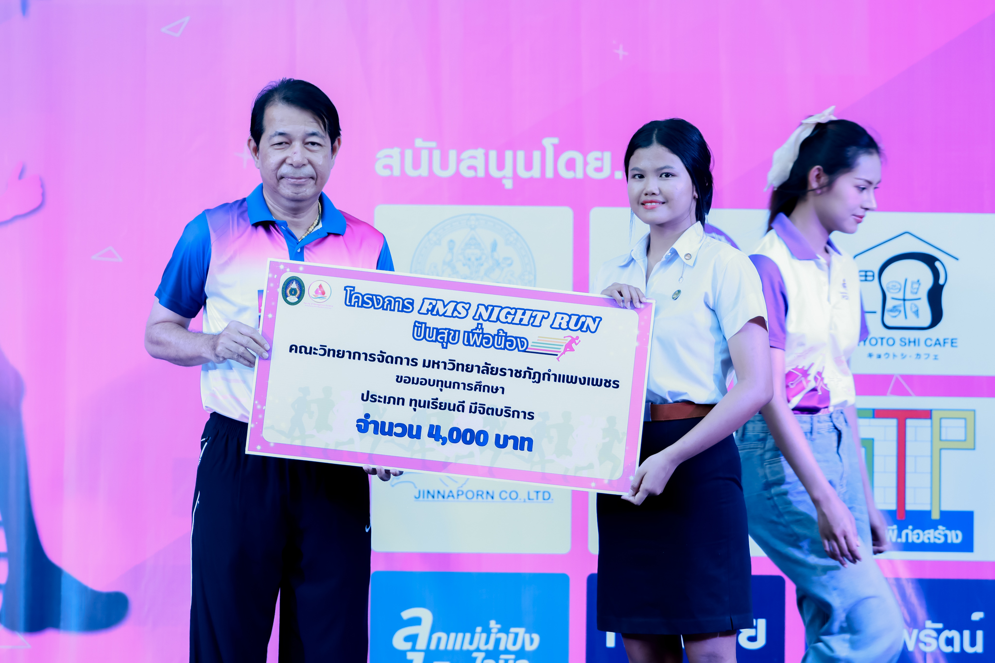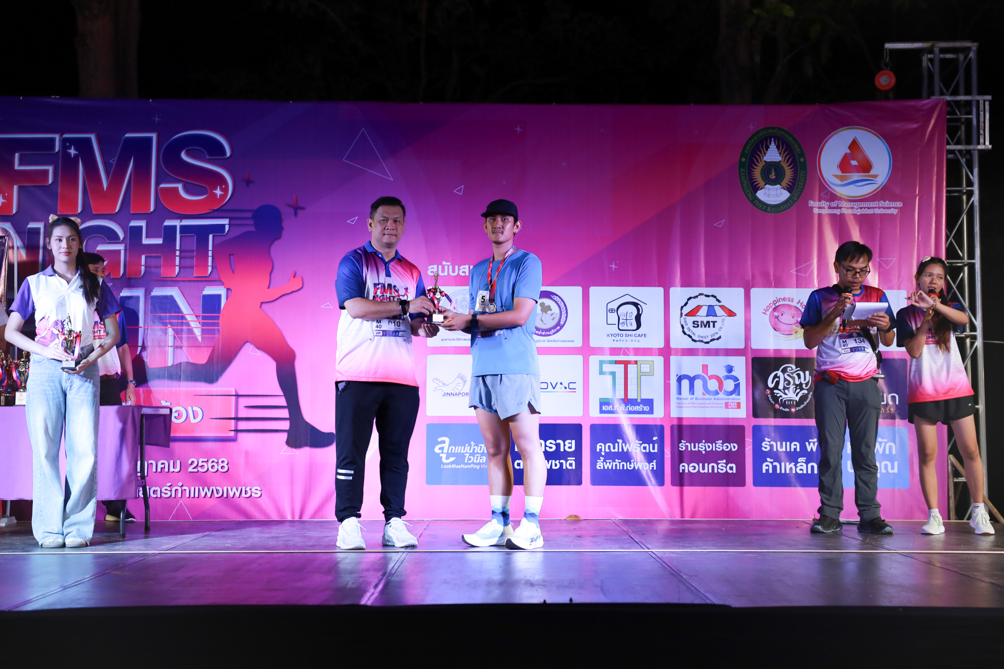 วันที่ 12 กรกฎาคม 2568 คณะวิทยาการจัดการ มหาวิทยาลัยราชภัฏกำแพงเพชร ได้จัดกิจกรรม “𝗙𝗠𝗦 𝗡𝗶𝗴𝗵𝘁 𝗥𝘂𝗻 ปันสุข เพื่อน้อง” โดยเป็นจัดการแข่งขันวิ่ง Fun Run ระยะทาง 5 กิโลเมตร ซึ่งกิจกรรมในครั้งนี้มีวัตถุประสงค์เพื่อให้นักศึกษา อาจารย์ บุคลากร ศิษย์เก่า และประชาชนทั่วไป ออกกำลังกายและมีสุขภาพแข็งแรงมากยิ่งขึ้น และเพื่อสนับสนุนและสร้างโอกาสทางการศึกษาหลังจากหักค่าใช้จ่ายโดยจัดสรรเป็นทุนการศึกษาของนักศึกษาคณะวิทยาการจัดการที่เรียนดี มีความประพฤติดีแต่ขาดทุนทรัพย์ ณ อุทยานประวัติศาสตร์กำแพงเพชร จังหวัดกำแพงเพชร