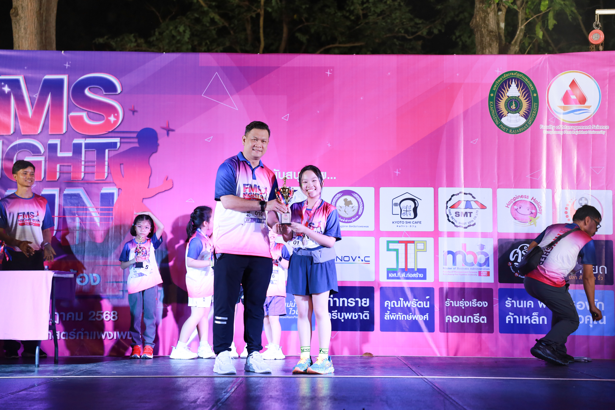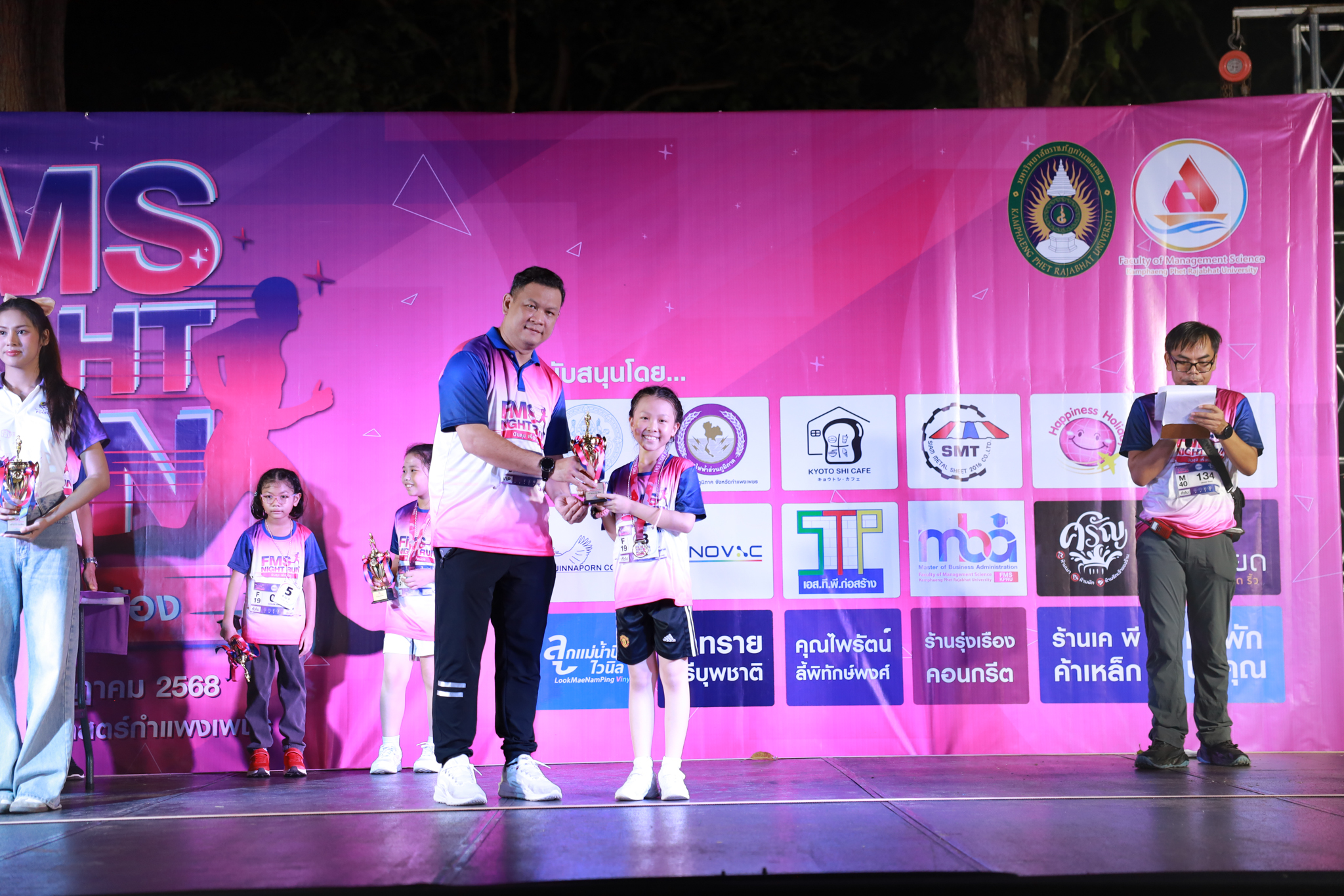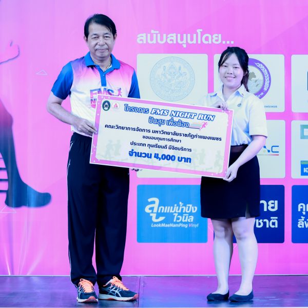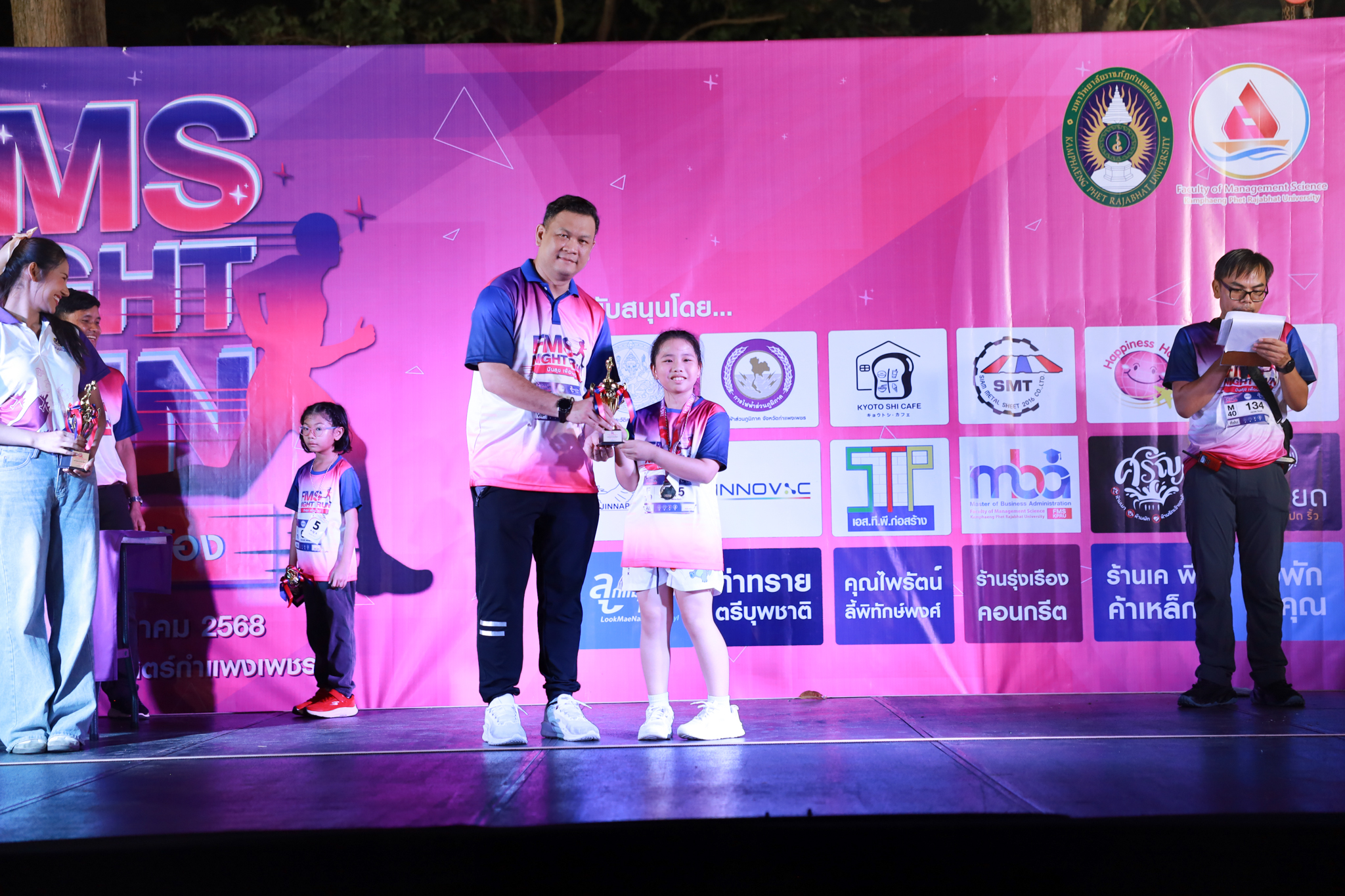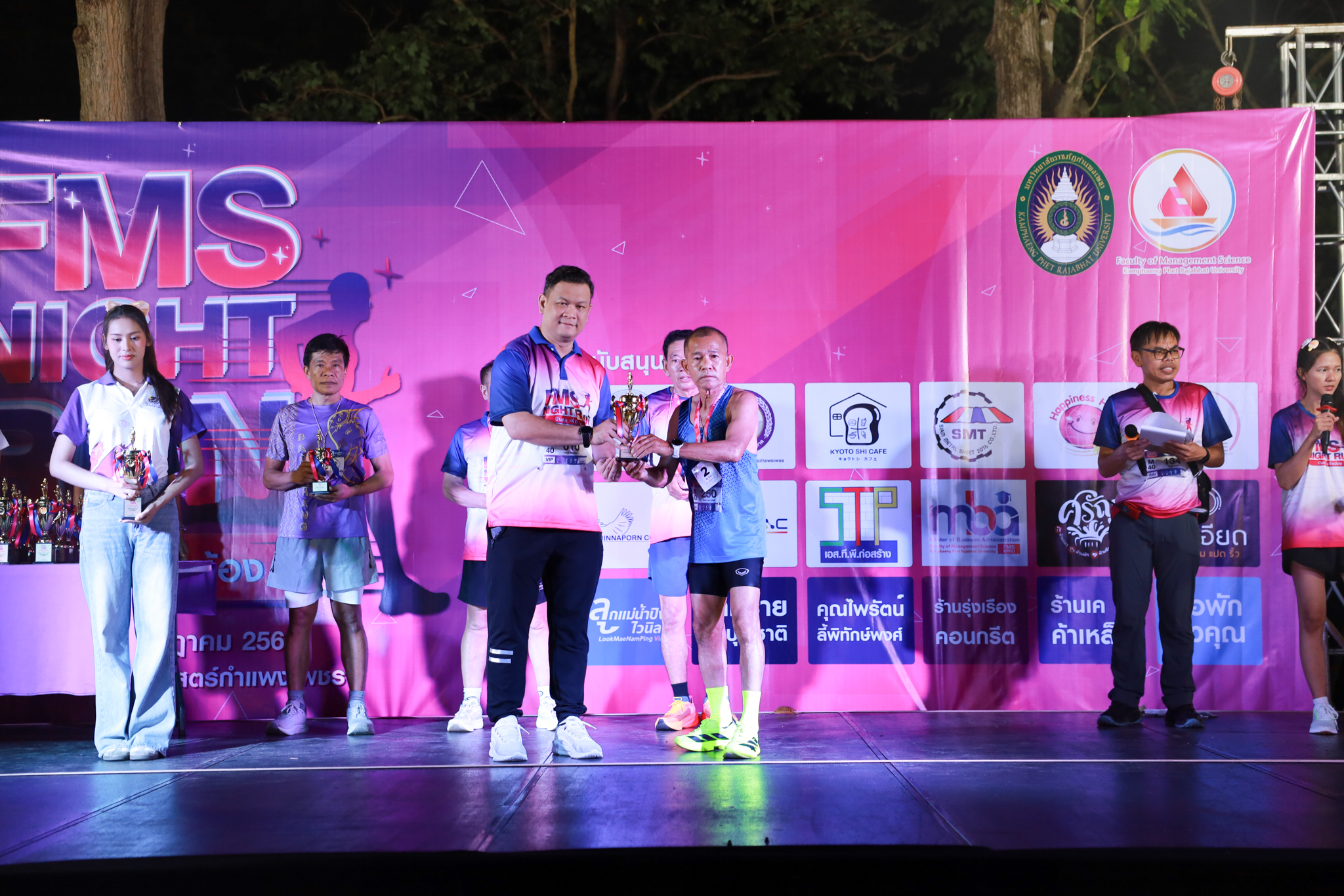 วันที่ 12 กรกฎาคม 2568 คณะวิทยาการจัดการ มหาวิทยาลัยราชภัฏกำแพงเพชร ได้จัดกิจกรรม “𝗙𝗠𝗦 𝗡𝗶𝗴𝗵𝘁 𝗥𝘂𝗻 ปันสุข เพื่อน้อง” โดยเป็นจัดการแข่งขันวิ่ง Fun Run ระยะทาง 5 กิโลเมตร ซึ่งกิจกรรมในครั้งนี้มีวัตถุประสงค์เพื่อให้นักศึกษา อาจารย์ บุคลากร ศิษย์เก่า และประชาชนทั่วไป ออกกำลังกายและมีสุขภาพแข็งแรงมากยิ่งขึ้น และเพื่อสนับสนุนและสร้างโอกาสทางการศึกษาหลังจากหักค่าใช้จ่ายโดยจัดสรรเป็นทุนการศึกษาของนักศึกษาคณะวิทยาการจัดการที่เรียนดี มีความประพฤติดีแต่ขาดทุนทรัพย์ ณ อุทยานประวัติศาสตร์กำแพงเพชร จังหวัดกำแพงเพชร