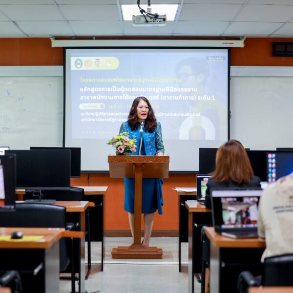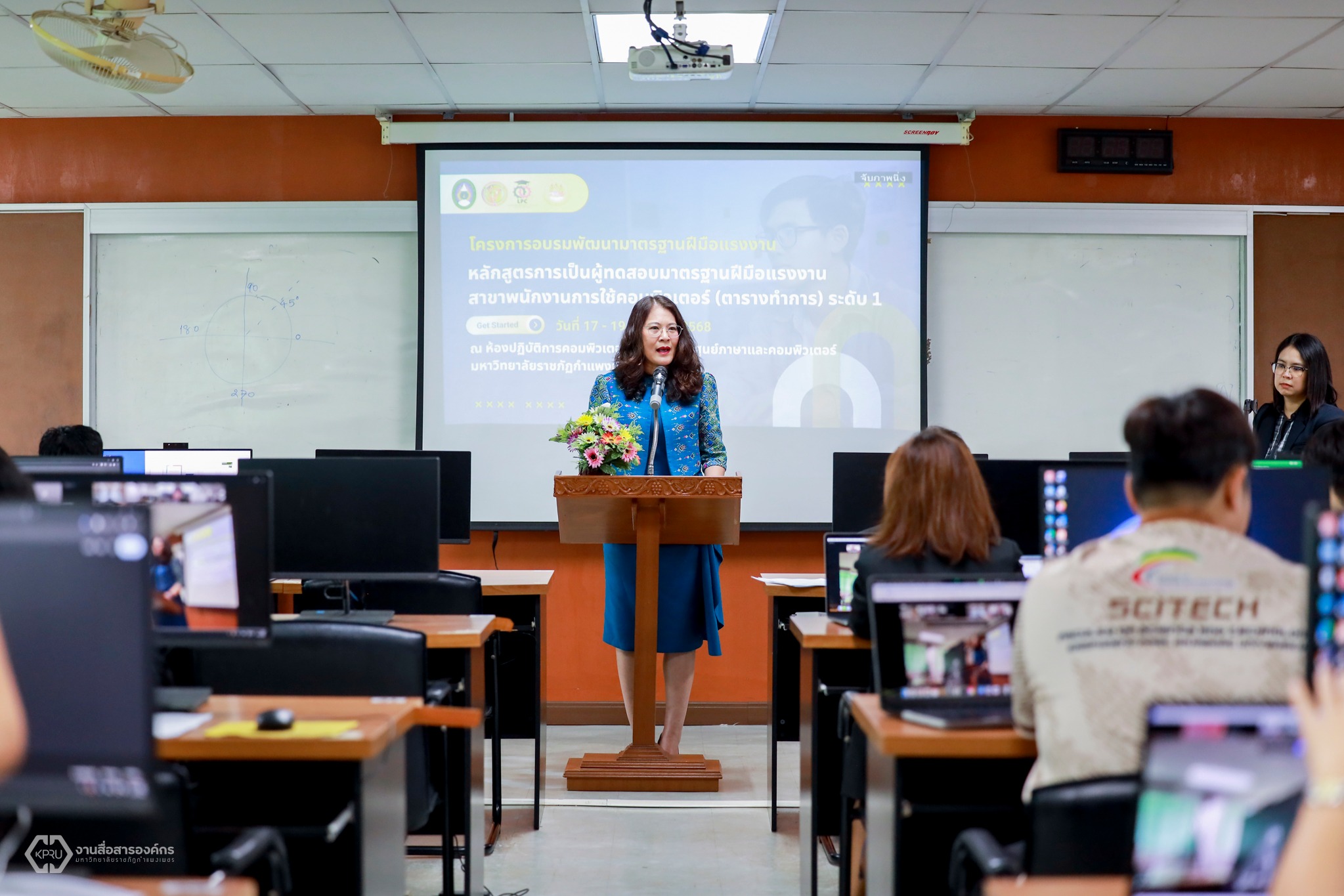 วันที่ 17 กันยายน 2568 ผู้ช่วยศาสตราจารย์ ดร.ปรียานุช พรหมภาสิต อธิการบดี เป็นประธานกล่าวเปิดโครงการอบรมผู้ทดสอบมาตรฐานฝีมือแรงงาน สาขาพนักงานการใช้คอมพิวเตอร์ (ตารางทำการ) ระดับที่ 1 ระหว่างวันที่ 17 – 19 กันยายน 2568 สำหรับการอบรมในครั้งนี้ มีจุดมุ่งหมายเพื่อให้ผู้เข้ารับการอบรมได้เรียนรู้เกี่ยวกับหลักการและแนวปฏิบัติในการจัดสอบ การบริหารจัดการในวันสอบ การดูแลและตรวจสอบความถูกต้องของเอกสาร รวมถึงการป้องกันและแก้ไขปัญหาในระหว่างการสอบ ตลอดจนการฝึกปฏิบัติจริง ณ ห้องปฏิบัติการคอมพิวเตอร์ ชั้น 8 อาคารศูนย์ภาษาและคอมพิวเตอร์ มหาวิทยาลัยราชภัฏกำแพงเพชร
