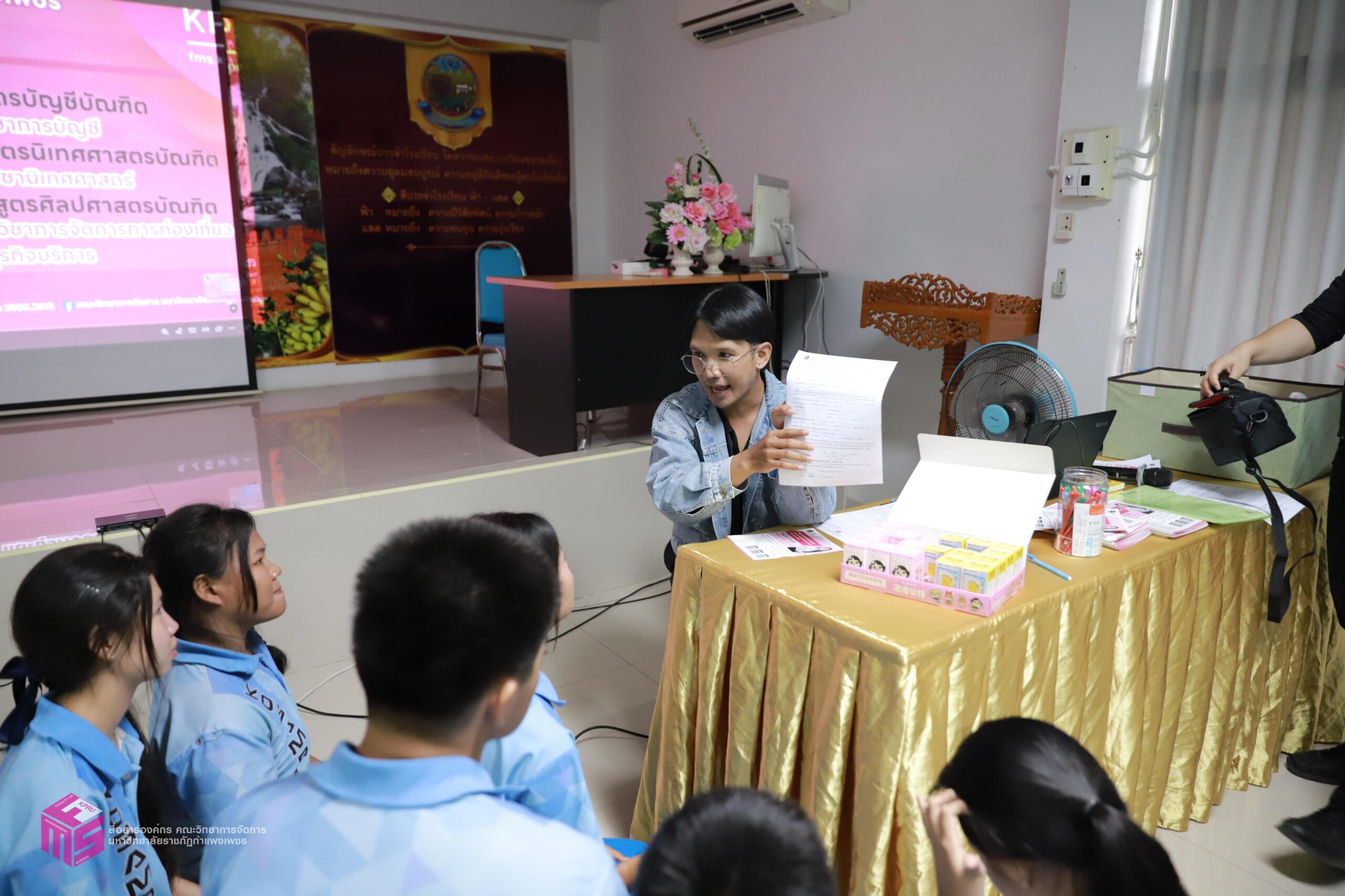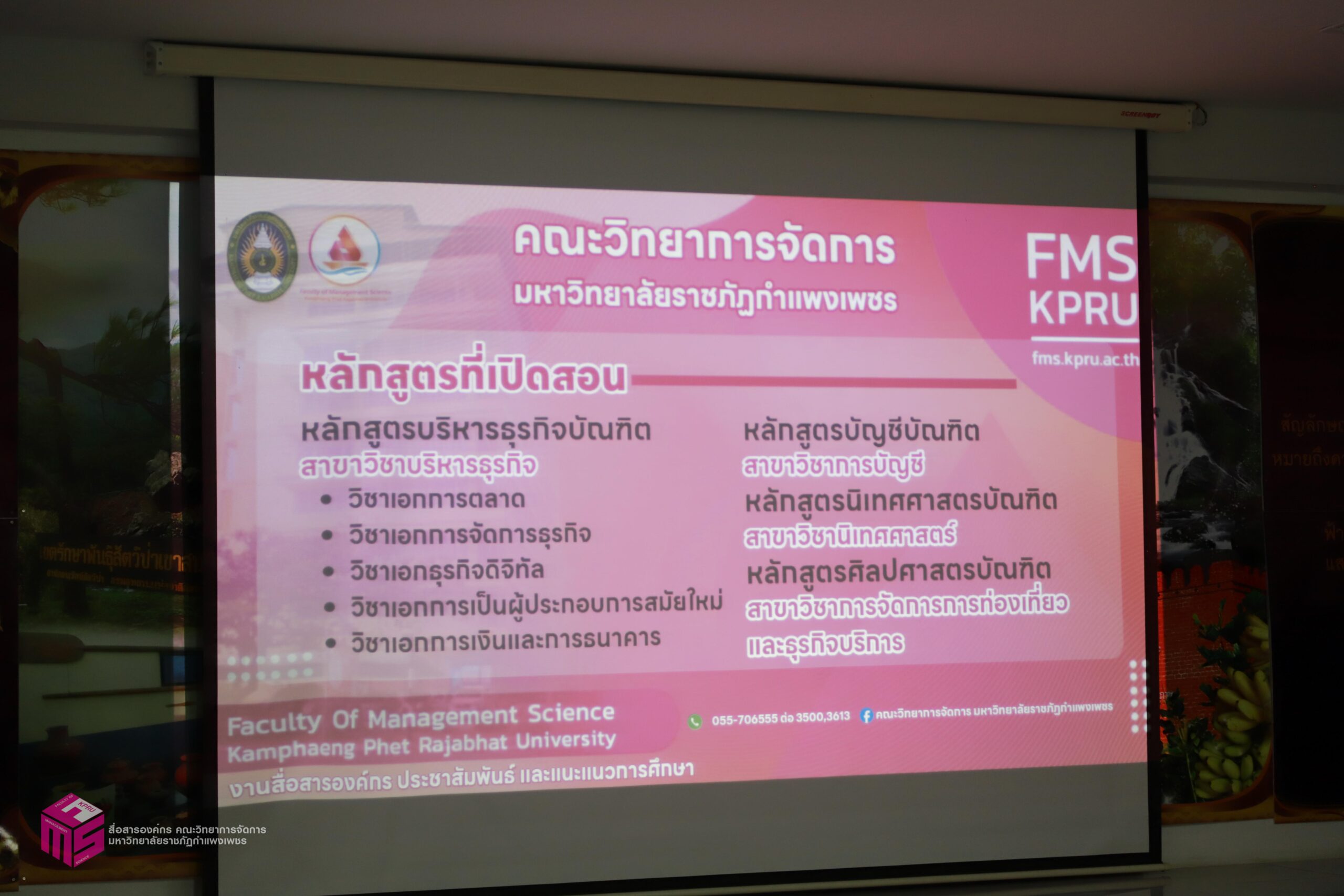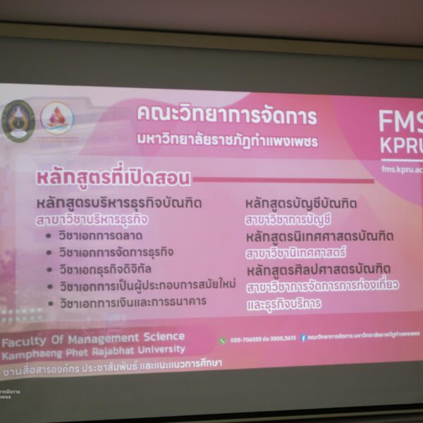 วันที่ 5 พฤศจิกายน 2568 เวลา 14.30 น.เป็นต้นไป คณะวิทยาการจัดการ มหาวิทยาลัยราชภัฏกำแพงเพชร ได้จัดกิจกรรมแนะแนวการศึกษาต่อ ให้กับนักเรียนชั้นมัธยมศึกษาปีที่ 6 เพื่อประชาสัมพันธ์หลักสูตรของคณะวิทยาการจัดการ และประชาสัมพันธ์การรับสมัครเรียน ประจำปีการศึกษา 2569 ณ โรงเรียนโกสัมพีวิทยา ตำบลโกสัมพี อำเภอโกสัมพีนคร จังหวัดกำแพงเพชร