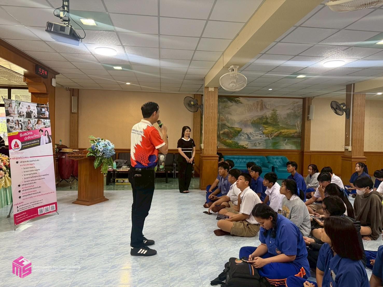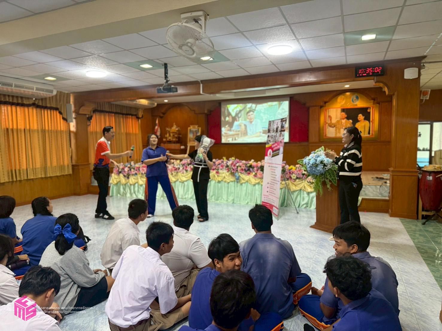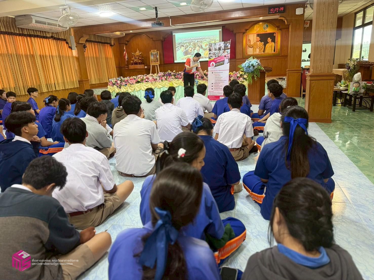 วันที่ 6 พฤศจิกายน 2568 เวลา 12.50 น.เป็นต้นไป คณะวิทยาการจัดการ มหาวิทยาลัยราชภัฏกำแพงเพชร ได้จัดกิจกรรมแนะแนวการศึกษาต่อ ให้กับนักเรียนมัธยมศึกษาปีที่ 6 เพื่อประชาสัมพันธ์หลักสูตรของคณะวิทยาการจัดการ และประชาสัมพันธ์การรับสมัครเรียน ประจำปีการศึกษา 2569 ณ โรงเรียนไทรงามพิทยาคม ตำบลไทรงาม อำเภอไทรงาม จังหวัดกำแพงเพชร