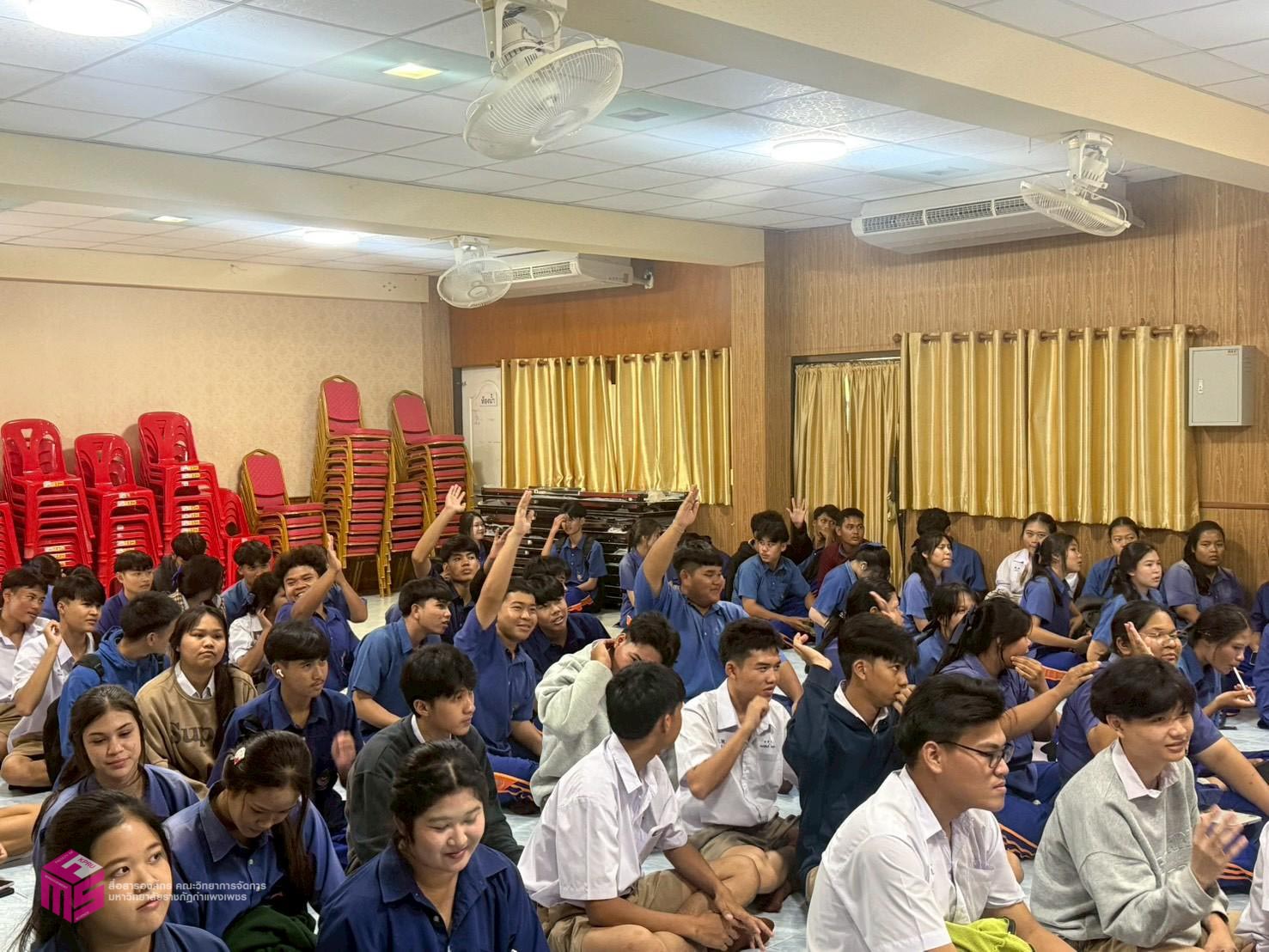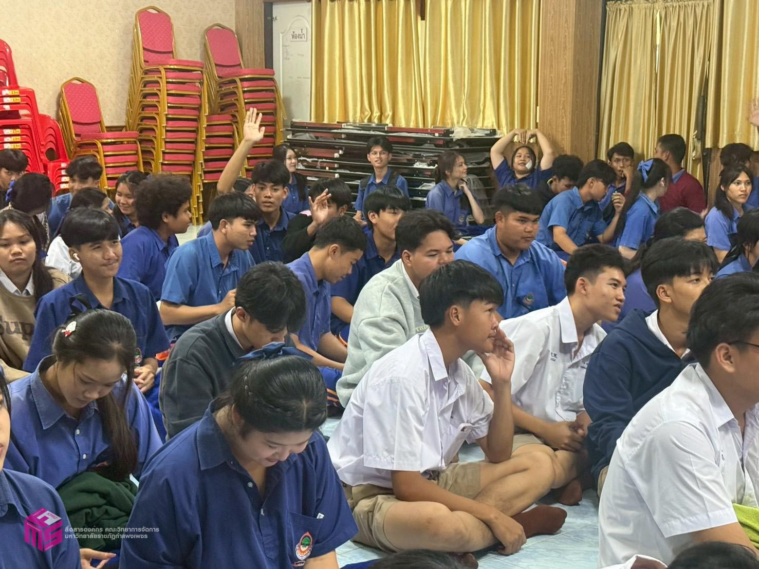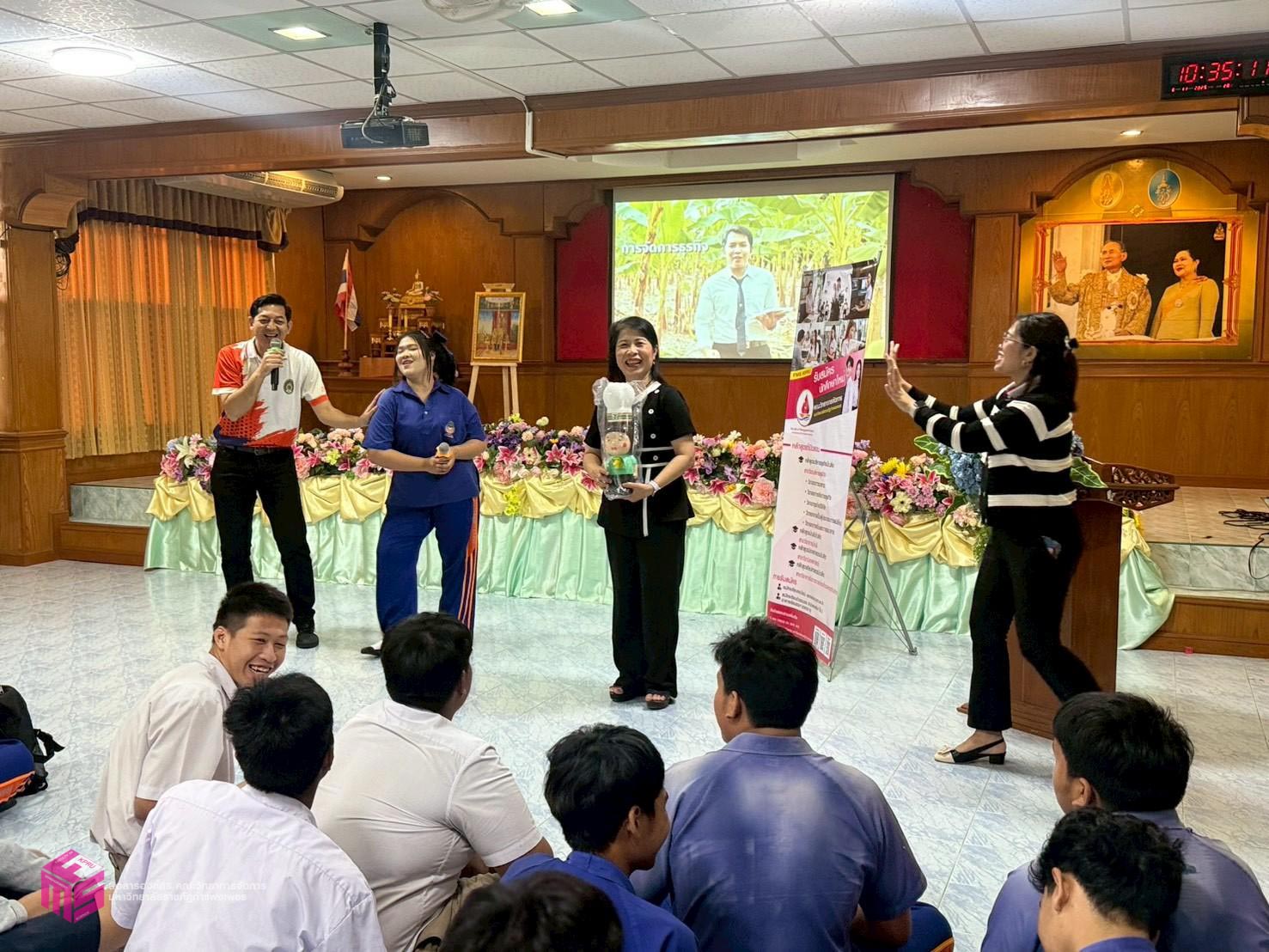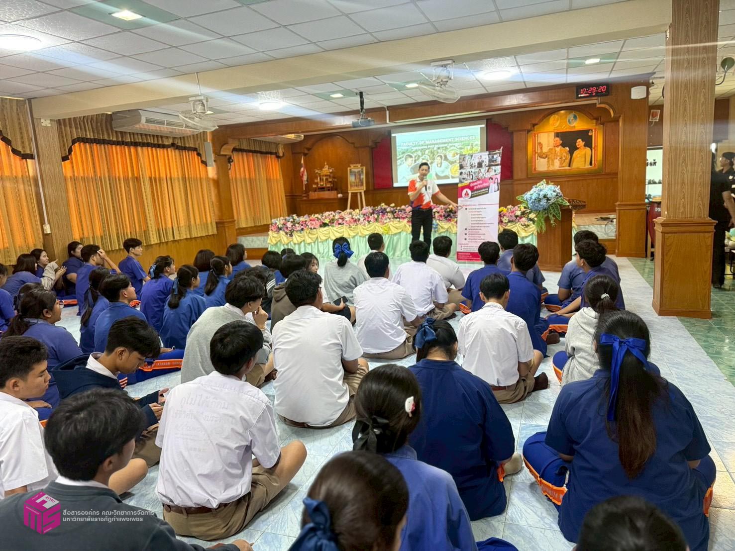 วันที่ 6 พฤศจิกายน 2568 เวลา 12.50 น.เป็นต้นไป คณะวิทยาการจัดการ มหาวิทยาลัยราชภัฏกำแพงเพชร ได้จัดกิจกรรมแนะแนวการศึกษาต่อ ให้กับนักเรียนมัธยมศึกษาปีที่ 6 เพื่อประชาสัมพันธ์หลักสูตรของคณะวิทยาการจัดการ และประชาสัมพันธ์การรับสมัครเรียน ประจำปีการศึกษา 2569 ณ โรงเรียนไทรงามพิทยาคม ตำบลไทรงาม อำเภอไทรงาม จังหวัดกำแพงเพชร