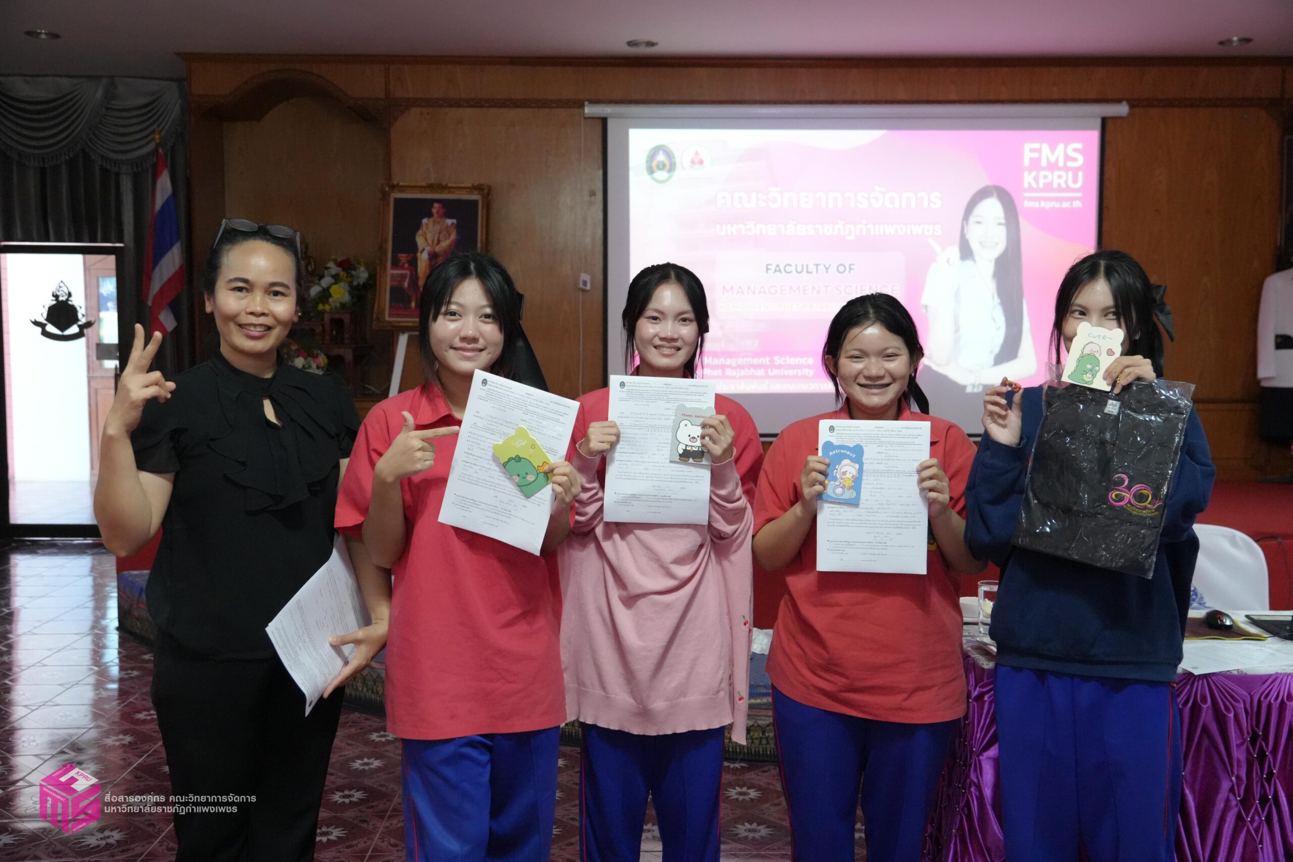 วันที่ 12 พฤศจิกายน 2568 เวลา 14.00 น.เป็นต้นไป คณะวิทยาการจัดการ มหาวิทยาลัยราชภัฏกำแพงเพชร ได้จัดกิจกรรมแนะแนวการศึกษาต่อ ให้กับนักเรียนมัธยมศึกษาปีที่ 6 เพื่อประชาสัมพันธ์หลักสูตรของคณะวิทยาการจัดการ และประชาสัมพันธ์การรับสมัครเรียน ประจำปีการศึกษา 2569 ณ โรงเรียนเฉลิมพระเกียรติสมเด็จพระศรีนครินทร์ กำแพงเพชร ตำบล เทพนคร อำเภอเมือง จังหวัดกำแพงเพชร
