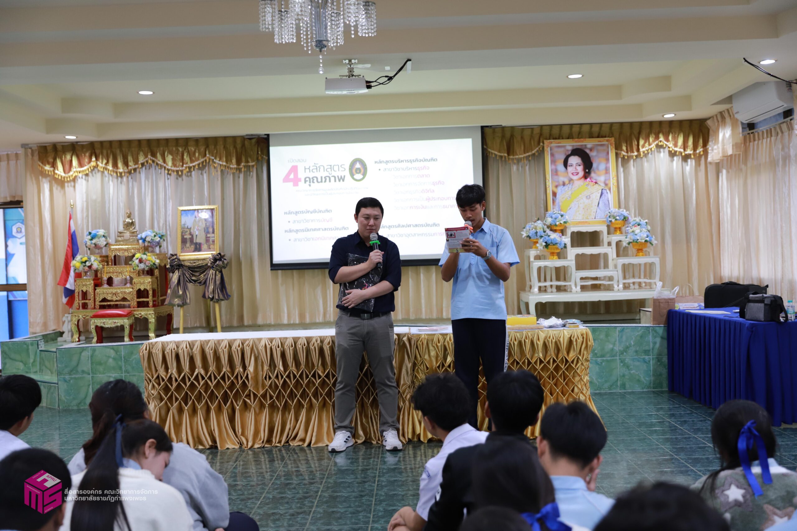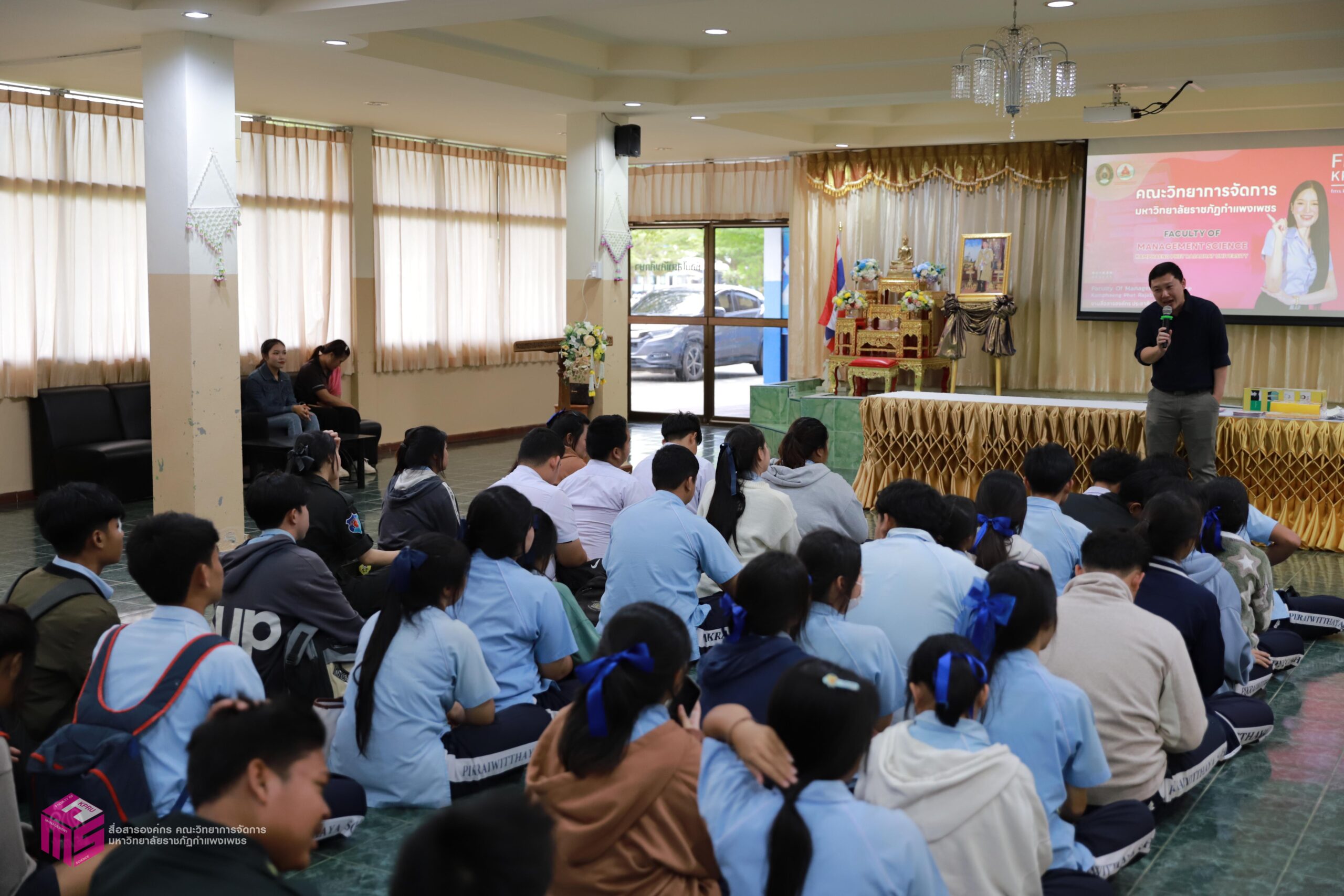 วันที่ 19 พฤศจิกายน 2568 เวลา 13.50 น.เป็นต้นไป คณะวิทยาการจัดการ มหาวิทยาลัยราชภัฏกำแพงเพชร ได้จัดกิจกรรมแนะแนวการศึกษาต่อ ให้กับนักเรียนมัธยมศึกษาปีที่ 6 เพื่อประชาสัมพันธ์หลักสูตรของคณะวิทยาการจัดการ และประชาสัมพันธ์การรับสมัครเรียน ประจำปีการศึกษา 2569 ณ โรงเรียนพิไกรวิทยา ตำบลคลองพิไกร อำเภอพรานกะต่าย จังหวัดกำแพงเพชร