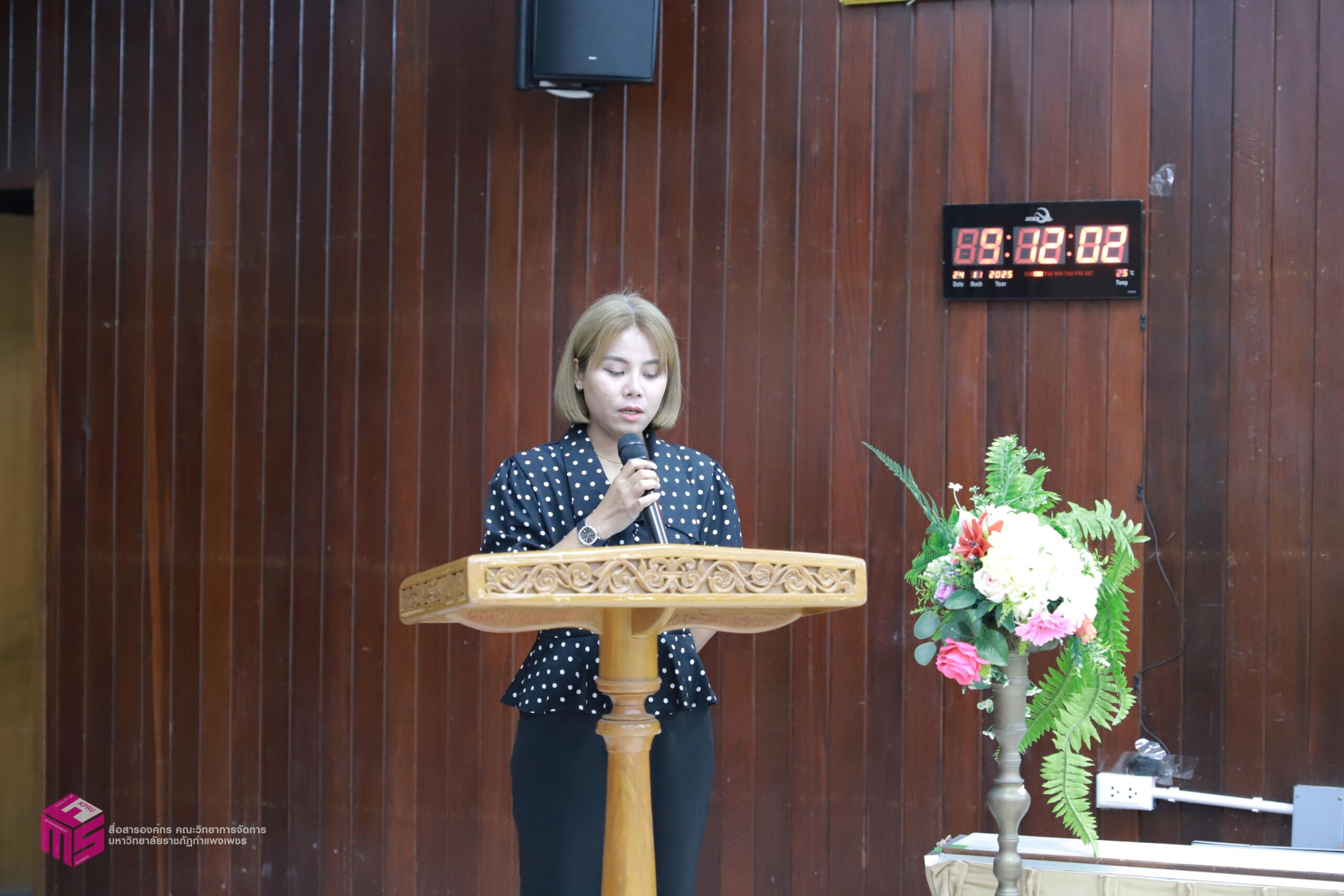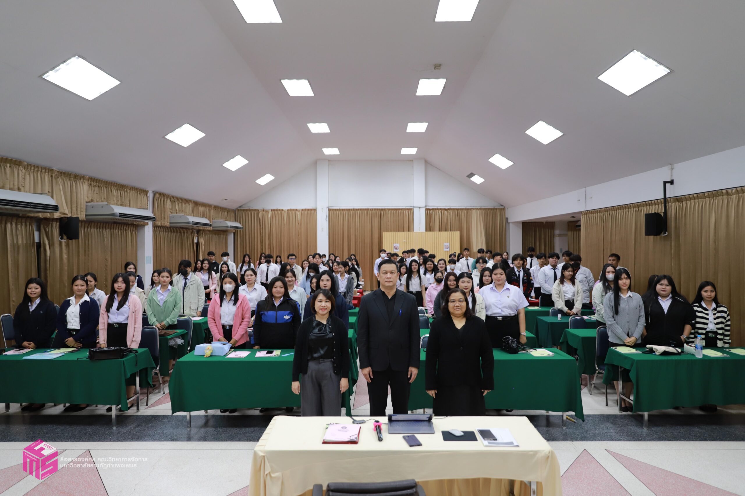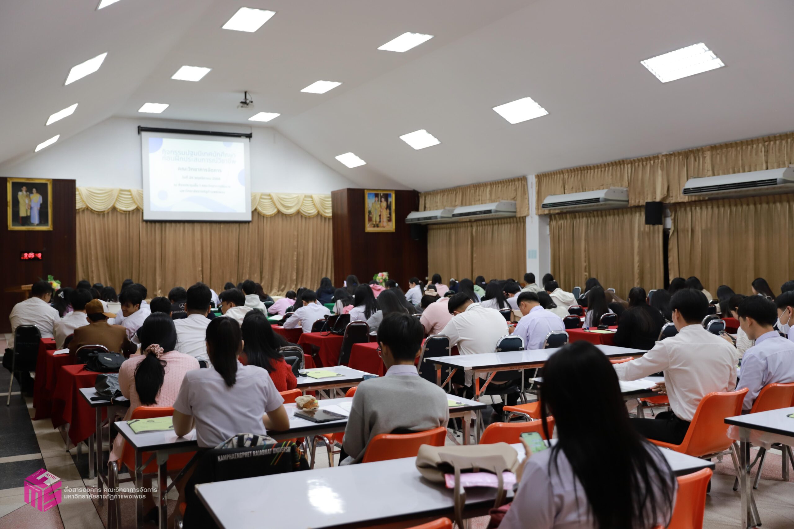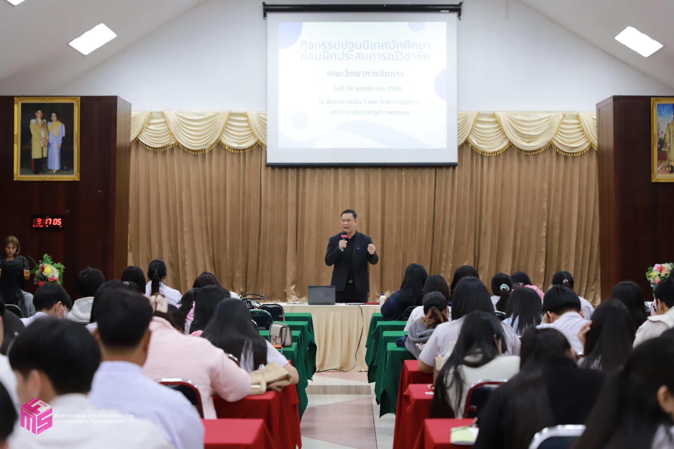 วันที่ 24 พฤศจิกายน 2568 ผู้ช่วยศาสตราจารย์การันต์ เจริญสุวรรณ คณบดีคณะวิทยาการจัดการ เป็นประธานในพิธีเปิดกิจกรรมปฐมนิเทศนักศึกษาก่อนฝุึกประสบการณ์วิชาชีพ เพื่อเตรียมความพร้อมก่อนการออกฝึกประสบการณ์วิชาชีพและการประกอบอาชีพเมื่อสำเร็จการศึกษา โดยมีอาจารย์ชลธิชา แสงงาม รองคณบดีฝ่ายกิจการนักศึกษาและศิลปวัฒนธรรม ชี้แจงเกี่ยวกับเอกสารก่อนออกฝึกงาน สร้างความเข้าใจในขั้นตอนการเขียนเอกสารฝึกงาน ณ ห้องประชุม ชั้น 1 คณะวิทยาการจัดการ มหาวิทยาลัยราชภัฏกำแพงเพชร