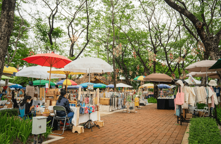 เป็นตลาดชุมชนเชิงสร้างสรรค์ที่รวบรวมสินค้าเกษตรปลอดภัย งานหัตถกรรม อาหารพื้นเมือง และสินค้าไลฟ์สไตล์จากผู้ประกอบการท้องถิ่นไว้ในที่เดียว มุ่งเน้นแนวคิดเศรษฐกิจชุมชน สิ่งแวดล้อม และความยั่งยืน นักศึกษาจะได้เรียนรู้เรื่องการจัดการตลาดแบบยั่งยืน การออกแบบพื้นที่ขายให้เหมาะสม การพัฒนาสินค้าชุมชน การสร้างความเชื่อมั่นให้กับผู้บริโภค รวมถึงกลยุทธ์ในการนำเสนอสินค้าเพื่อเพิ่มมูลค่า ตลาดแห่งนี้ถือเป็นตัวอย่างของการพัฒนาเศรษฐกิจฐานรากที่ประสบความสำเร็จ และเป็นพื้นที่เรียนรู้จริงสำหรับผู้ที่ต้องการเริ่มต้นธุรกิจขนาดเล็ก