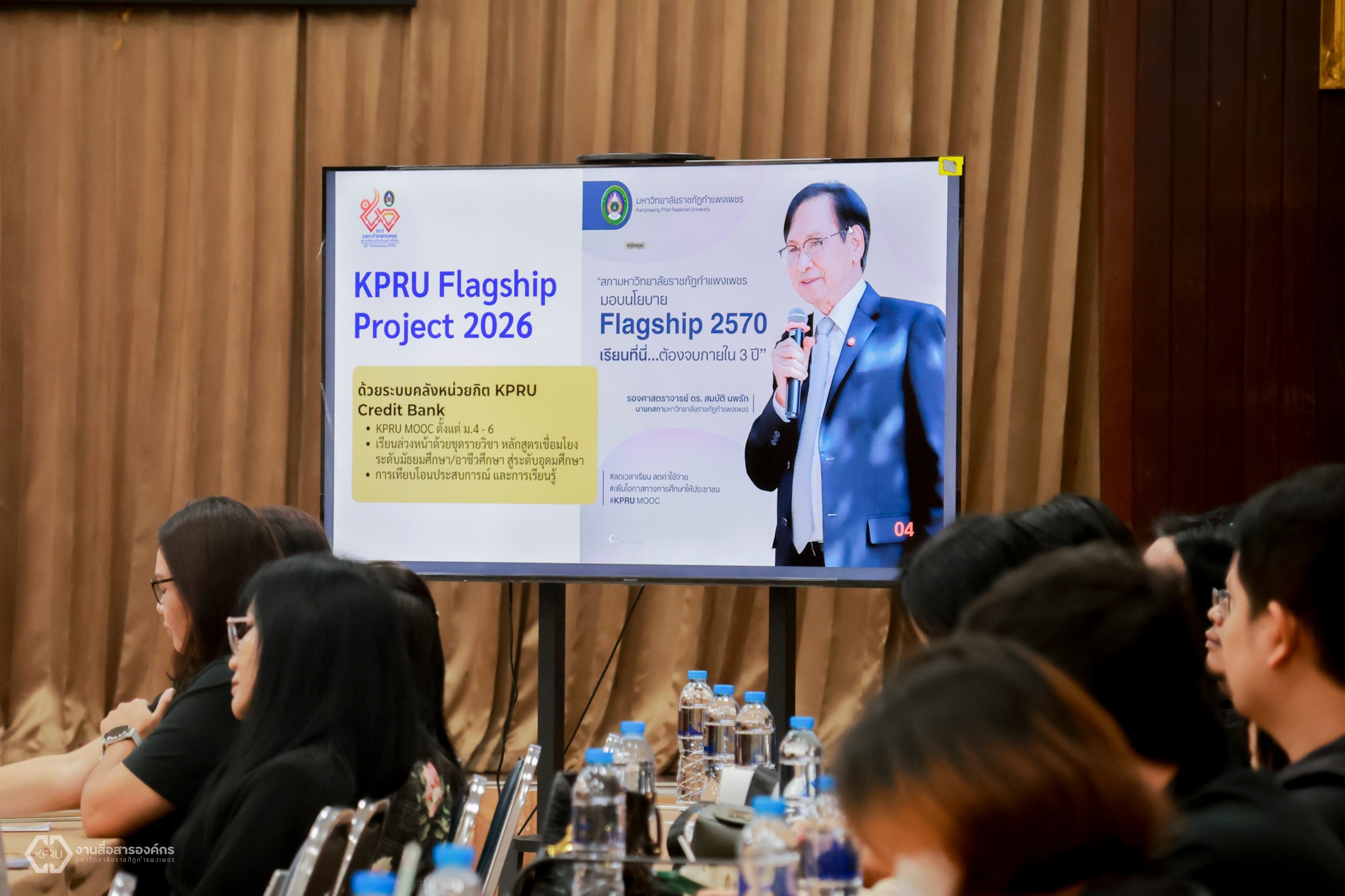 วันที่ 9 ธันวาคม 2568 เวลา 11.00 น. ที่ห้องประชุมคณะวิทยาการจัดการ ชั้น 1 มหาวิทยาลัยราชภัฏกำแพงเพชร ผู้ช่วยศาสตราจารย์ ดร.ปรียานุช พรหมภาสิต อธิการบดี นำรองอธิการบดีและผู้ช่วยอธิการบดี พบบุคลากรคณะครุศาสตร์ เพื่อร่วมขับเคลื่อนองค์กร (Organizational-driven meeting) โดยมีวัตถุประสงค์เพื่อสร้างความเข้าใจร่วมกันระหว่างผุ้บริหารและบุคลากร เพื่อถ่ายทอด Flagship Project 2026 ในการสร้างความร่วมมือเป็นพลังขับเคลื่อนการพัฒนามหาวิทยาลัย และเพื่อรับฟังข้อเสนอแนะ แลกเปลี่ยนแนวคิดในการพัฒนามหาวิทยาลัย