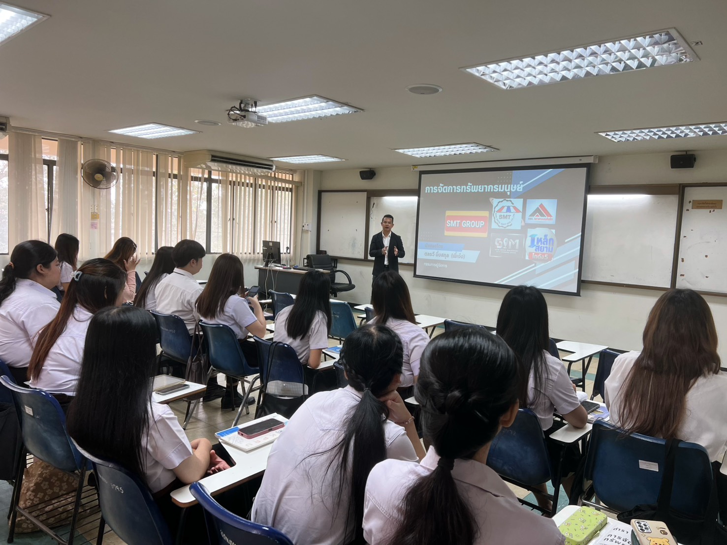 วันที่ 11 ธันวาคม 2568 วิชาเอกการจัดการธุรกิจ คณะวิทยาการจัดการ มหาวิทยาลัยราชภัฏกำแพงเพชร ได้จัดการบรรยายพิเศษ ในหัวข้อ “การบริหารธุรกิจและการจัดการทรัพยากรมนุษย์ของบริษัท บจก.สยามเมททอลชีท 2016” วิทยากรโดย นายดลรวี มิ่งสกุล เจ้าของ บจก.สยามเมททอลชีท 2016 กิจกรรมนี้จัดขึ้นเพื่อประกอบการเรียนการสอนในรายวิชา การจัดการทรัพยากรมนุษย์ ซึ่งได้รับความรู้และแนวคิดด้านการบริหารจัดการธุรกิจและทรัพยากรบุคคลที่เป็นประโยชน์อย่างยิ่ง ณ ห้อง 11404 คณะวิทยาการจัดการ มหาวิทยาลัยราชภัฏกำแพงเพชร
