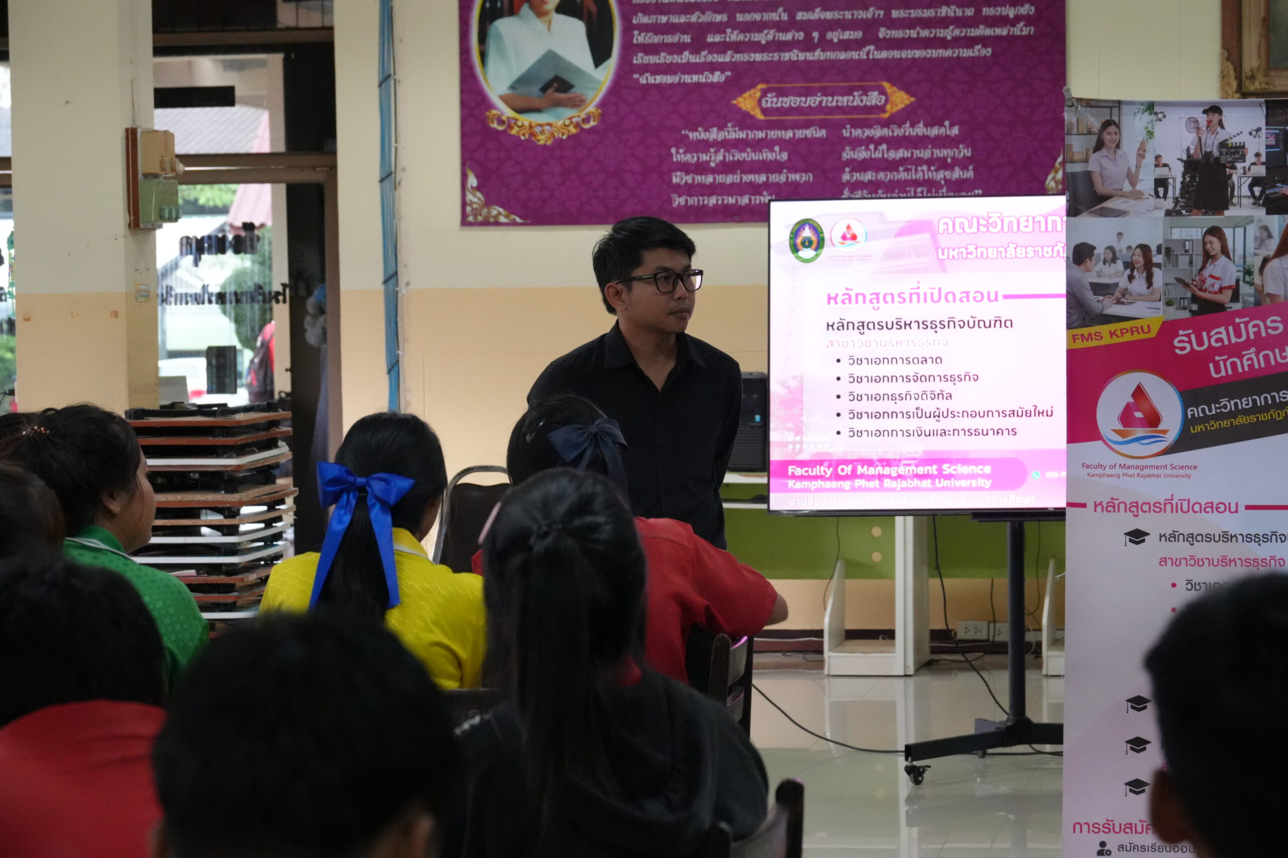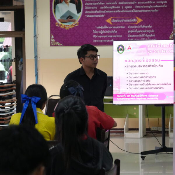 วันที่ 12 ธันวาคม 2568 เวลา 14.40 น.เป็นต้นไป คณะวิทยาการจัดการ มหาวิทยาลัยราชภัฏกำแพงเพชร ได้จัดกิจกรรมแนะแนวการศึกษาต่อ ให้กับนักเรียนมัธยมศึกษาปีที่ 6 เพื่อประชาสัมพันธ์หลักสูตรของคณะวิทยาการจัดการ และประชาสัมพันธ์การรับสมัครเรียน ประจำปีการศึกษา 2569 ณ โรงเรียนนครไตรตรึงษ์ ตำบลไตรตรึงษ์ อำเภอเมือง จังหวัดกำแพงเพชร