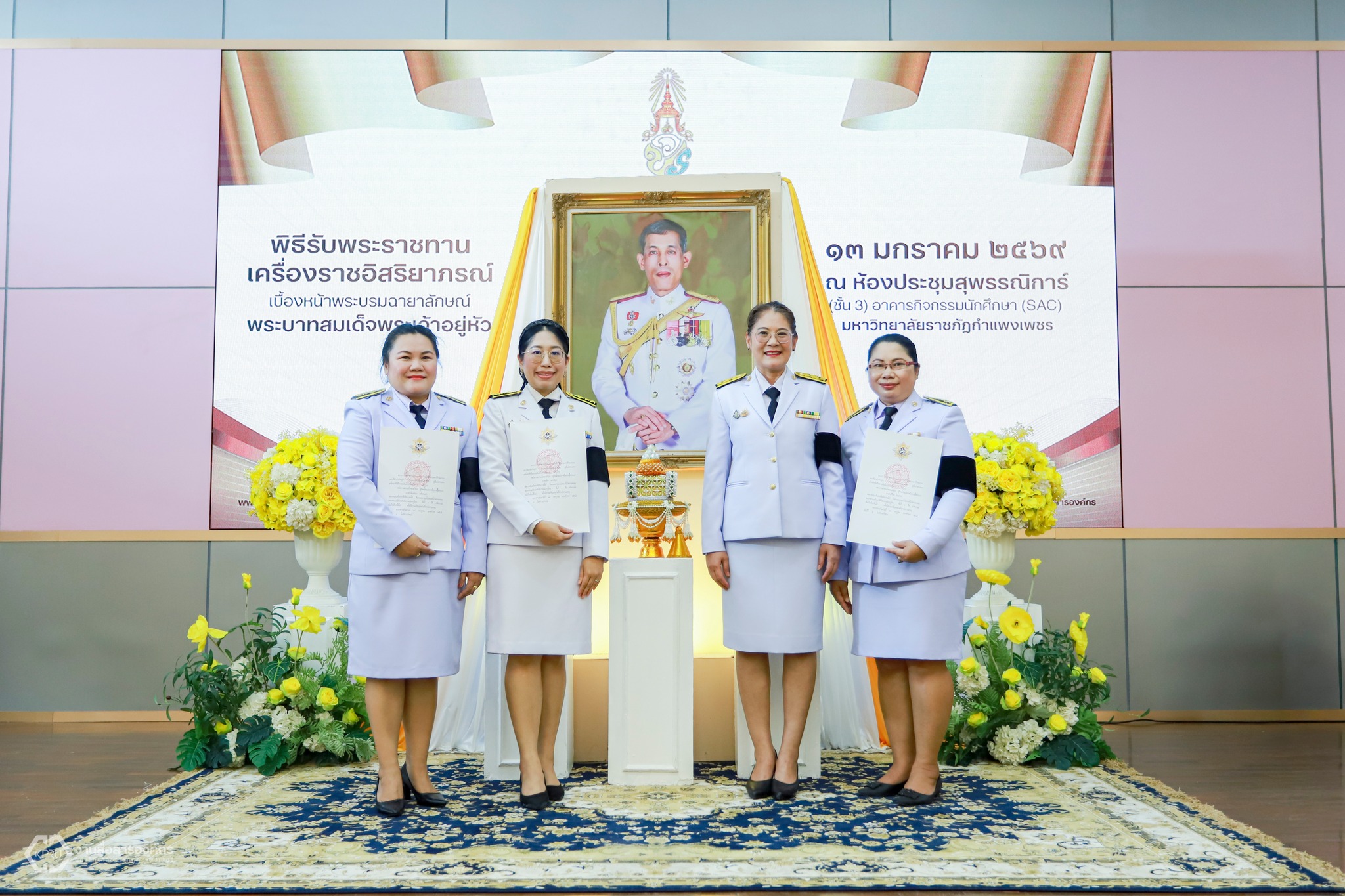 วันที่ 13 มกราคม 2569 ผู้ช่วยศาสตราจารย์ ดร.ปรียานุช พรหมภาสิต อธิการบดี เป็นประธานในพิธีรับพระราชทานเครื่องราชอิสริยาภรณ์ เบื้องหน้าพระบรมฉายาลักษณ์พระบาทสมเด็จพระเจ้าอยู่หัว ประจำปี 2565-2567 ณ ห้องประชุมสุพรรณิการ์ ชั้น 3 อาคารกิจกรรมนักศึกษา (SAC) มหาวิทยาลัยราชภัฏกำแพงเพชร