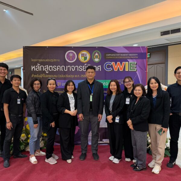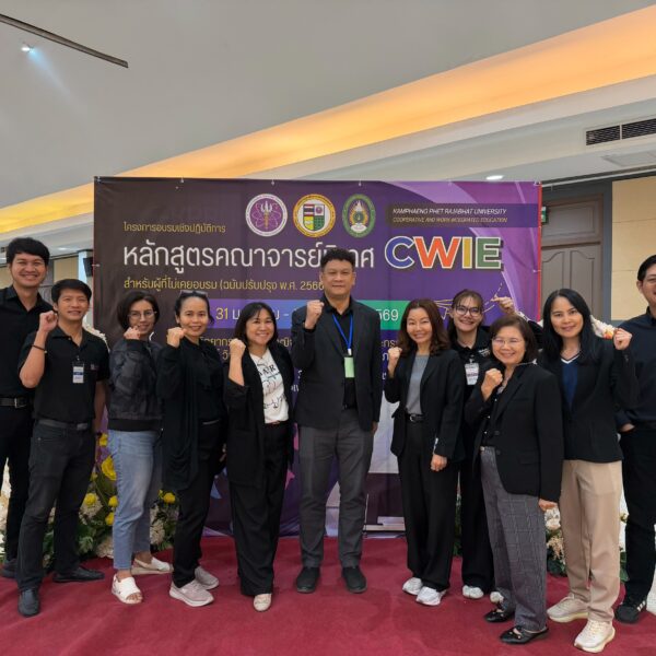วันที่ 31 มกราคม – 1 กุมภาพันธ์ 2569 มหาวิทยาลัยราชภัฏกำแพงเพชร โดยสำนักส่งเสริมวิชาการและงานทะเบียน จัดอบรมหลักสูตร “คณาจารย์นิเทศ CWIE สำหรับผู้ที่ไม่เคยอบรม (ฉบับปรับปรุง พ.ศ. 2566)” ซึ่งได้รับอนุมัติจากสำนักงานปลัดกระทรวงการอุดมศึกษา วิทยาศาสตร์ วิจัยและนวัตกรรมให้ใช้หลักสูตรดังกล่าวแล้ว มีคณาจารย์ของมหาวิทยาลัยเข้ารับการอบรมกว่า 130 คน ณ ห้องประชุมราชพฤกษ์ ชั้น 3 อาคารทีปังกรรัศมีโชติ มหาวิทยลัยราชภัฏกำแพงเพชร